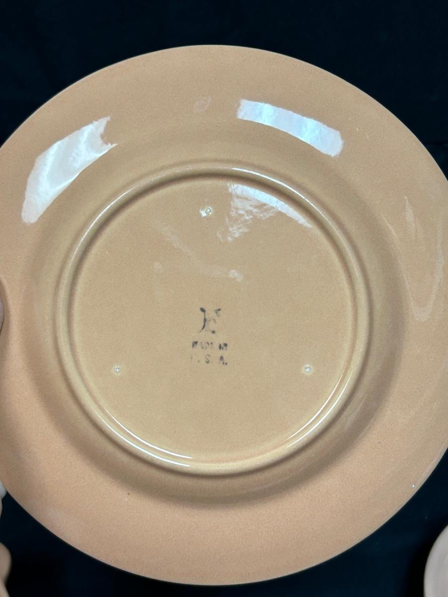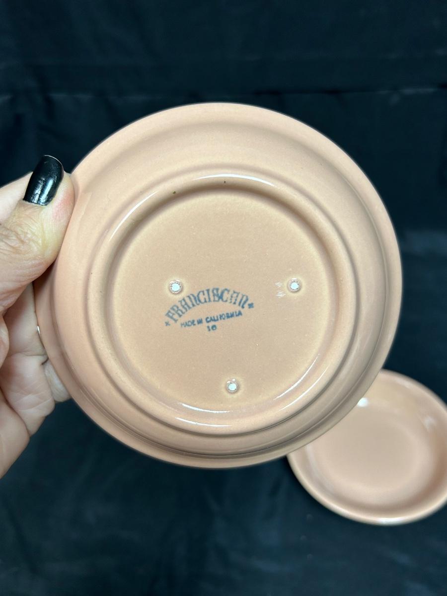 Vintage Peachy Pink California Pottery Fruit Bowls Handled Soup Bread Plate Franciscan Ware Gladding McBean