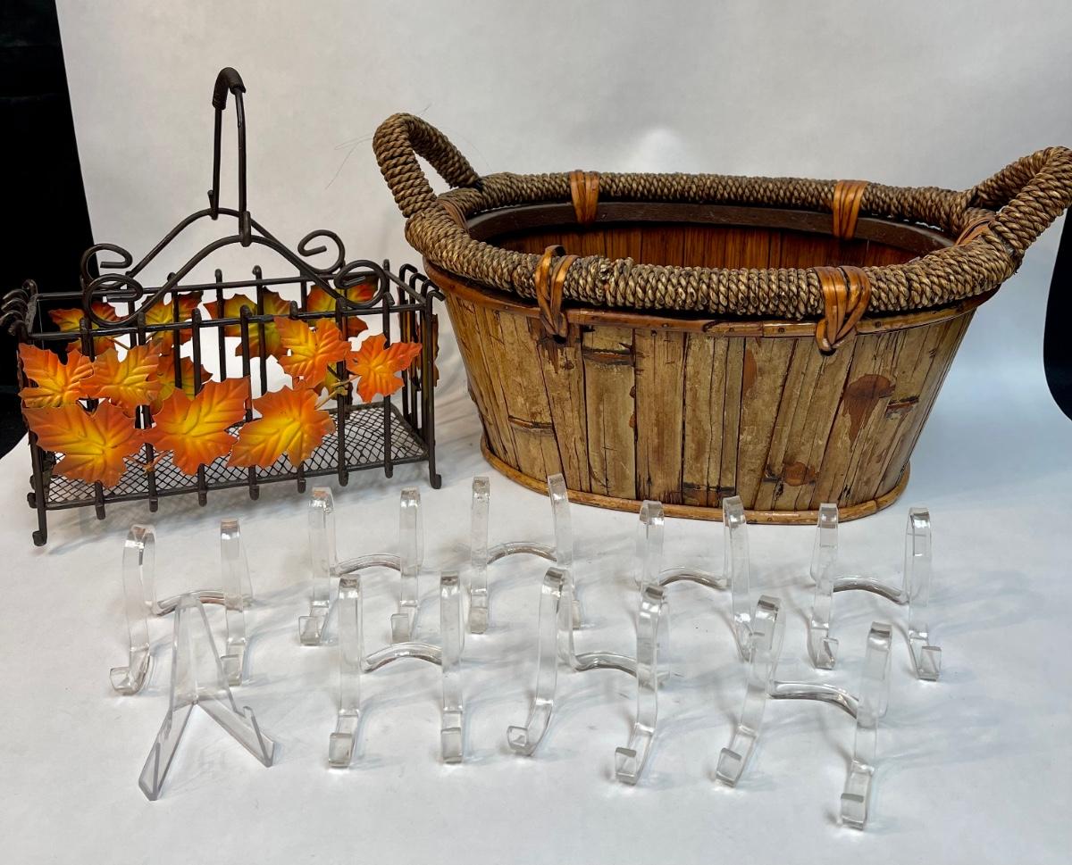 Fall Display Pieces Lot - 2 baskets and 10 small plexiglass stands