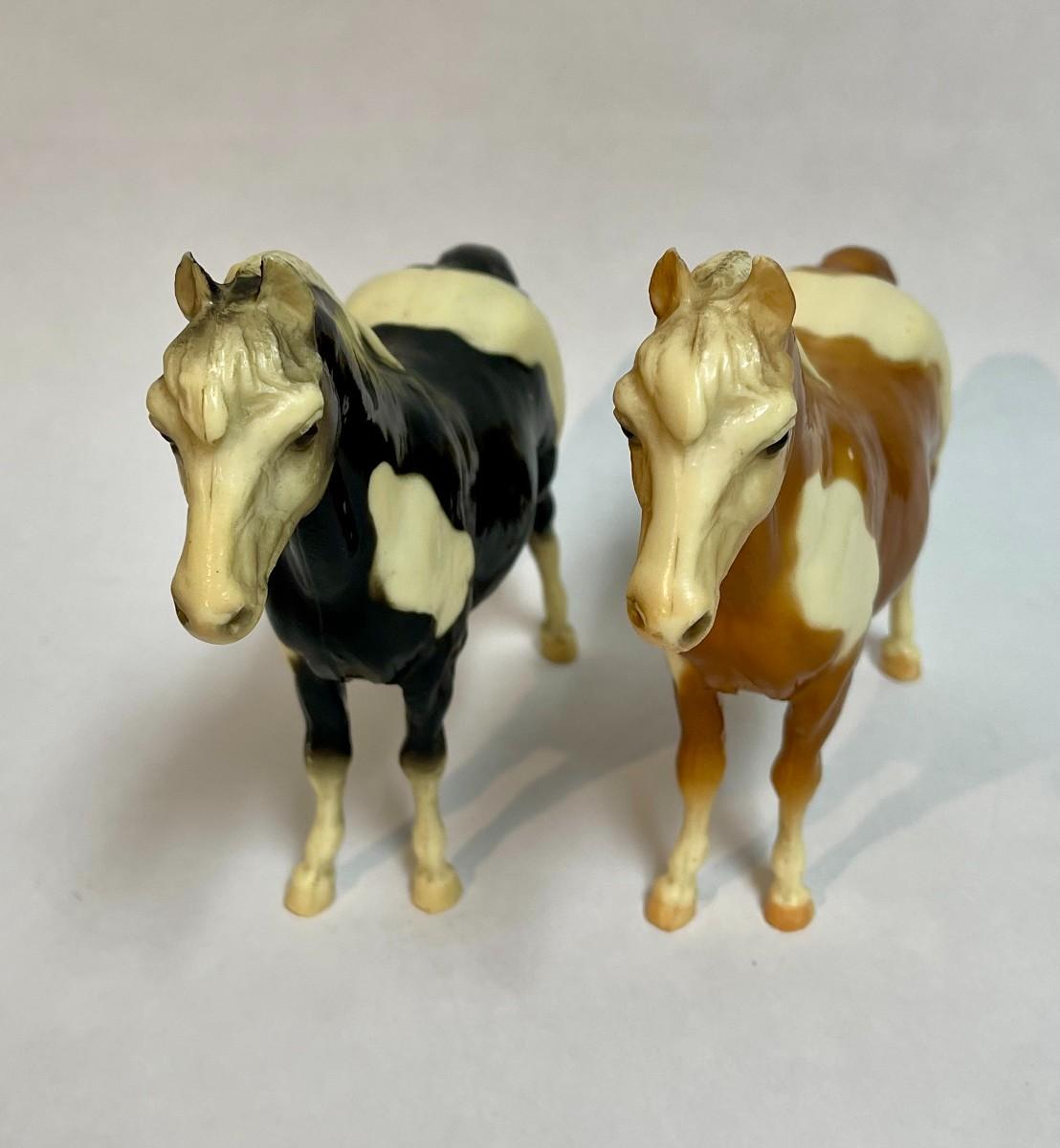 2 Vintage Breyer Moulding Co. Vintage Figurines Horses, glossy finish, Pinto horses