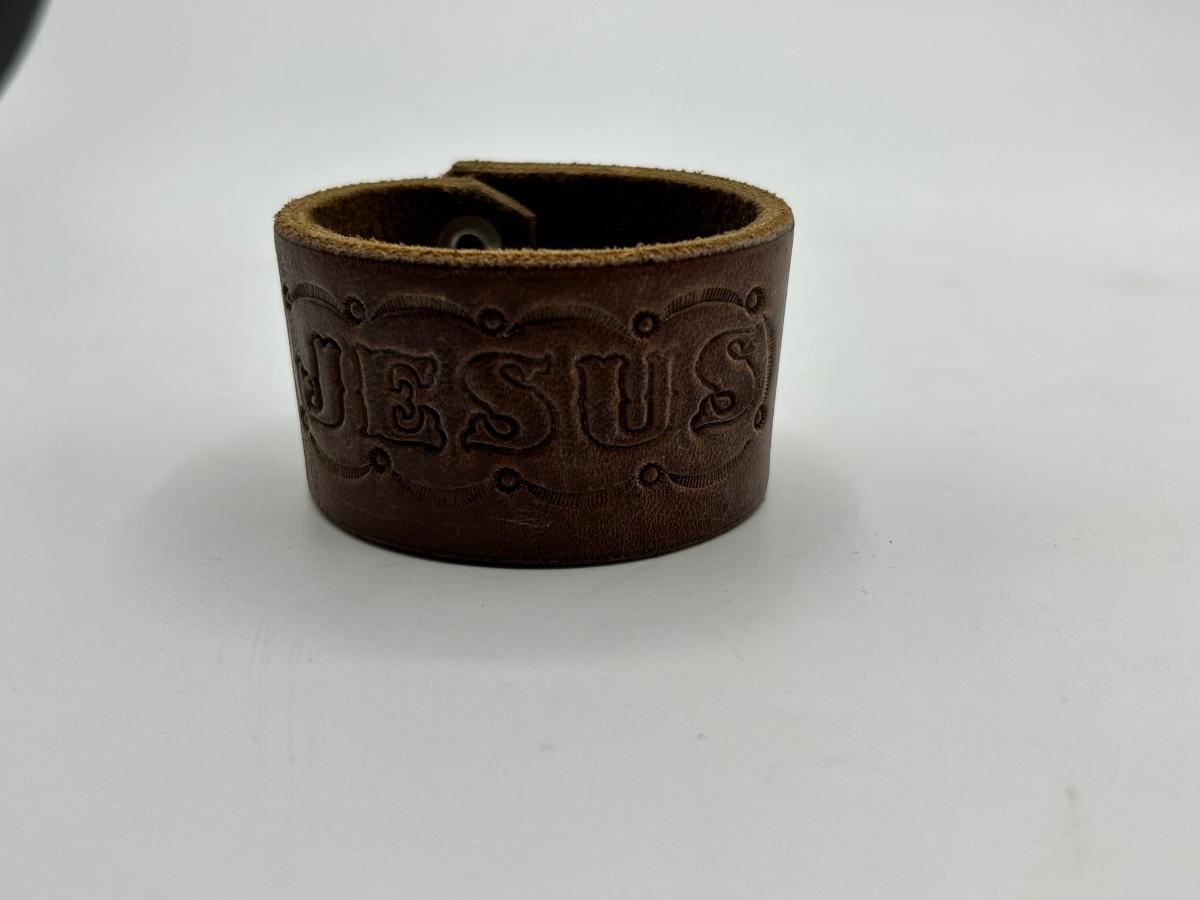 Vintage Retro Leather Snap Bracelet Stamped Lettering Jesus