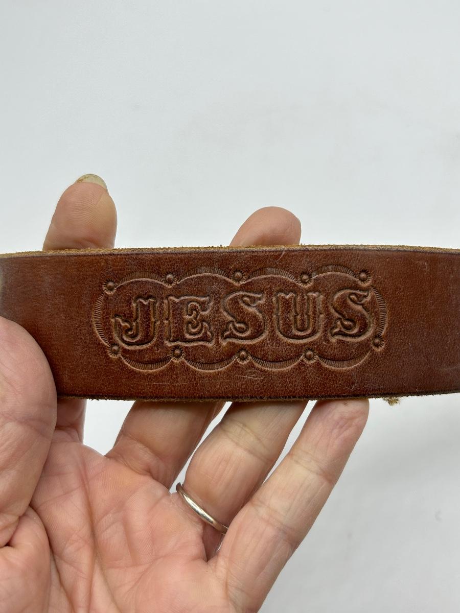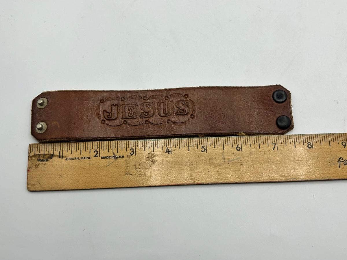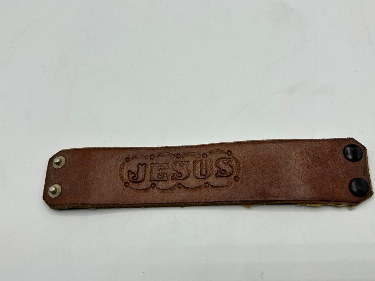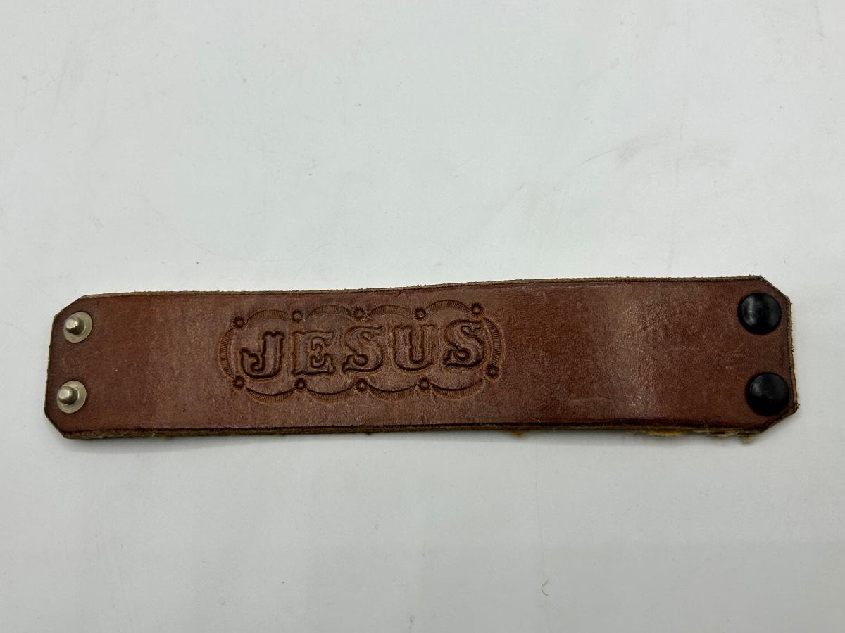 Vintage Retro Leather Snap Bracelet Stamped Lettering Jesus. In good vintage condition. Snaps are a little hard to close.
