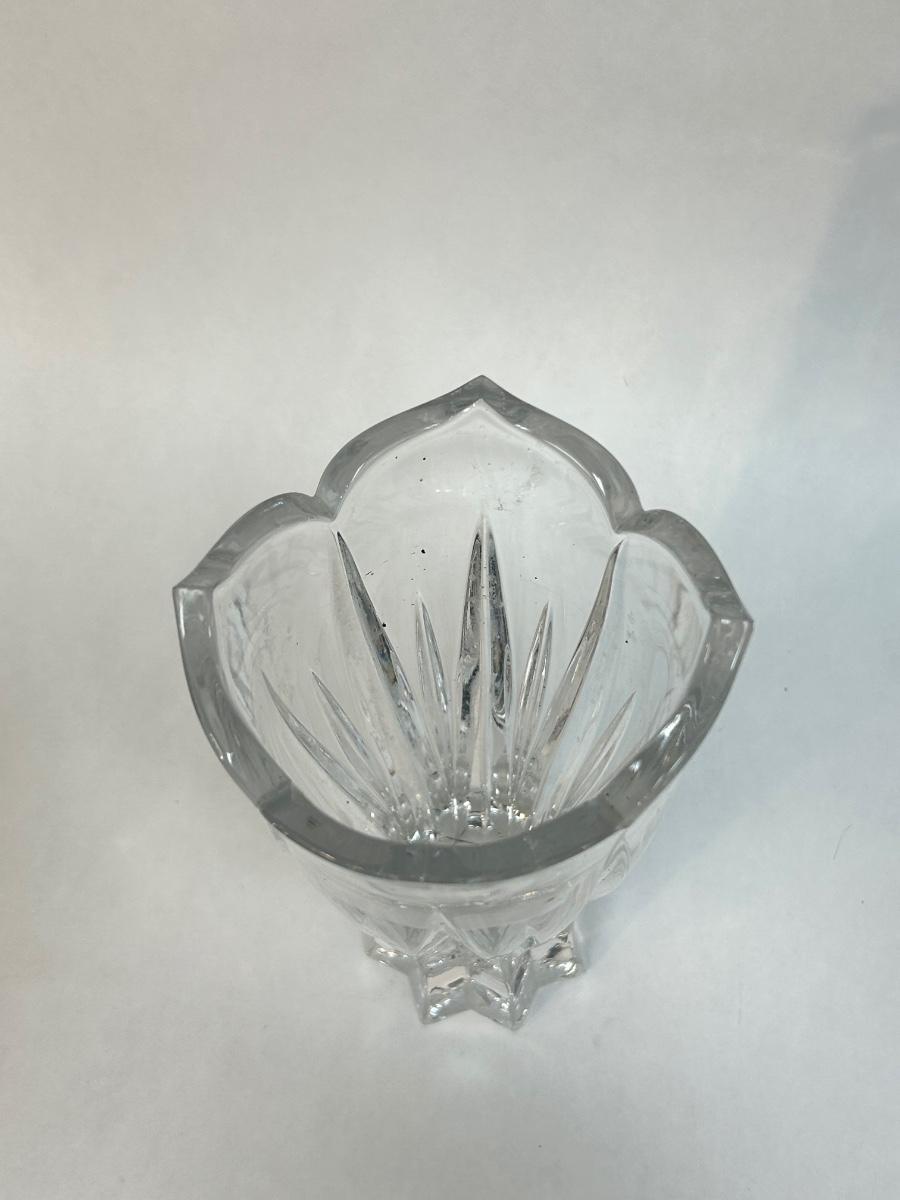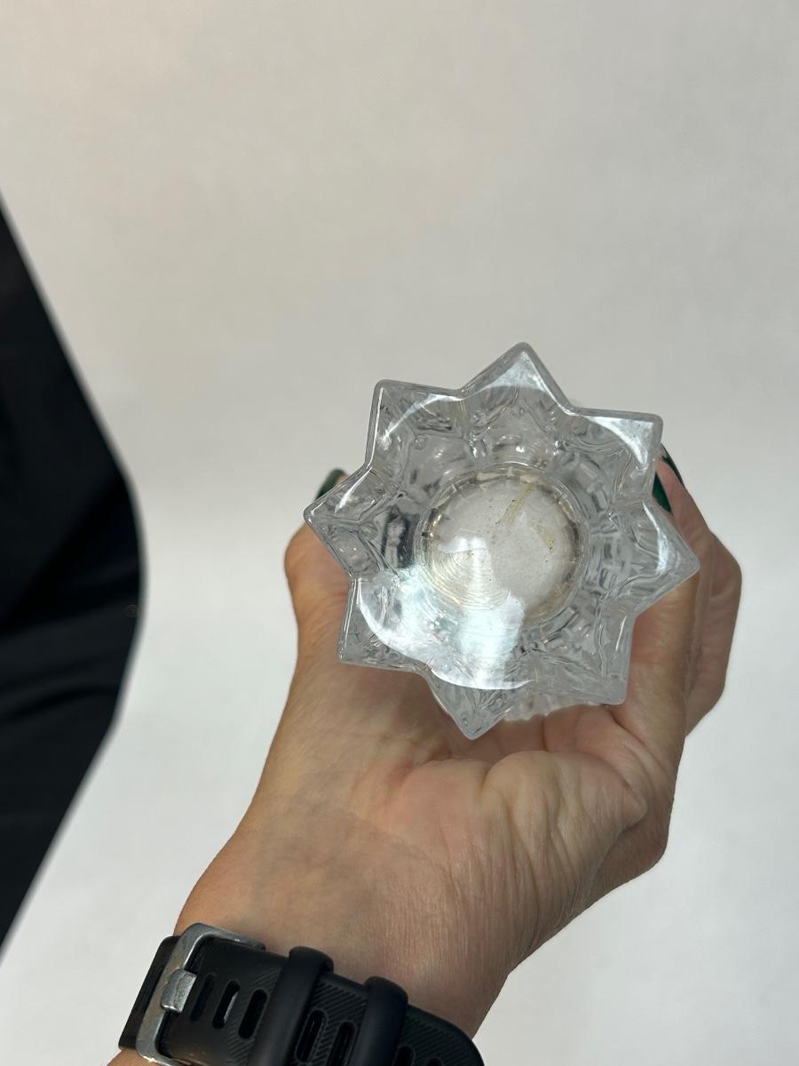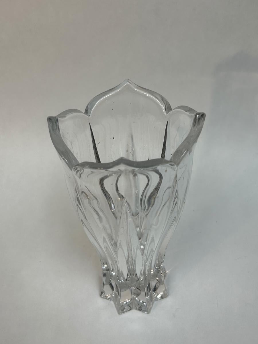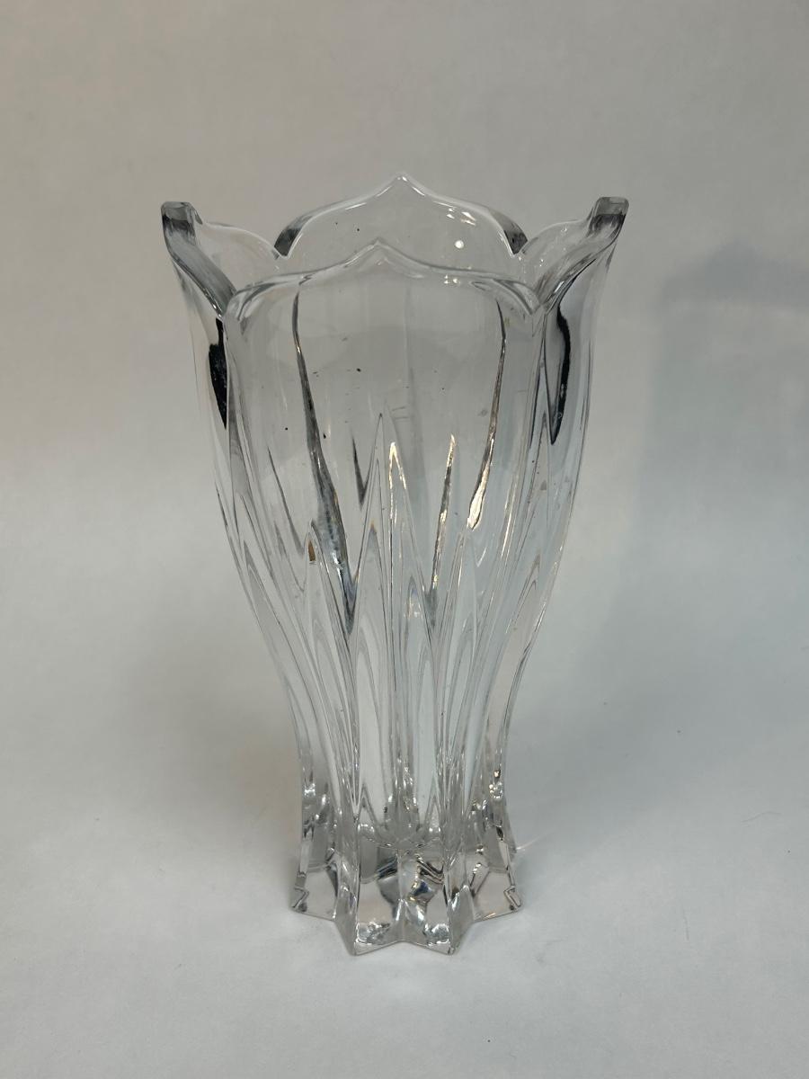Thick Heavy Glass Fluted Tulip Shaped Flower Floral Vase. In good condition. Star shaped bottom to a tulip like top. About 8" size.