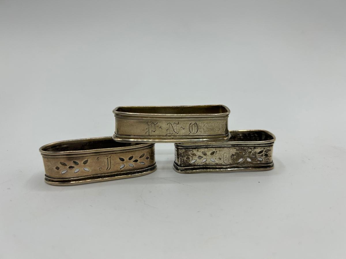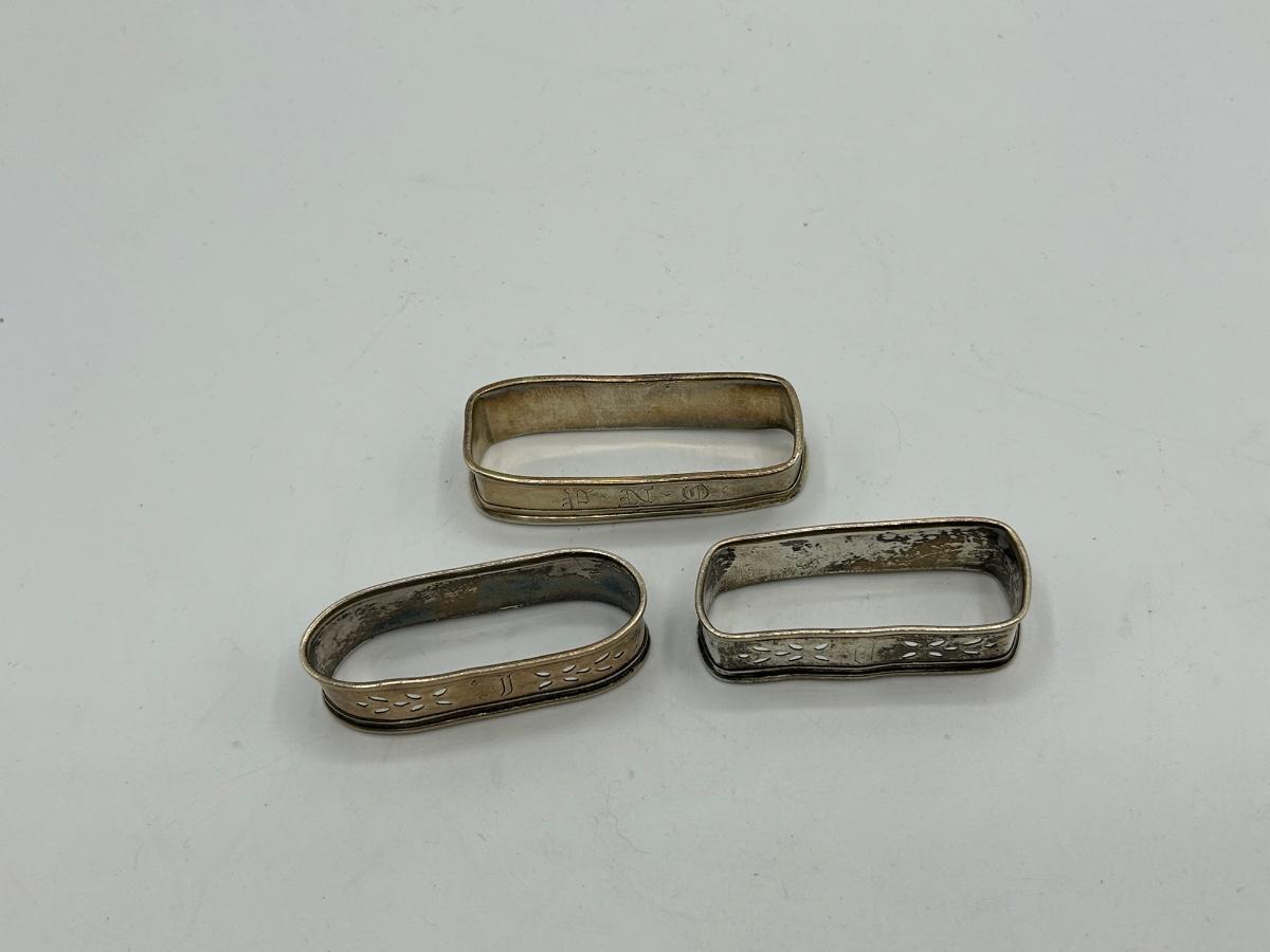 Set of Three Sterling Silver Napkin Rings Monogrammed Engraved