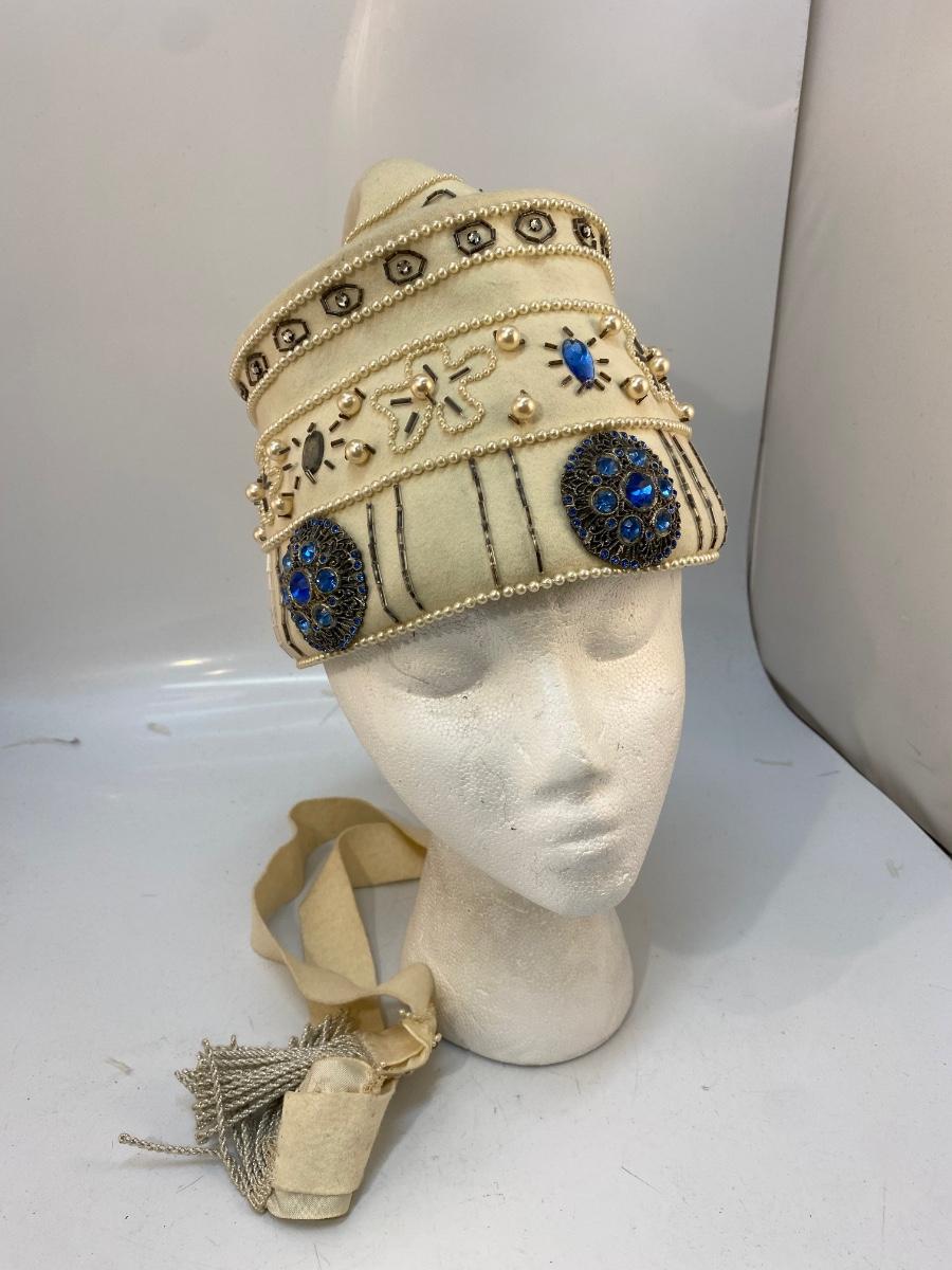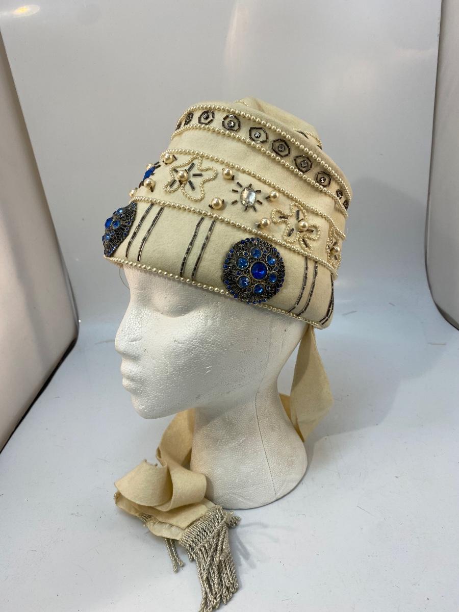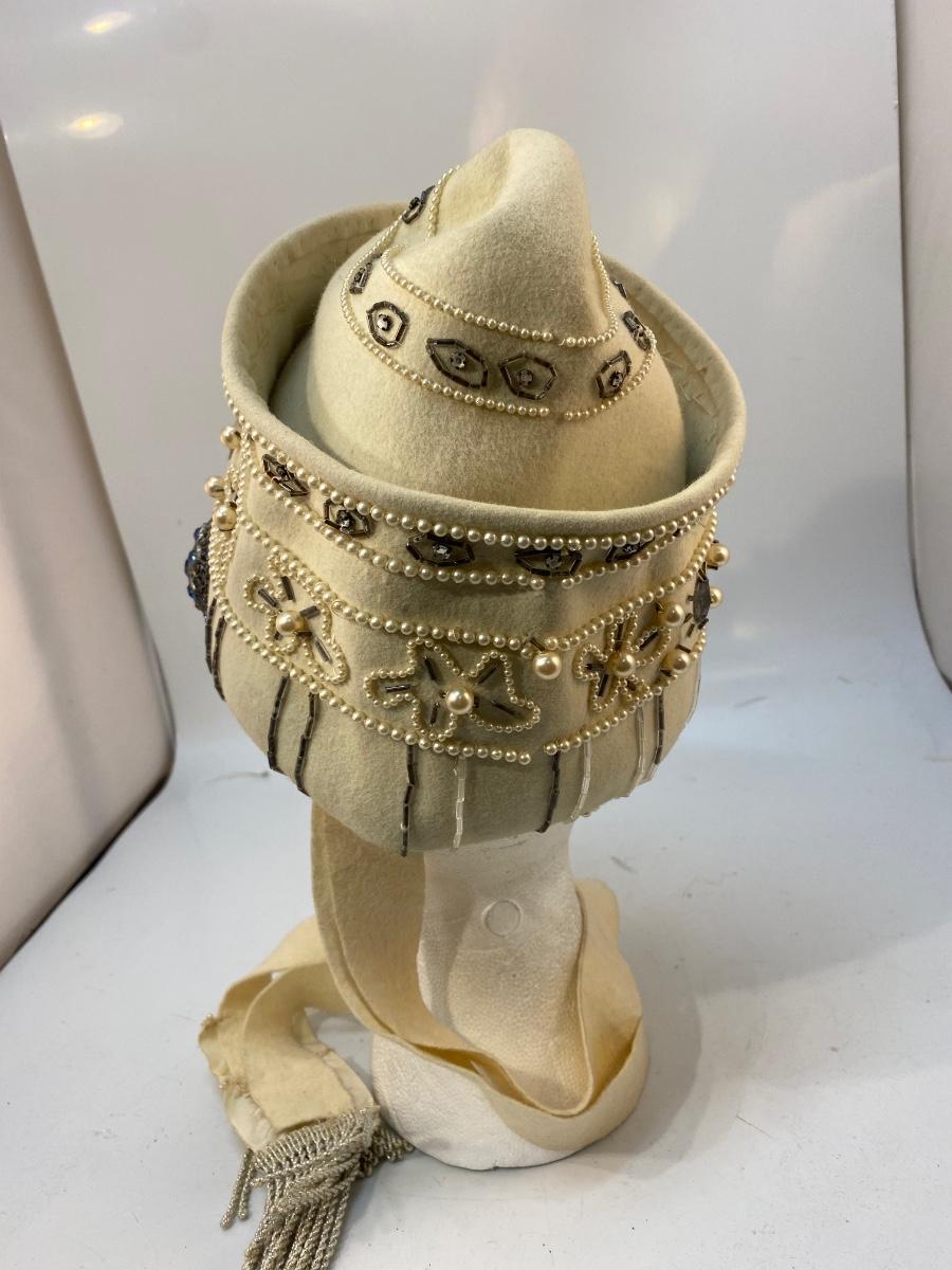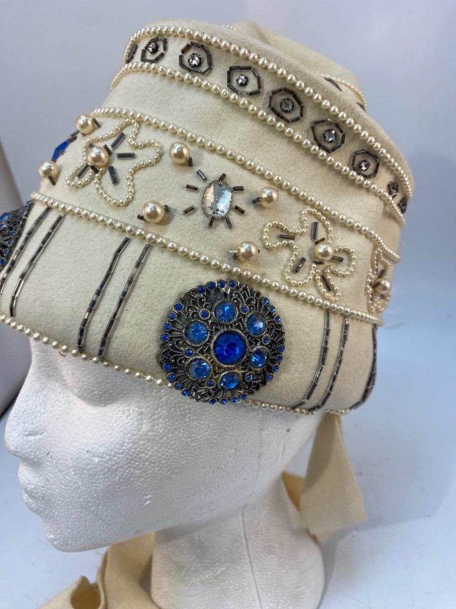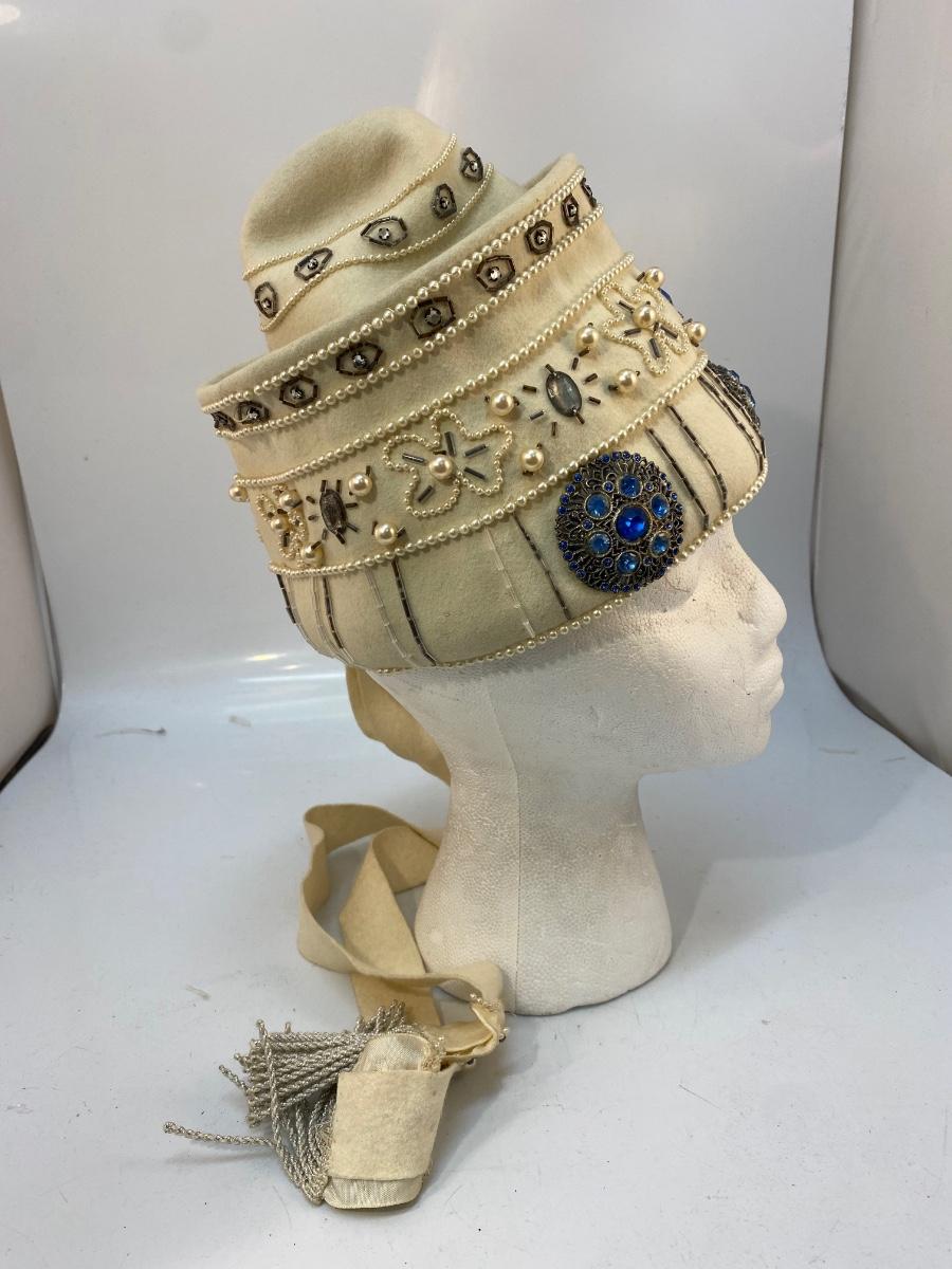 Vintage Wool Beaded Fez Turbin Beanie Hat