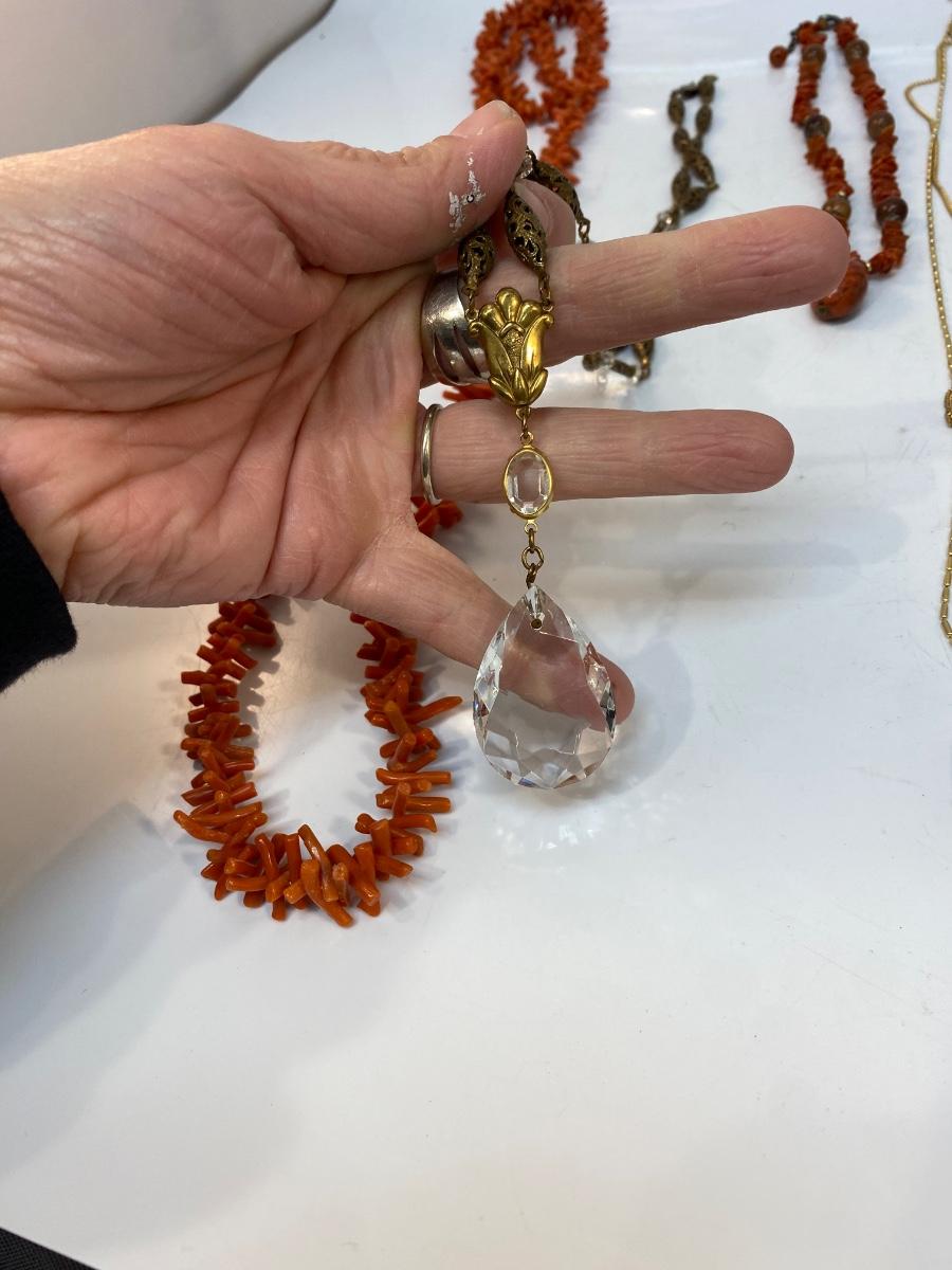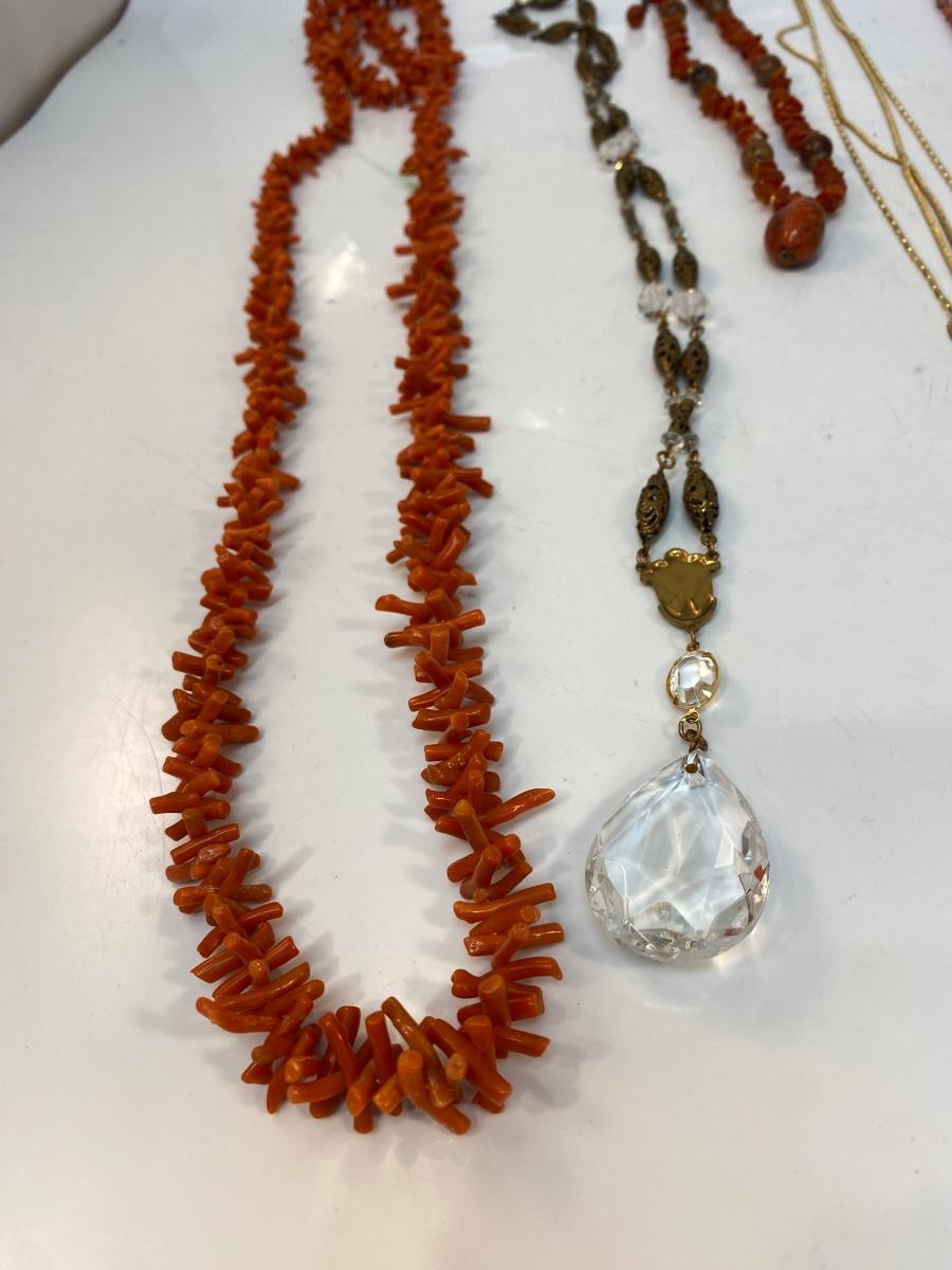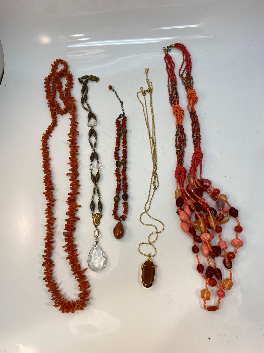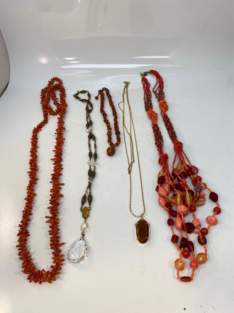 Lot of 5 Fashion Costume Jewelry Necklaces Beads Stone Red Coral. Various styles and lengths.