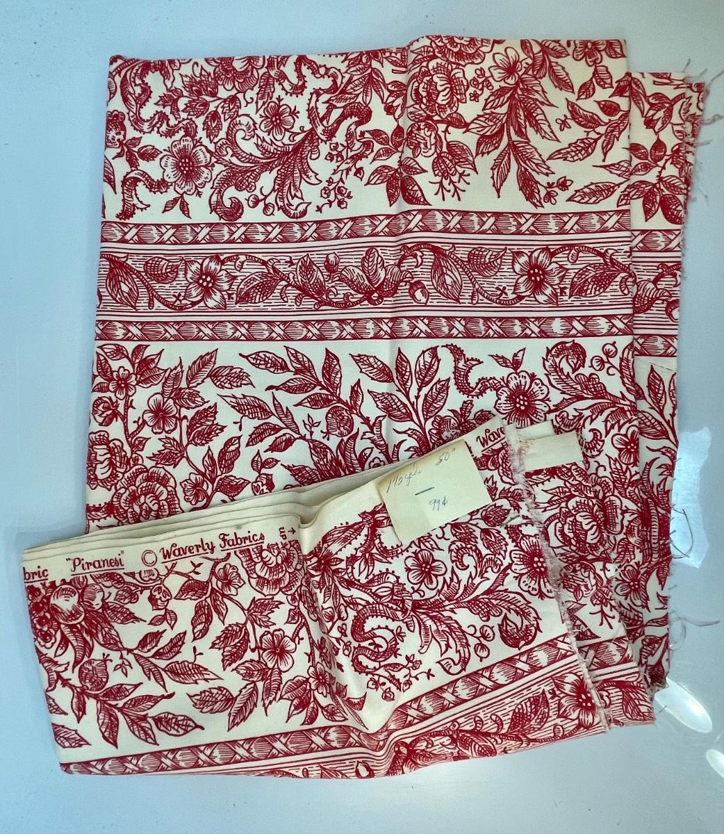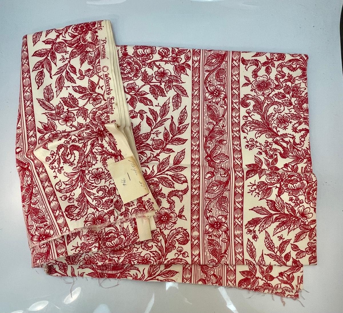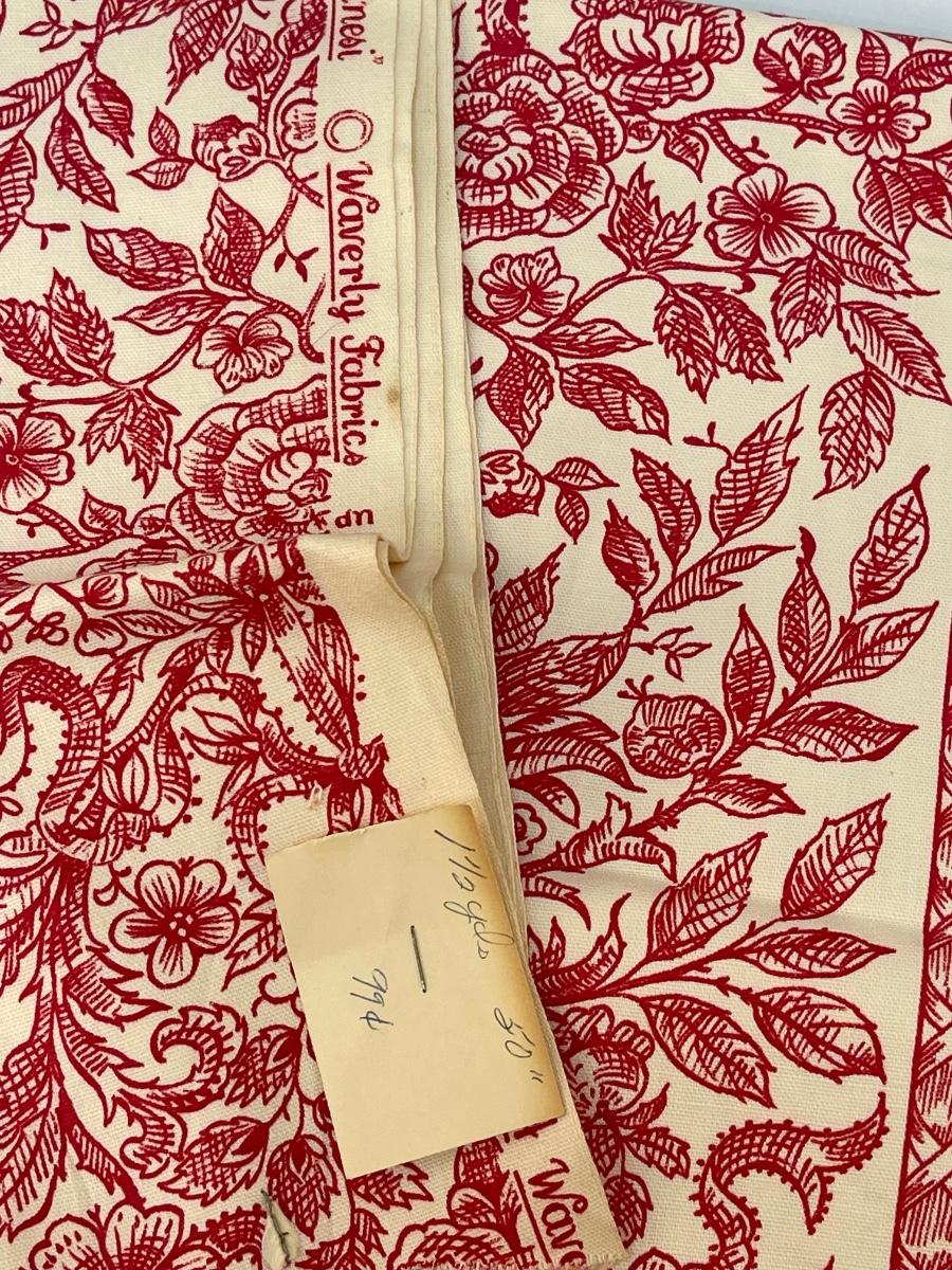 Waverly Fabrics Piranesi Pattern 1.5 yards Red & White Floral Vine Flowers & Leaves