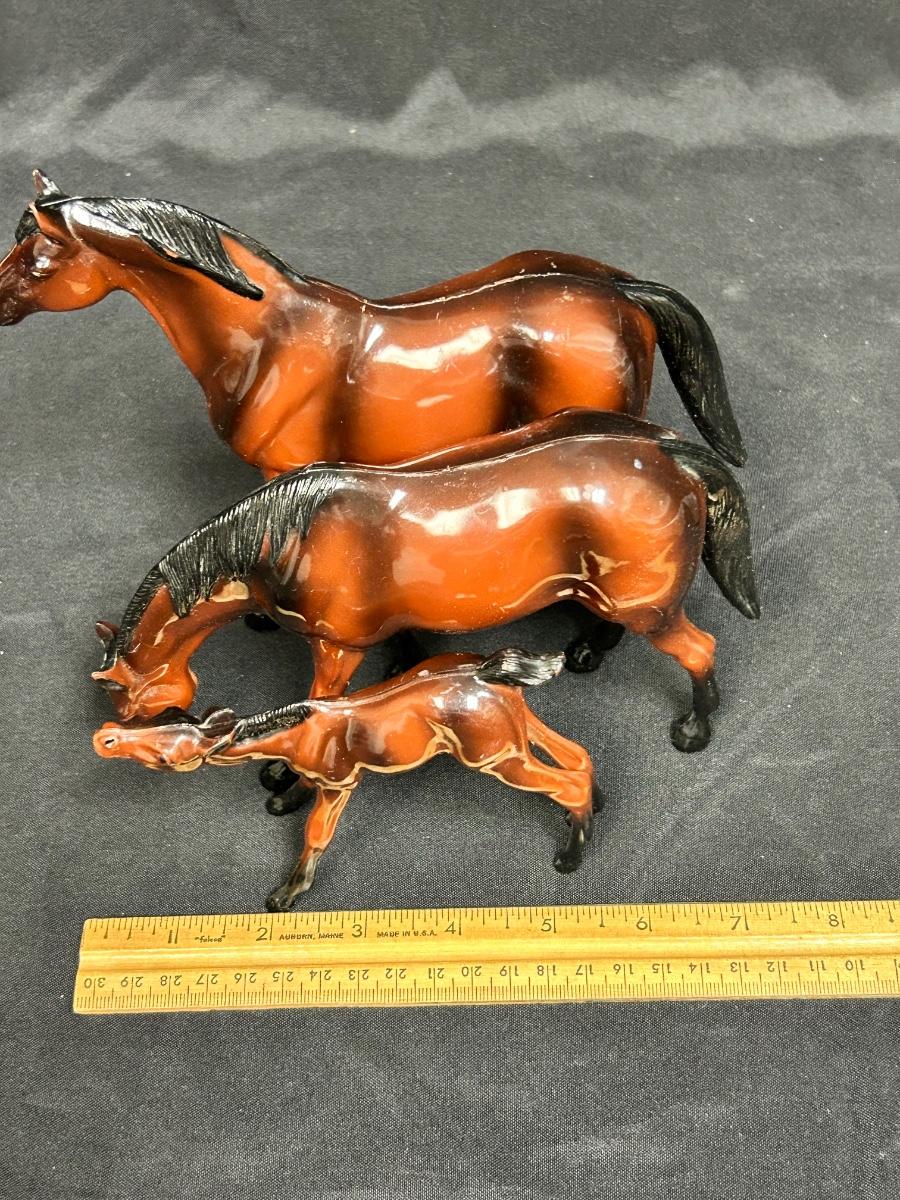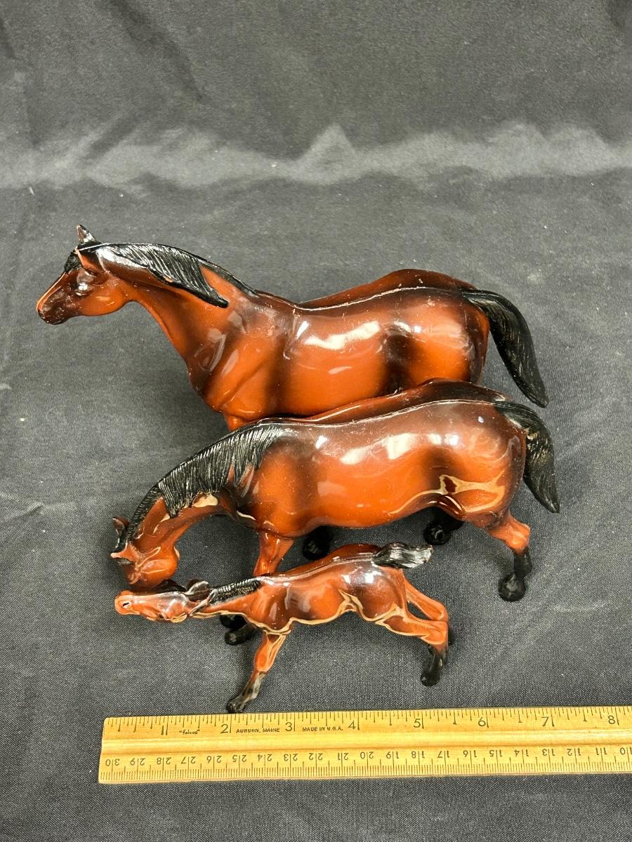Set of Three Model Toy Horses Sire Mare Colt Foal Family Hartland Plastics. In good condition. Great for display or play.