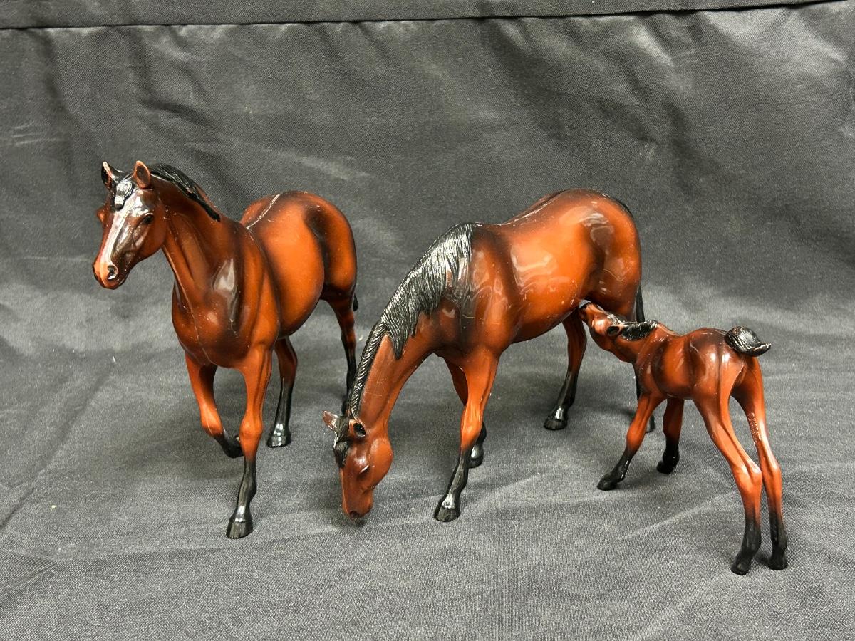 Set of Three Model Toy Horses Sire Mare Colt Foal Family Hartland Plastics