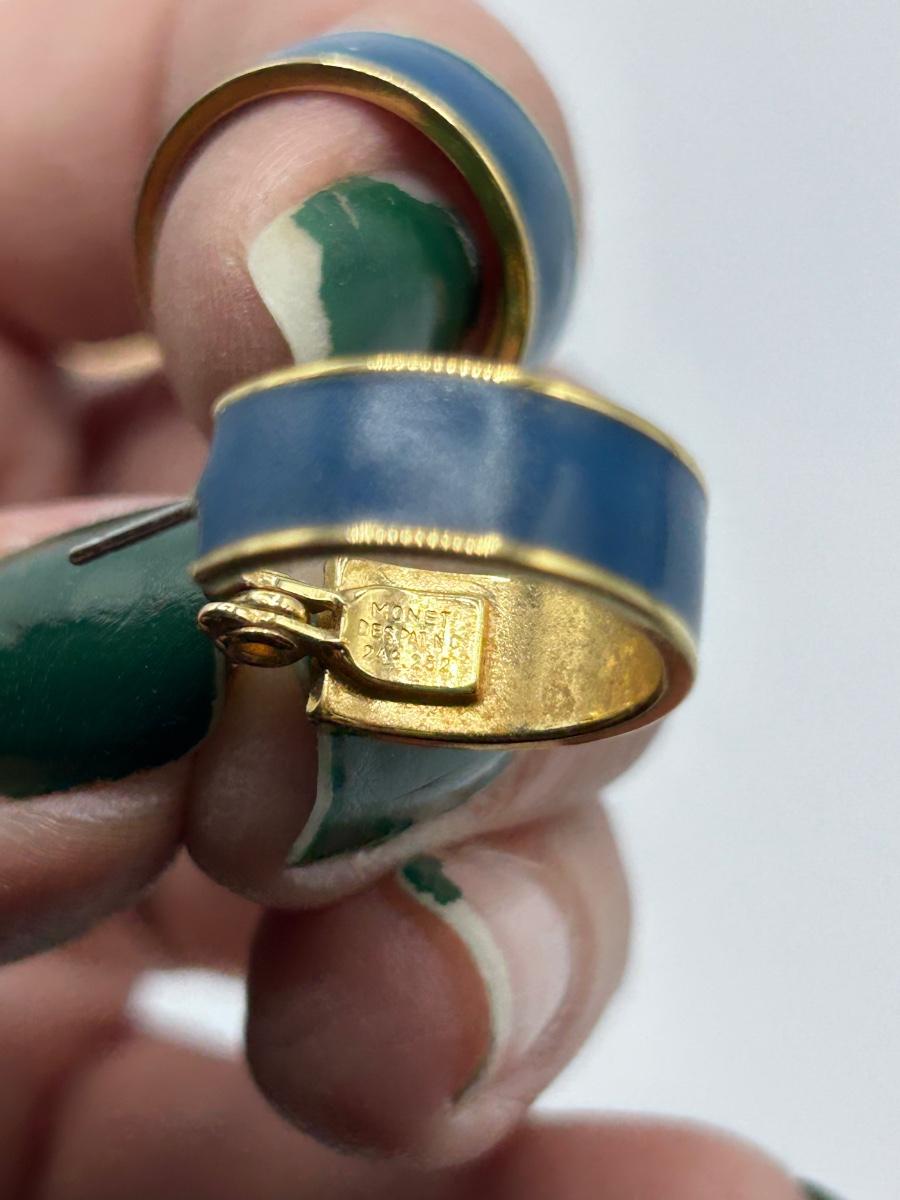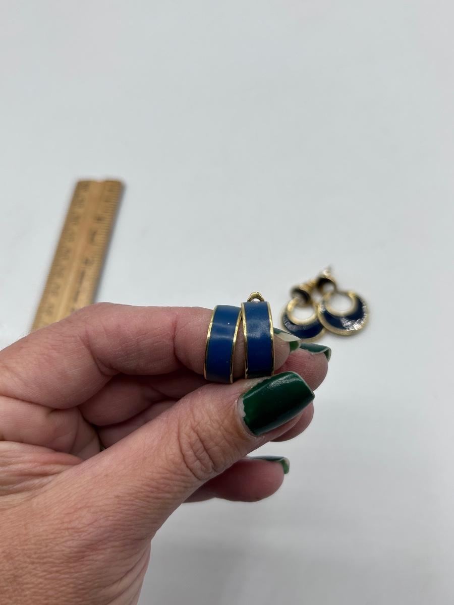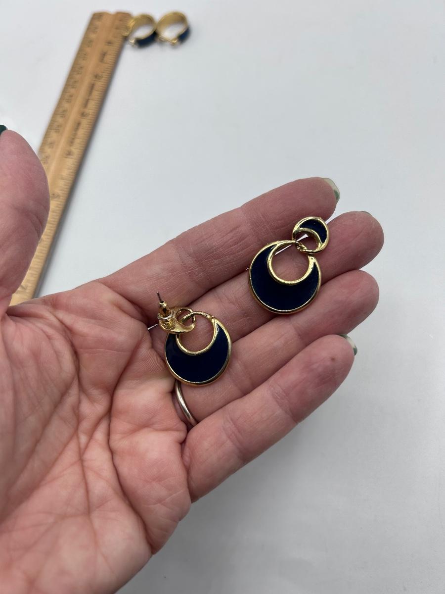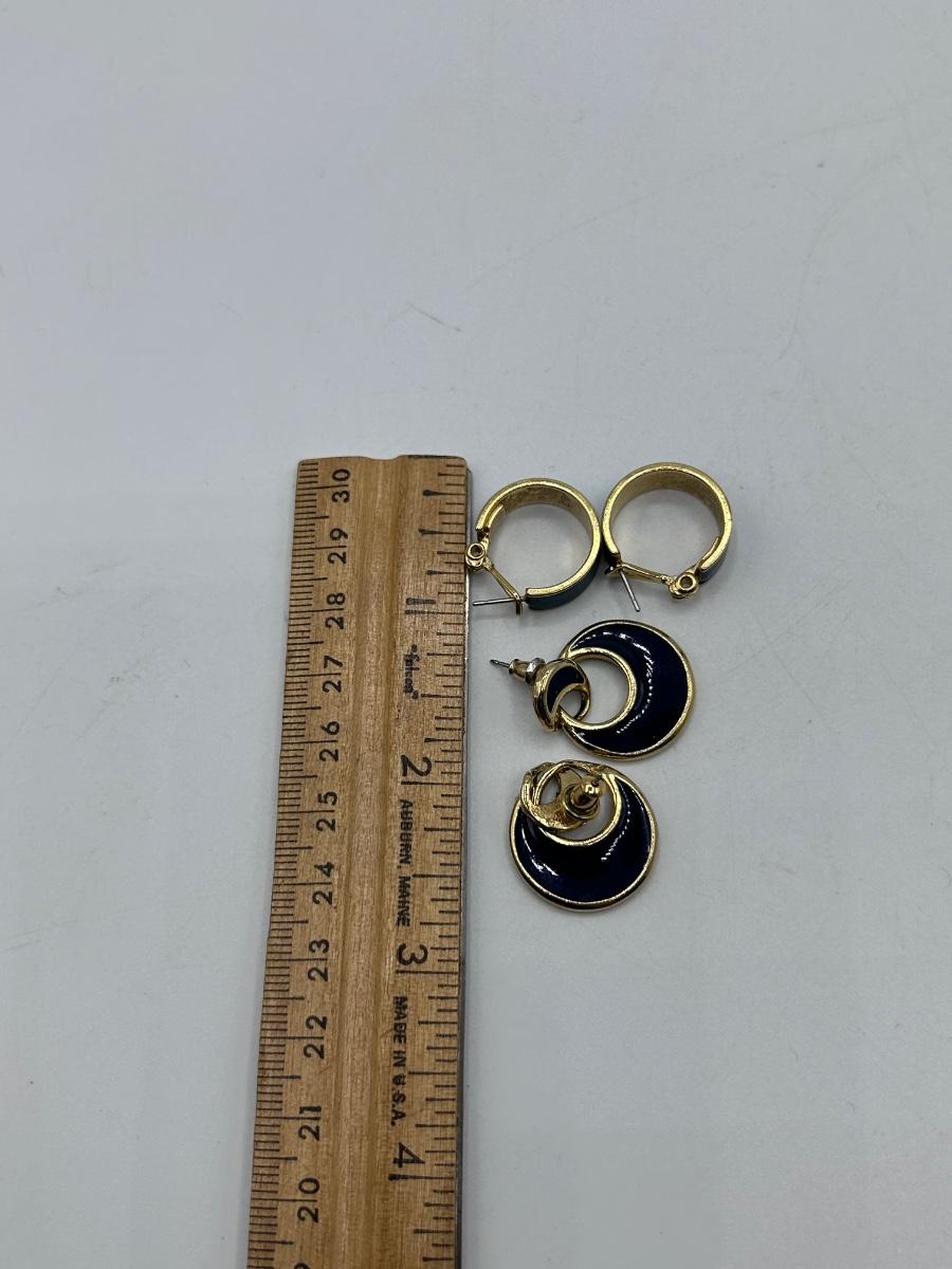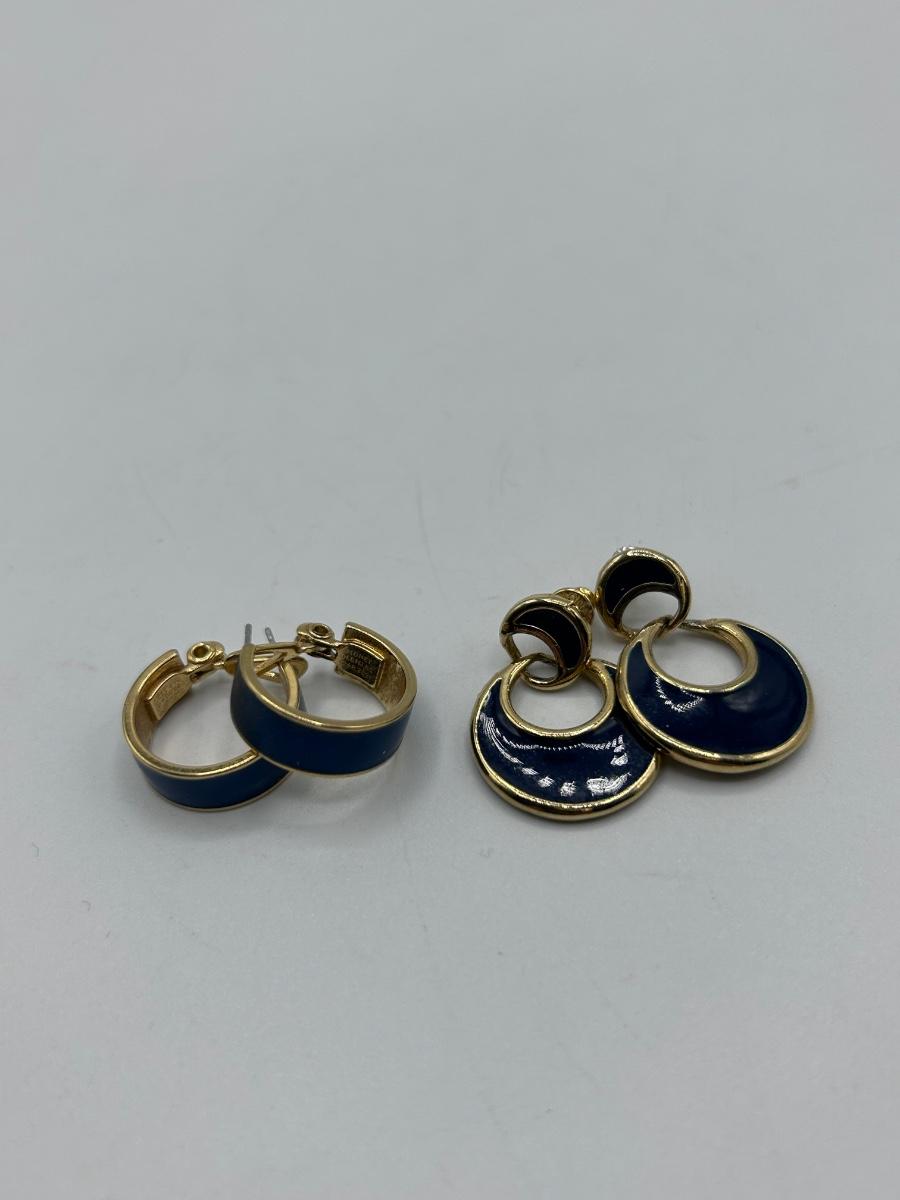 Two Pairs of Navy Blue Enamel Gold Tone Metal Earrings