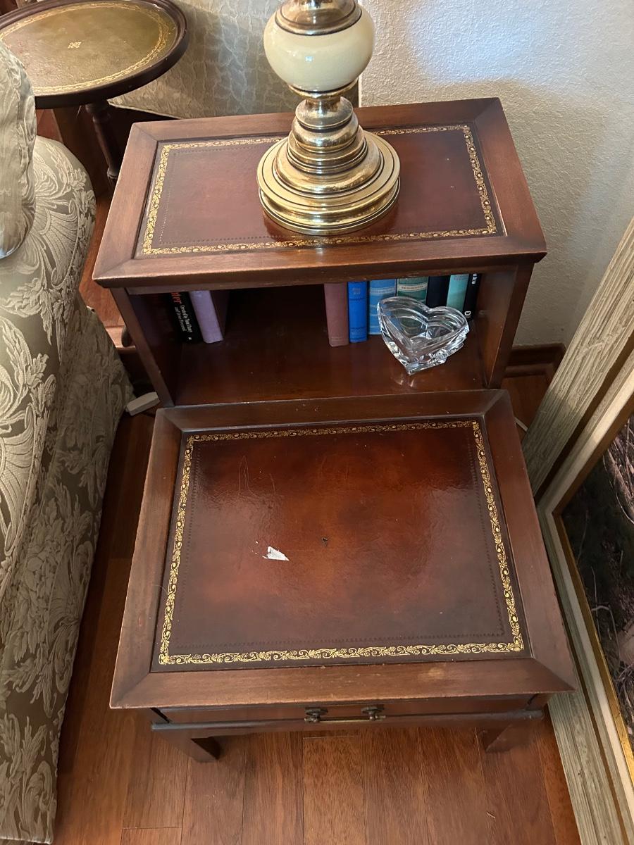 Pair of Vintage Midcentury Mahogany Two-Tier End Side Tables Single Drawer Hekman Furniture
