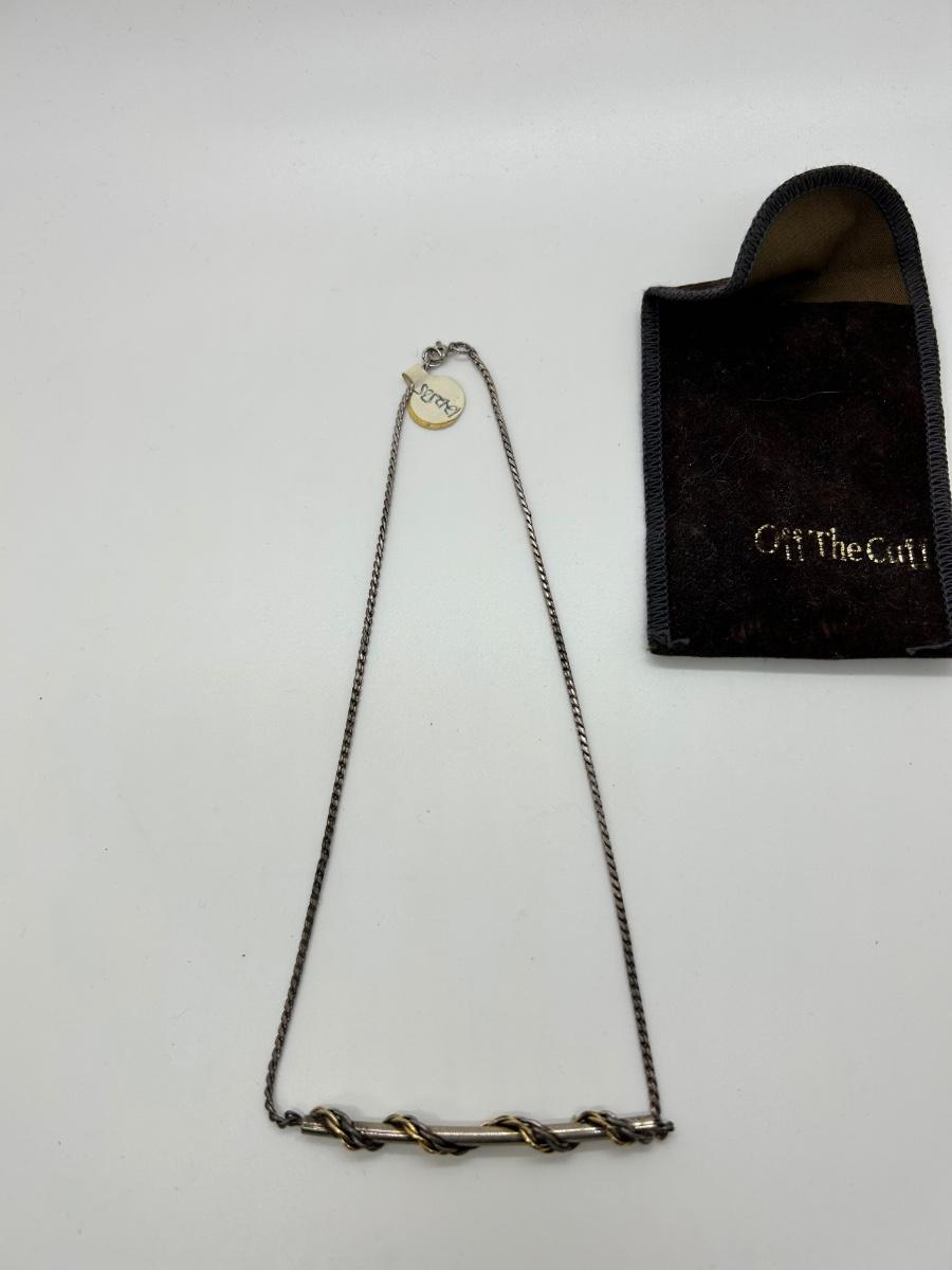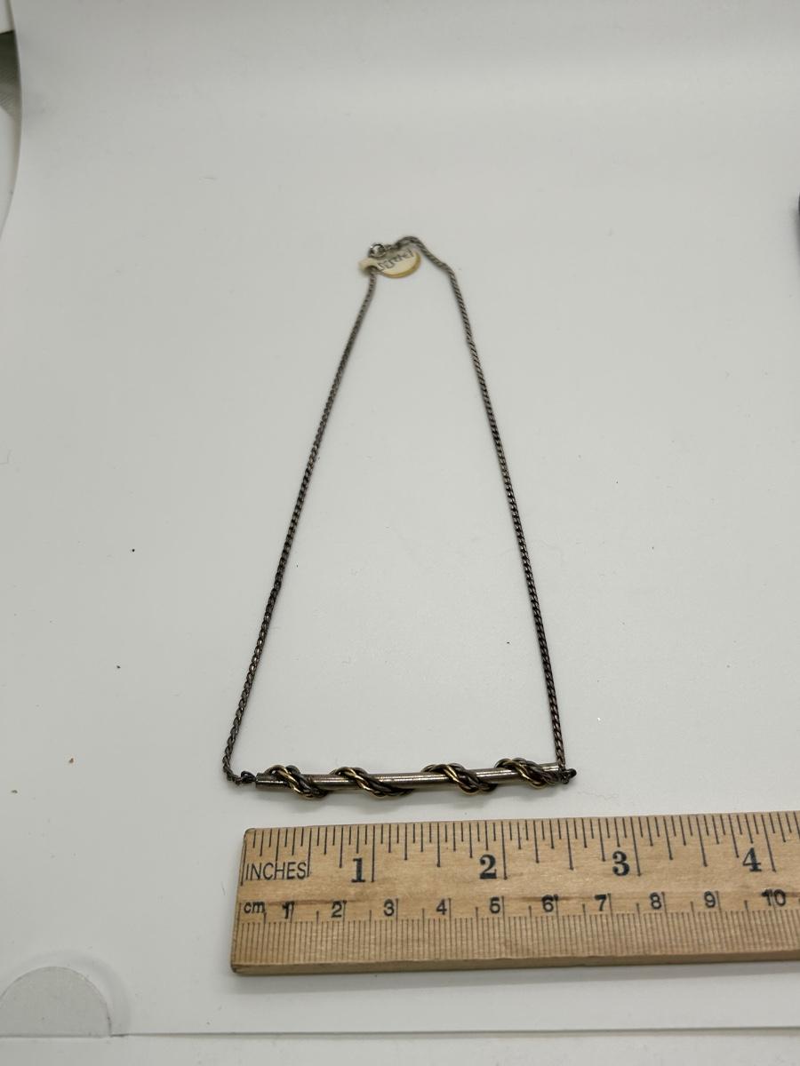 Retro Choker Style Twisted Rope Chain Over Bar Necklace. In vintage condition. No sterling marks, needs to be cleaned.