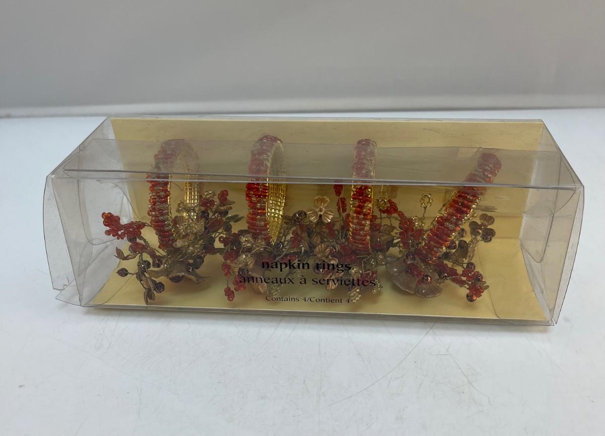 Fall Autumn Colored Motif Flower Napkin RIngs Set