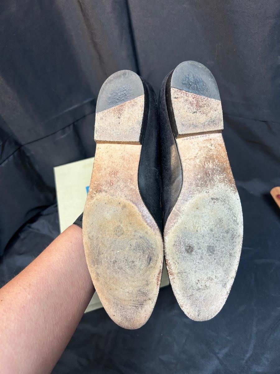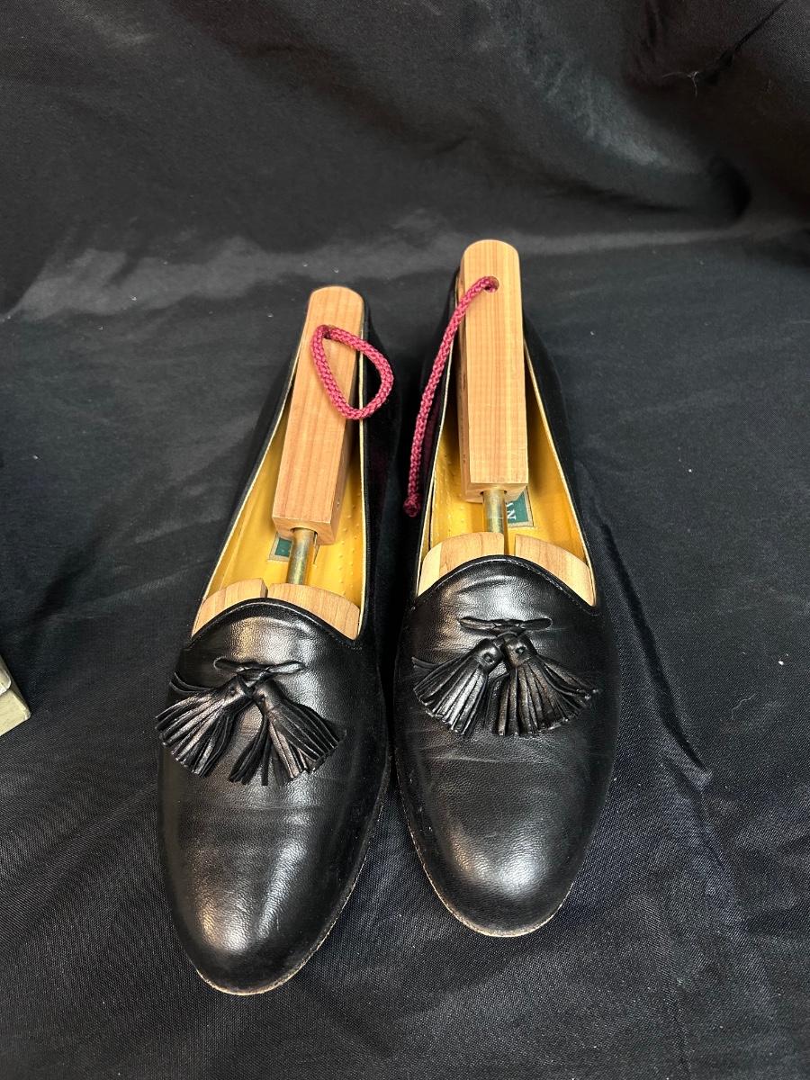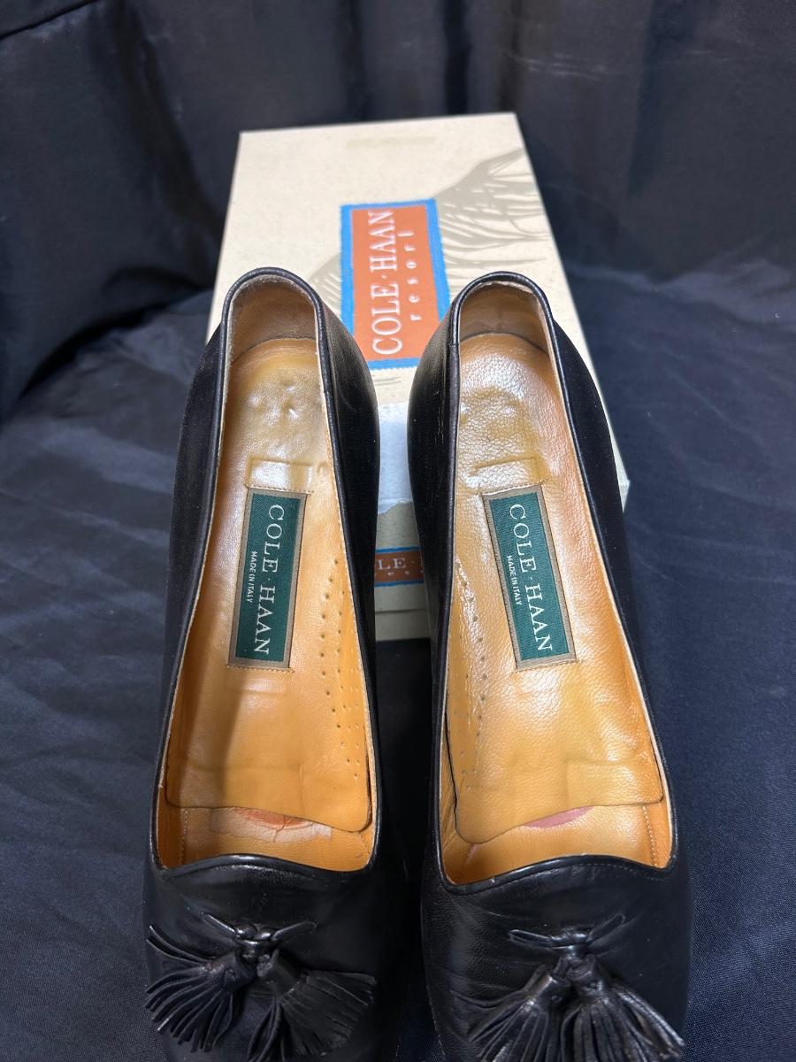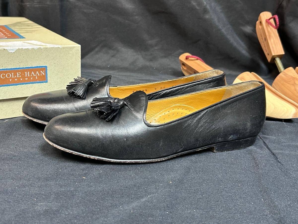 Cole Haan Size 9AA Black Leather Tassel Ladies Shoes Flats with Wood Shoe Forms