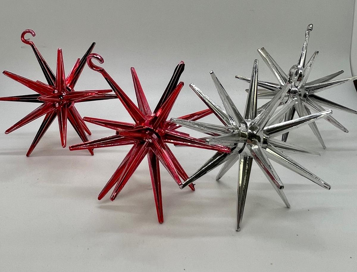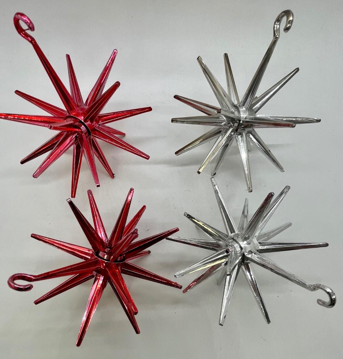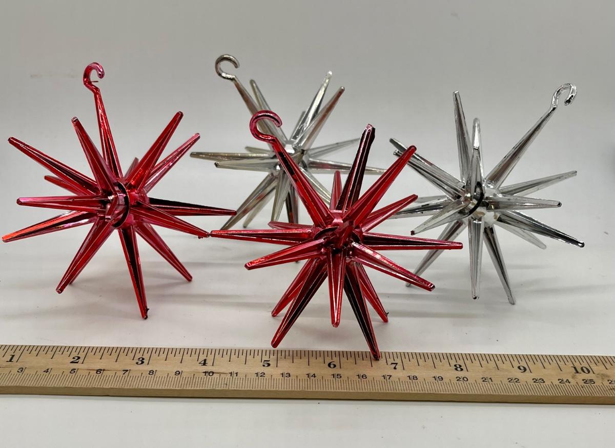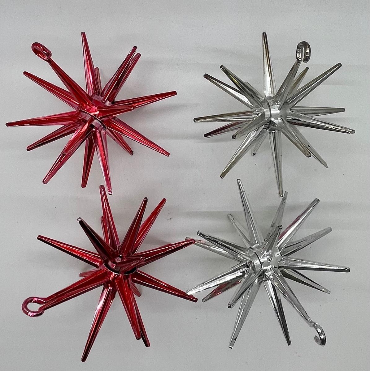 Set of Four Vintage Sputnik Ornaments Atomic Starburst Christmas Ornaments pink and silver