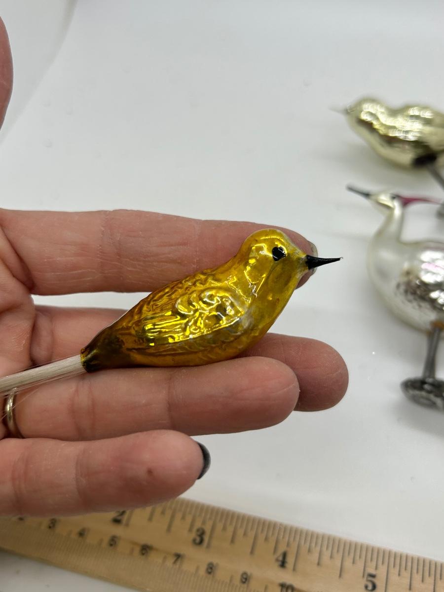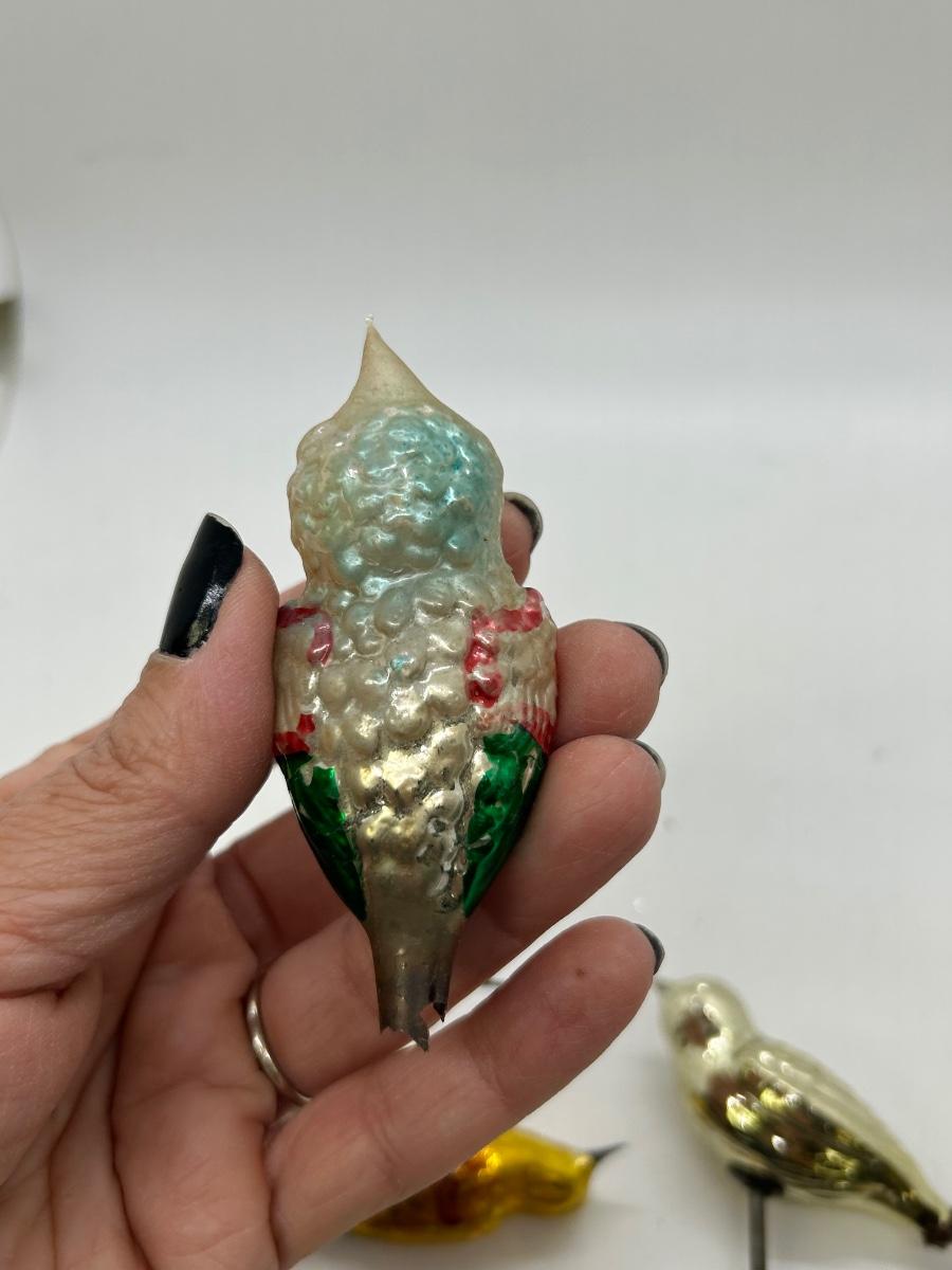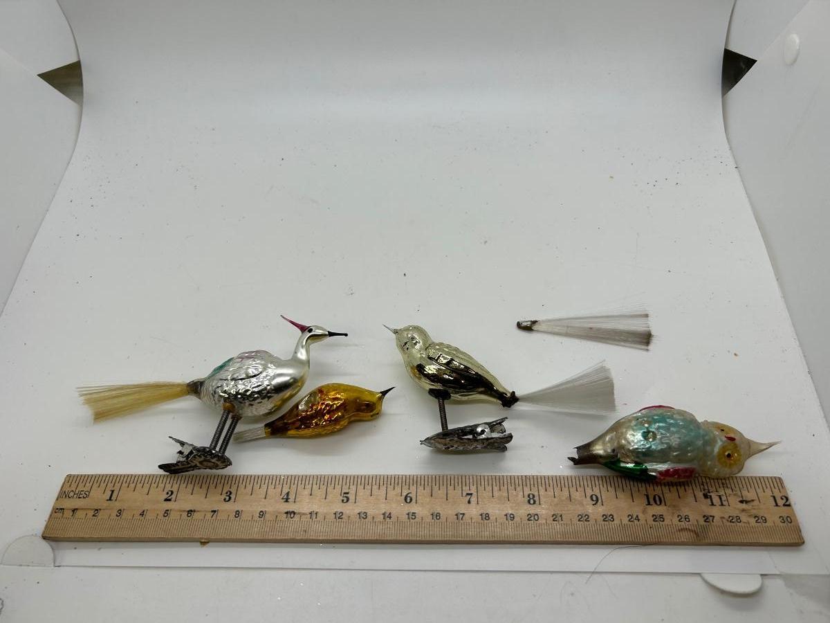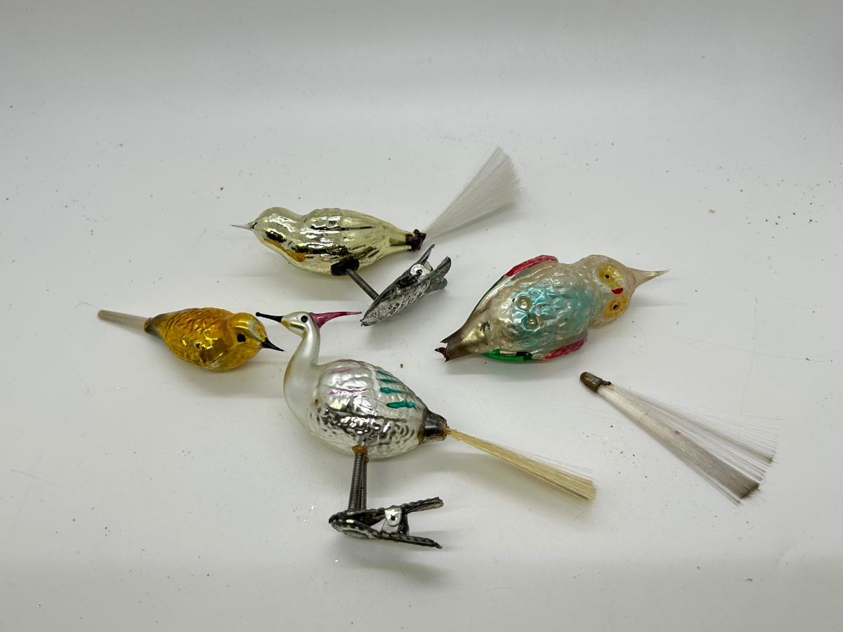 Vintage Blown Glass Bird Shaped Christmas Holiday Tree Ornaments Clip Style