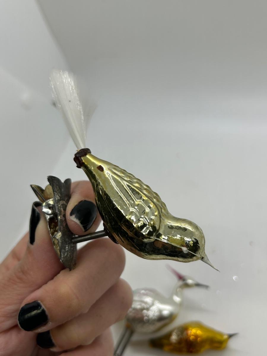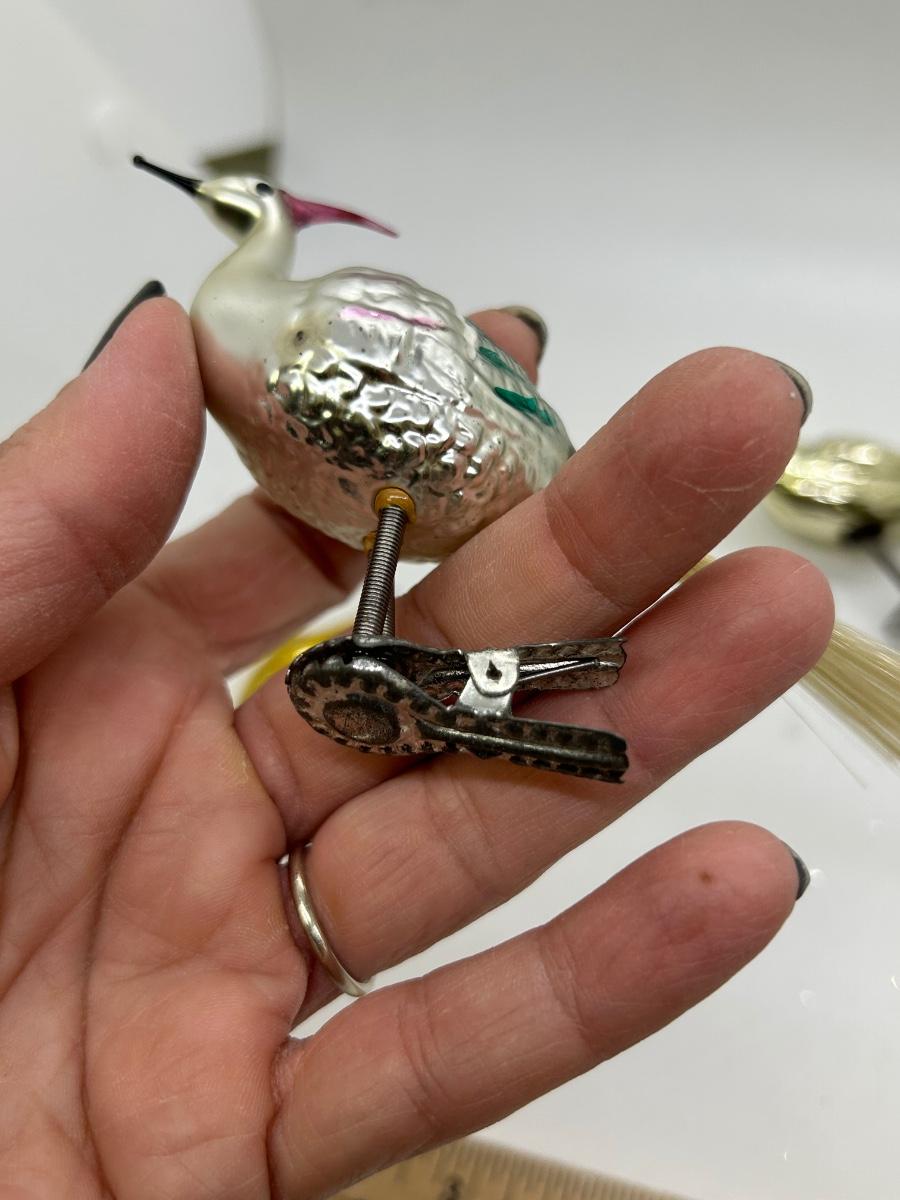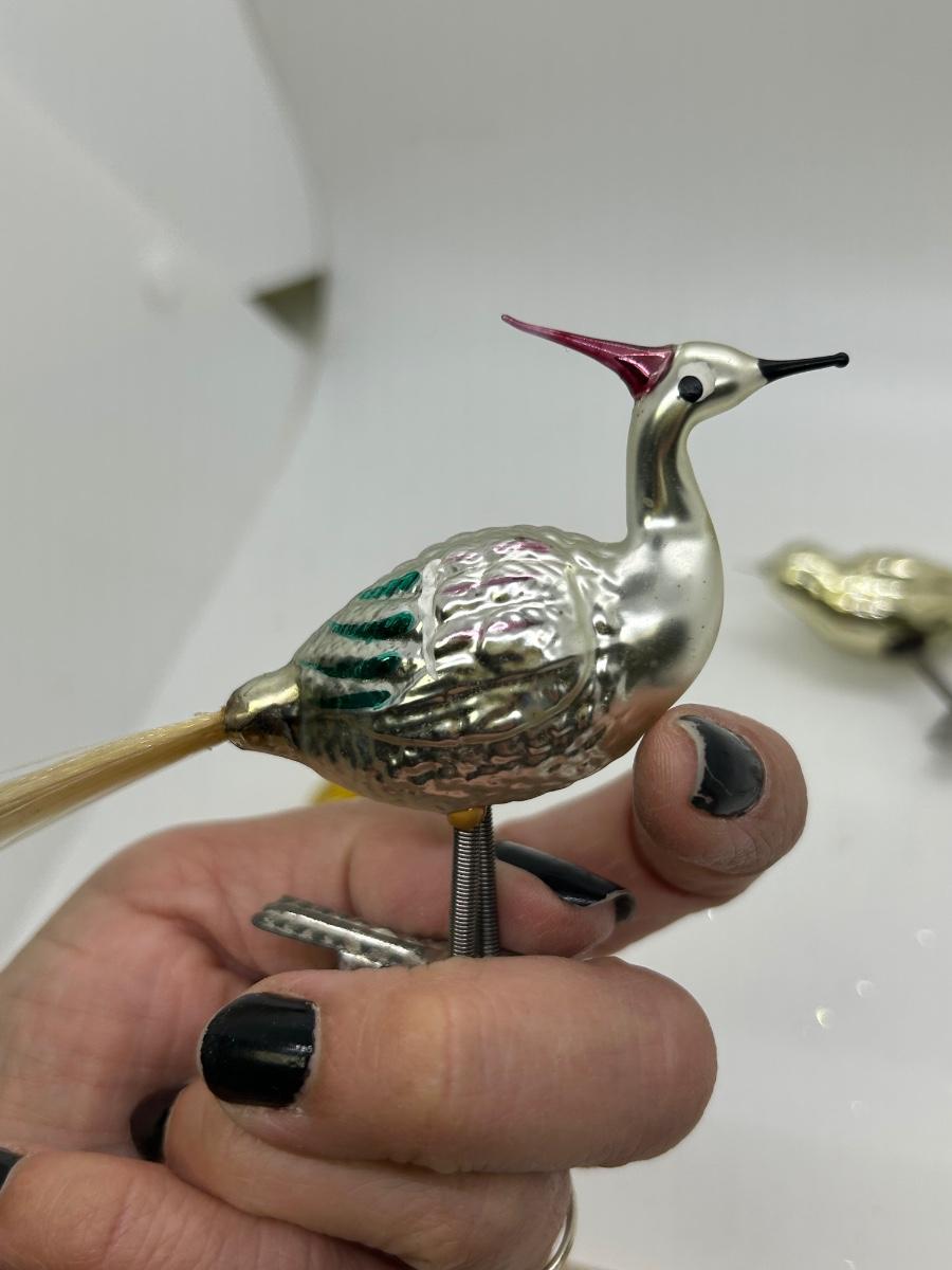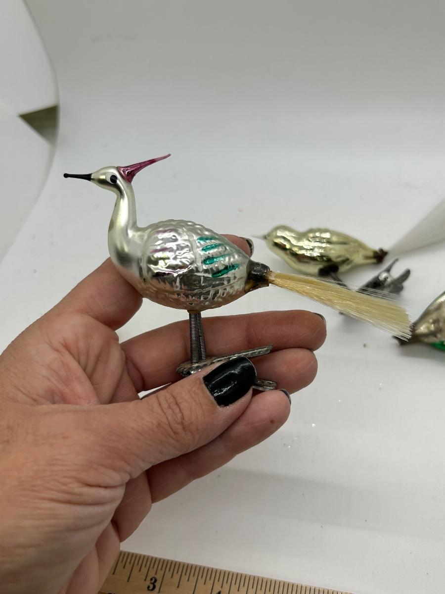 Vintage Blown Glass Bird Shaped Christmas Holiday Tree Ornaments Clip Style