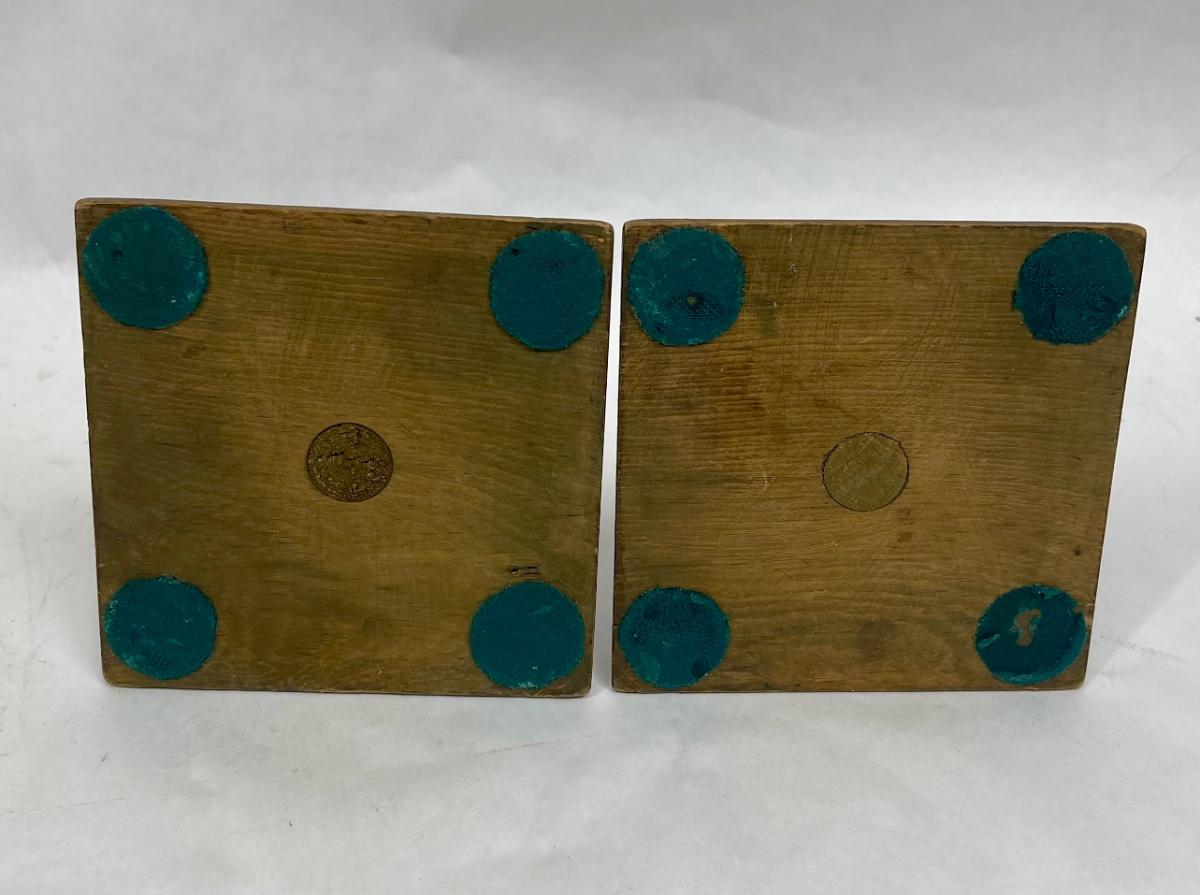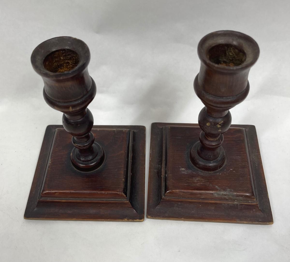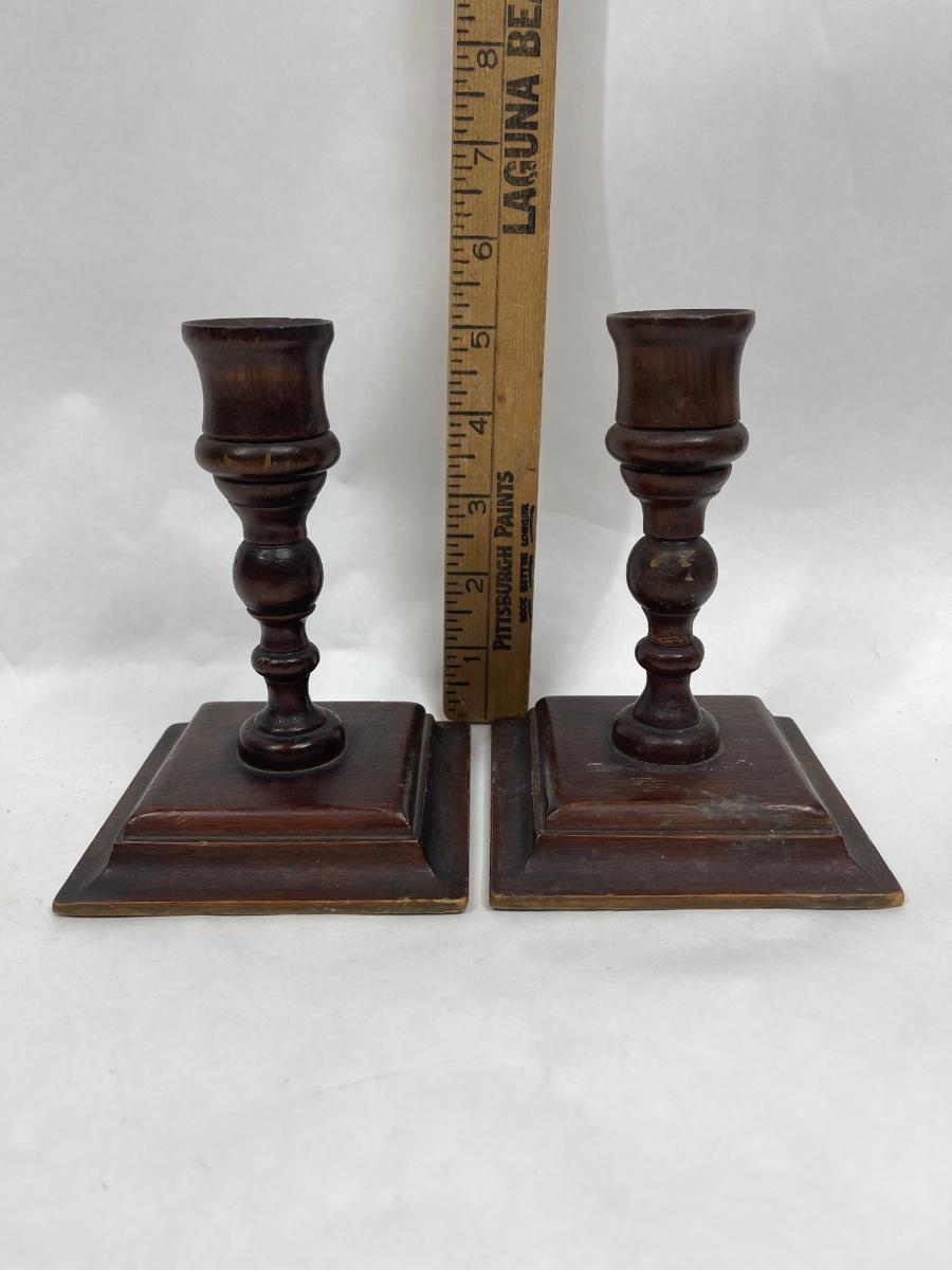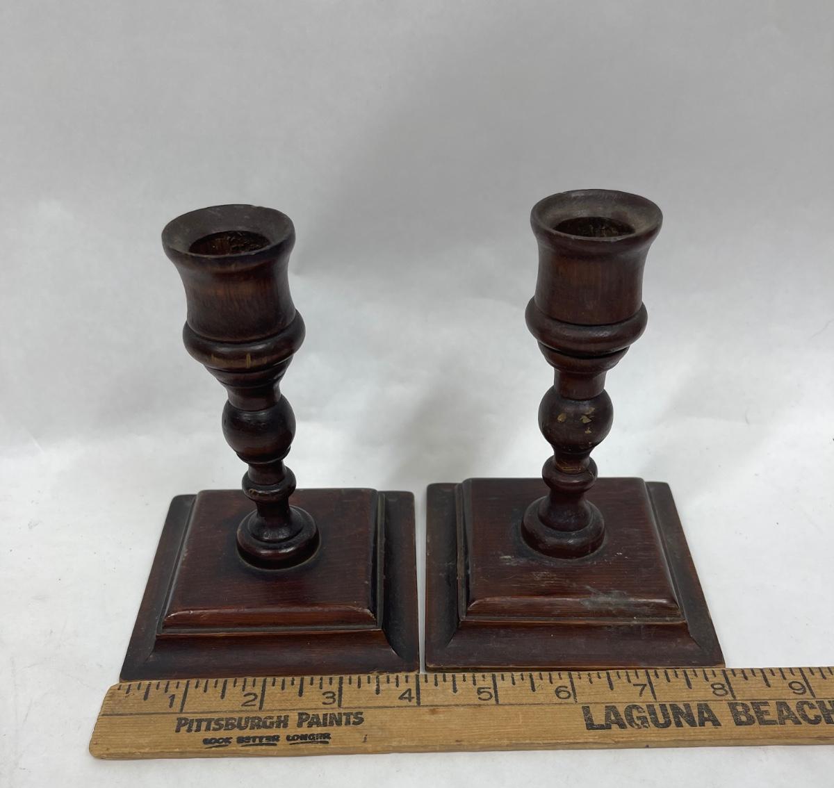 Pair of Country Primitive Distressed Wood Candlestick Holders