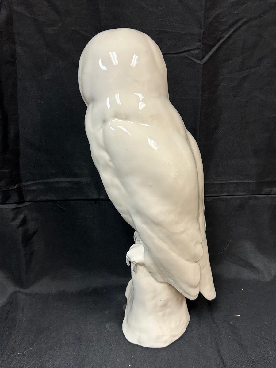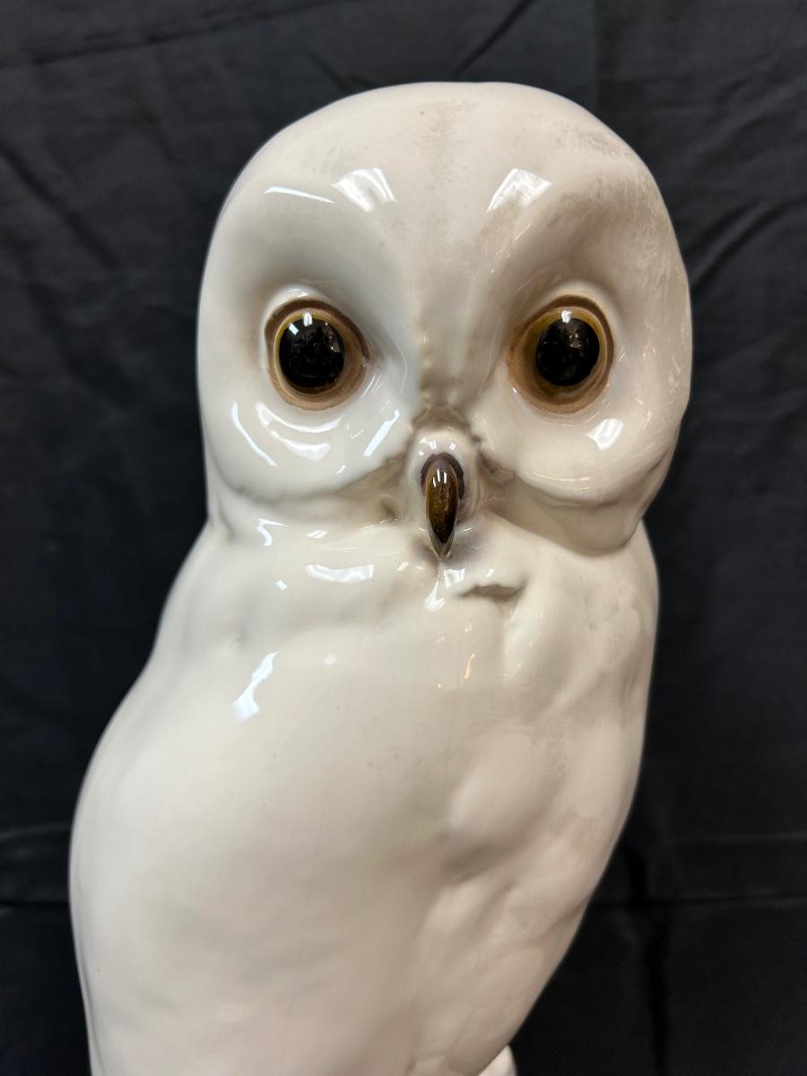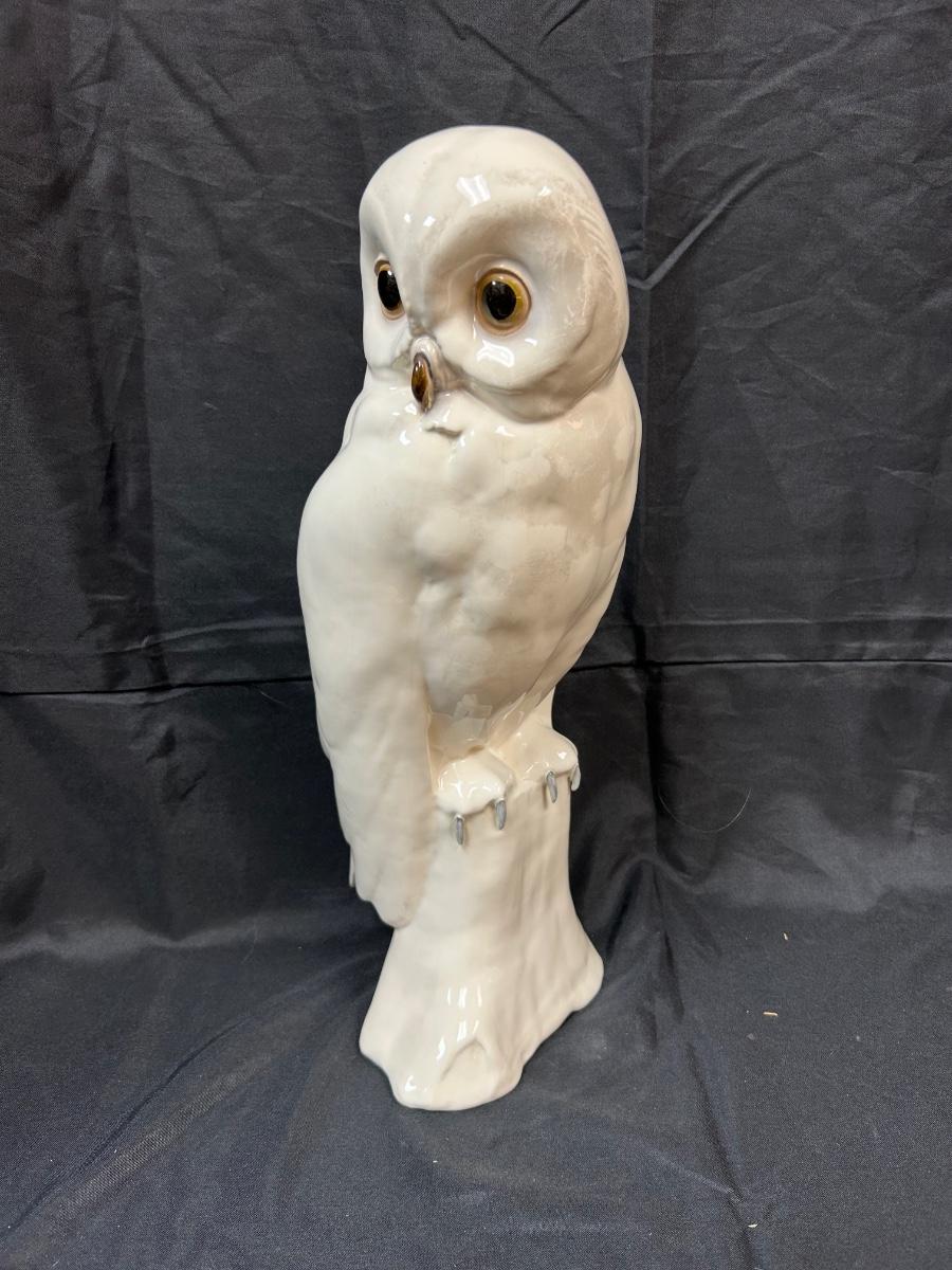 Large White Snowy Owl Porcelain Ceramic Figurine Statue Signed