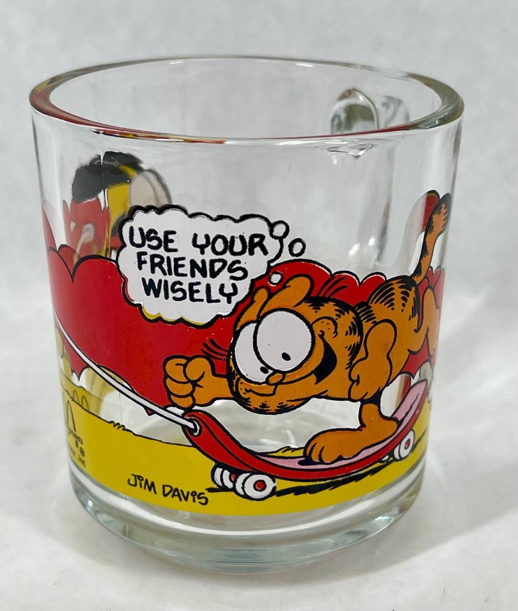 Vintage 1978 Garfield Glass Mug Skateboard Odie Dog Use Your Friends Wisely Garfield Mug McDonalds Mug Jim Davis Cat Mug