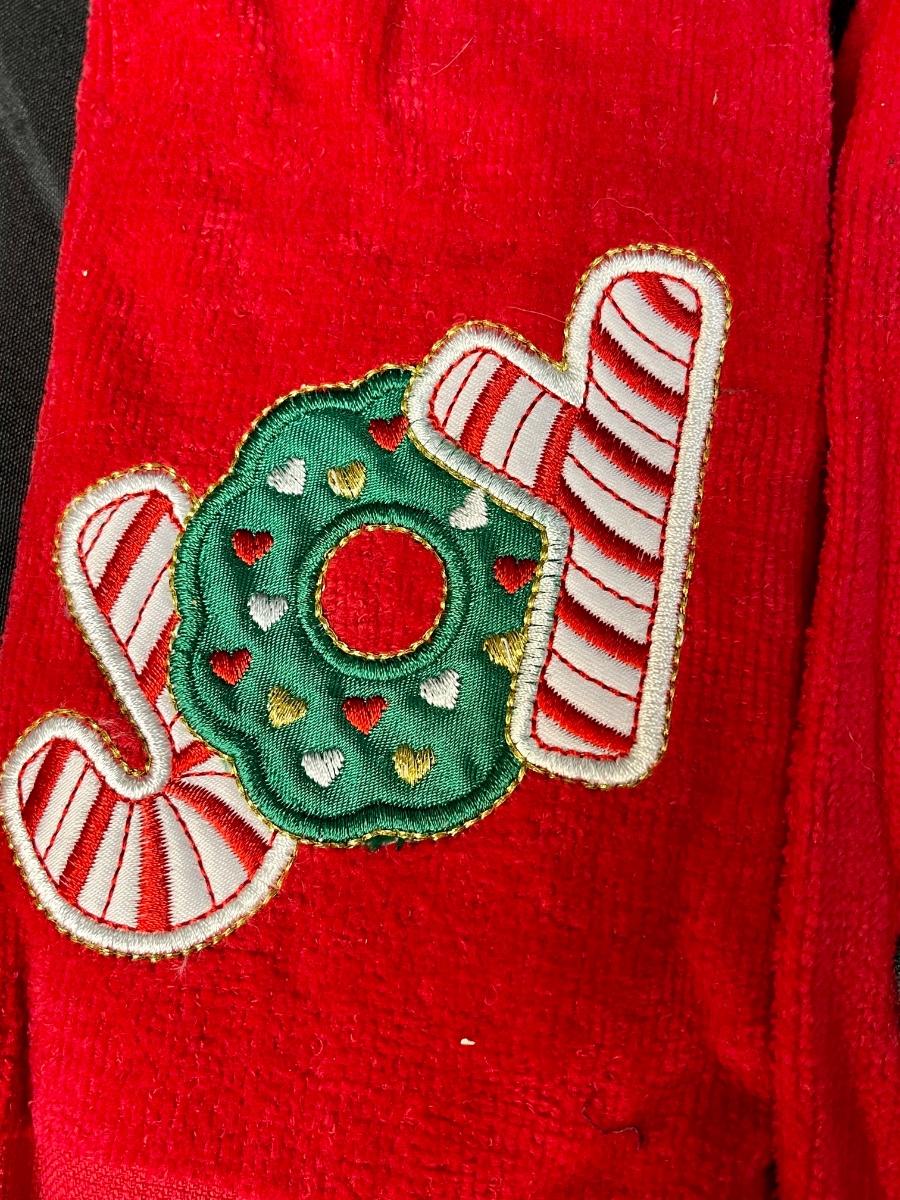 Red and Green Christmas Teddy Bear Santa Applique Hand Towels