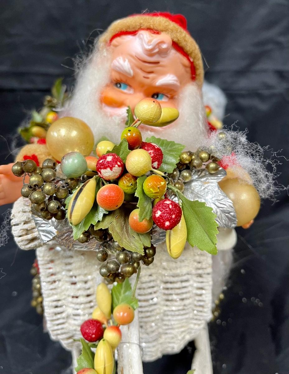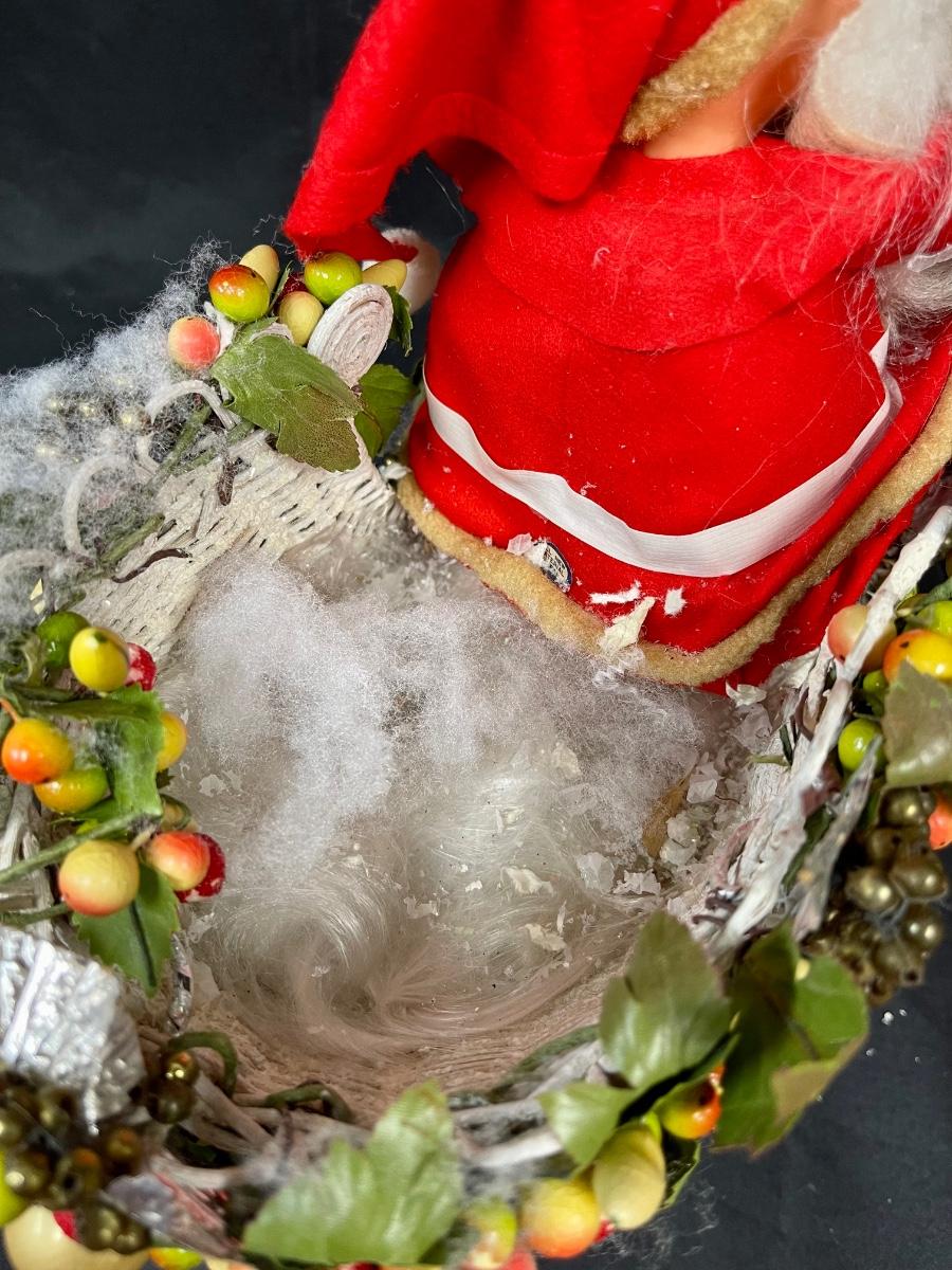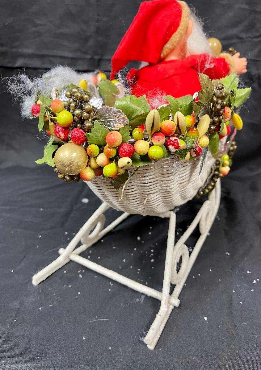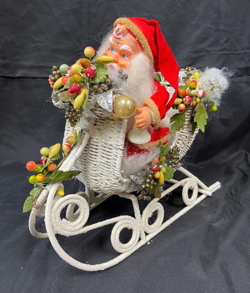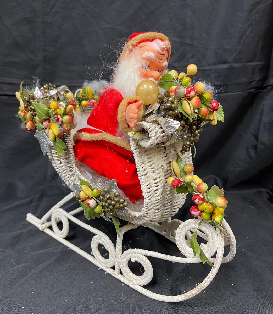 Collectible Mid-Century Christmas Santa Claus in White Rattan Sleigh Decor