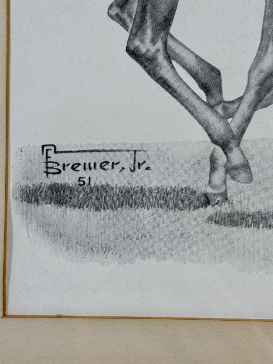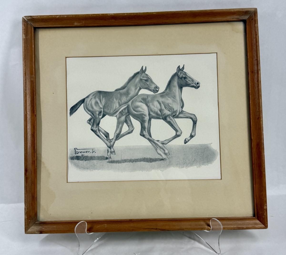 Framed Artwork, Etching, Running Horses signed Allen F Brewer Jr.