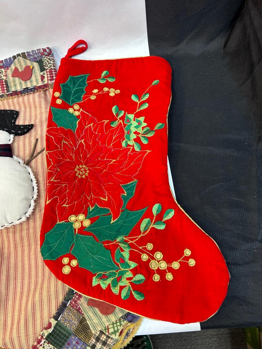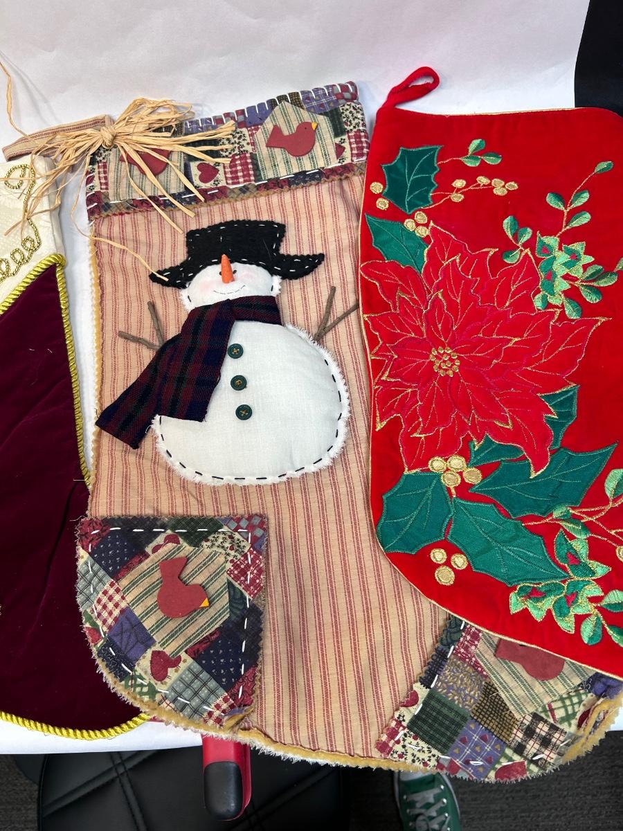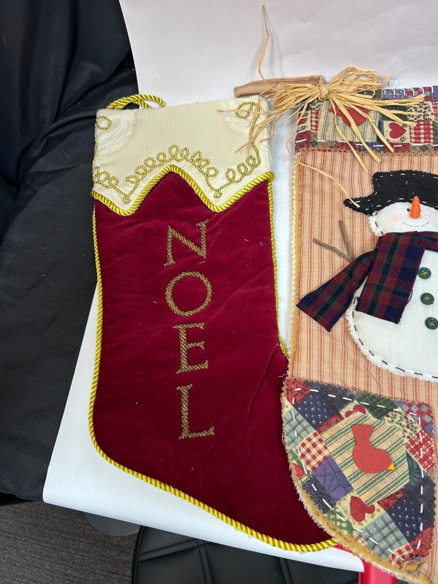 Lot of Three Christmas Holiday Stockings Patchwork Folk Art Traditional Velvet. In good condition. May have been displayed and used prior.