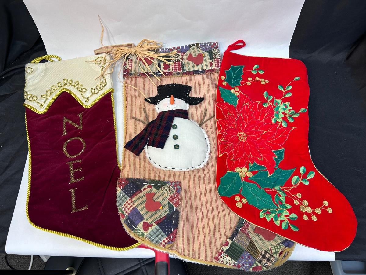 Lot of Three Christmas Holiday Stockings Patchwork Folk Art Traditional Velvet