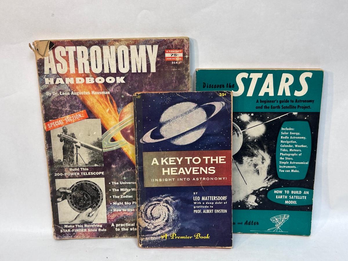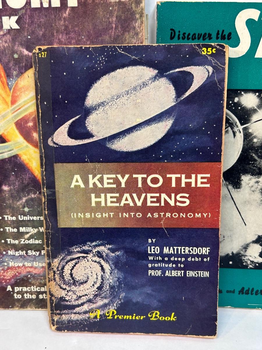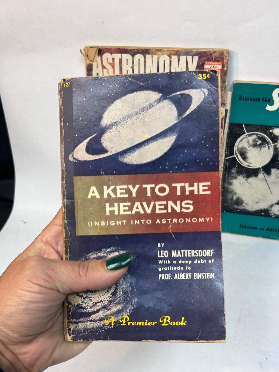Vintage Lot of Astronomy Star Gazer Books and Magazines Late 1950s. In worn vintage condition. The A Key to the Heavens book has lines that have been underlined.
