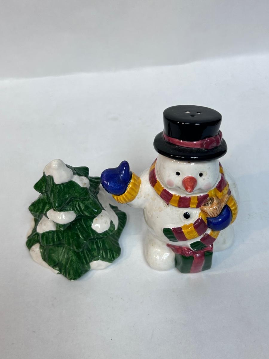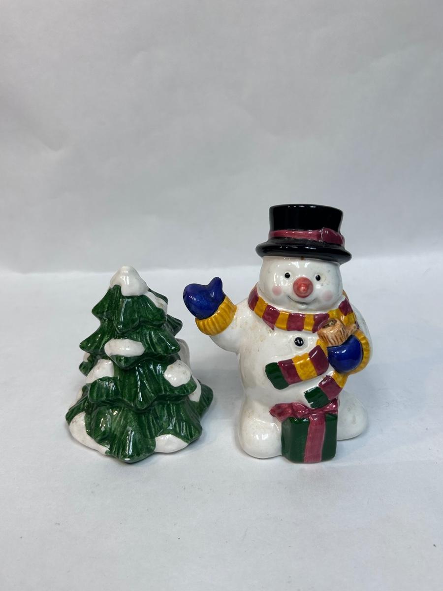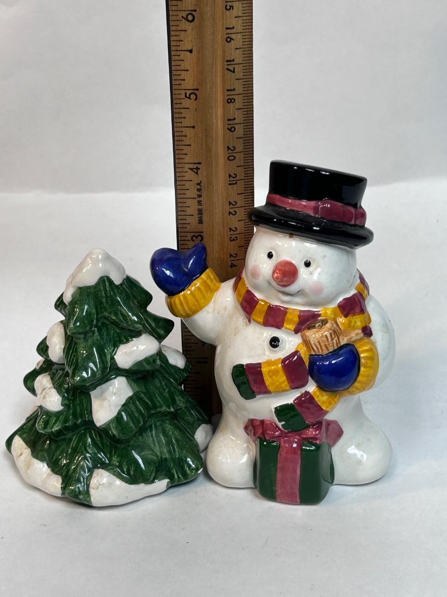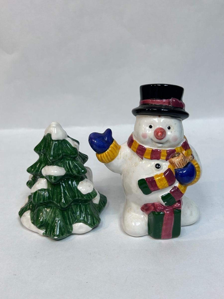 Ceramic Cooks Club Snowman Frosty and Christmas Holiday Tree Salt and Pepper Novelty Shakers