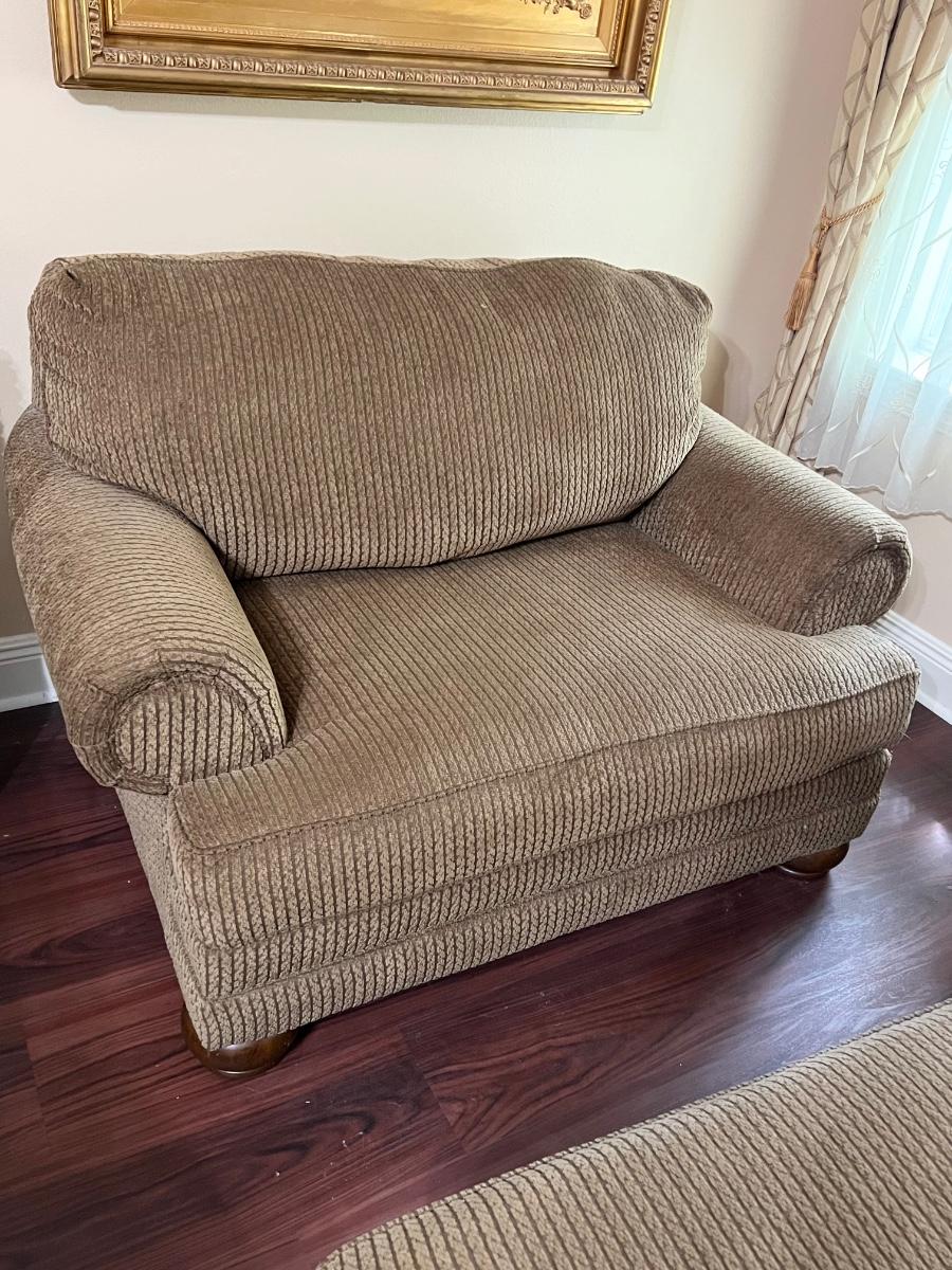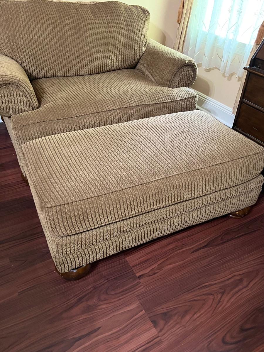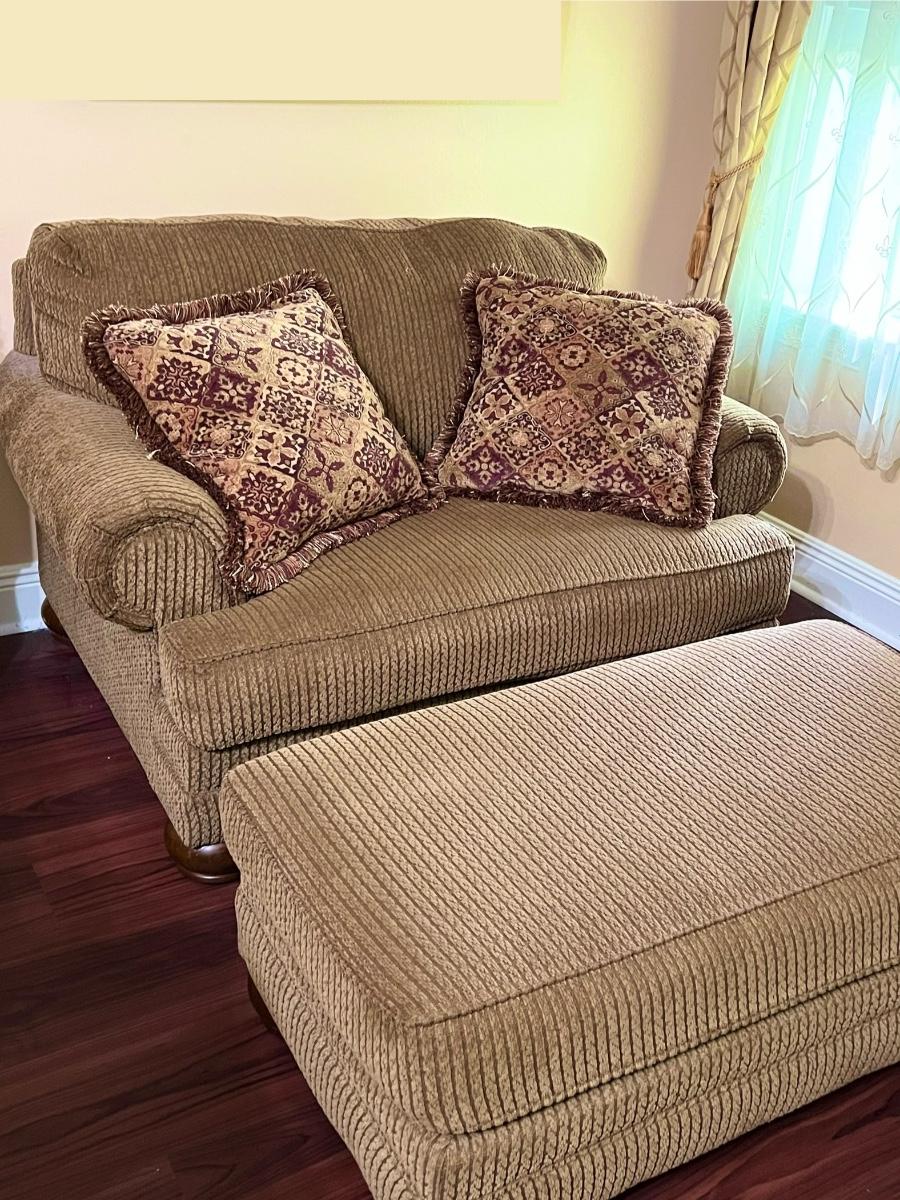 No smoking, no pets ~ Chair = 36” H x 55” W x 40” D ~ Ottoman = 17” H x 44” W x 24” D