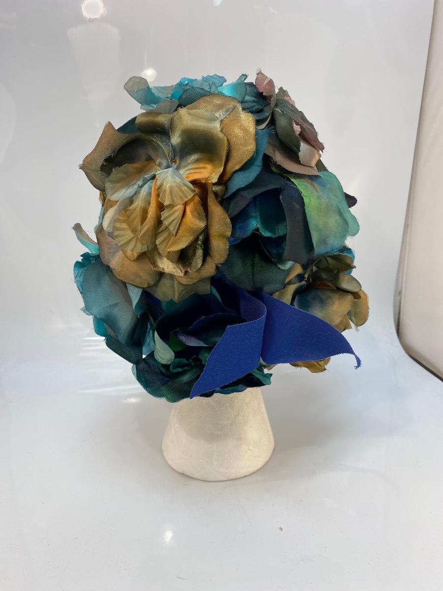 Vintage Blue & Green Floral Adorn Mesh Cloche Hat Cap Gilbert Orcel Boutique