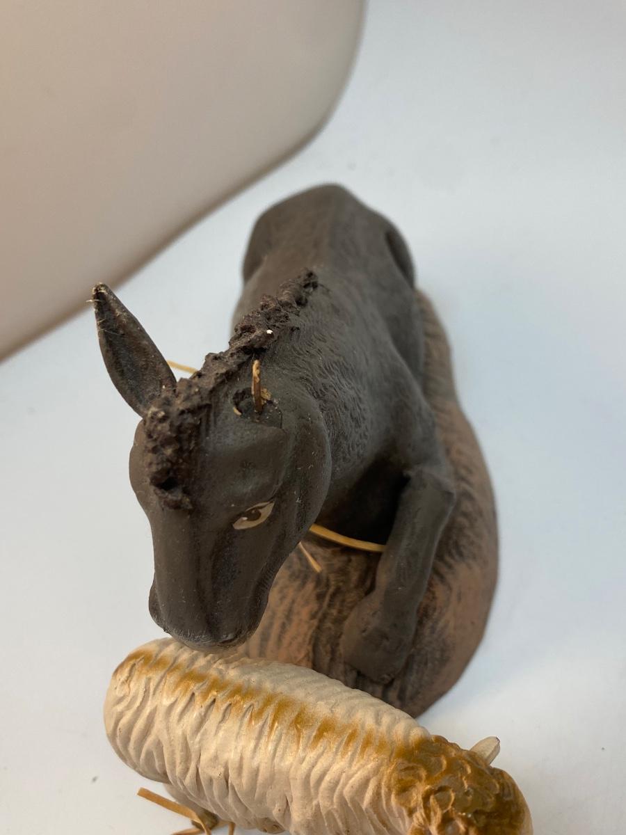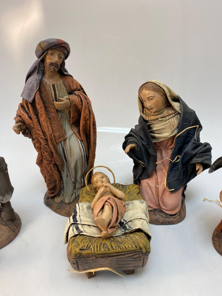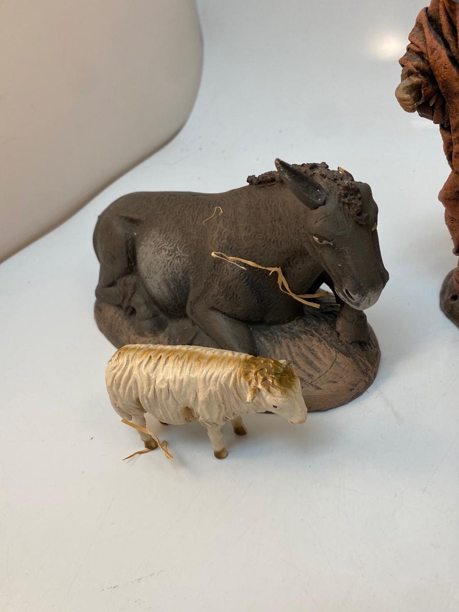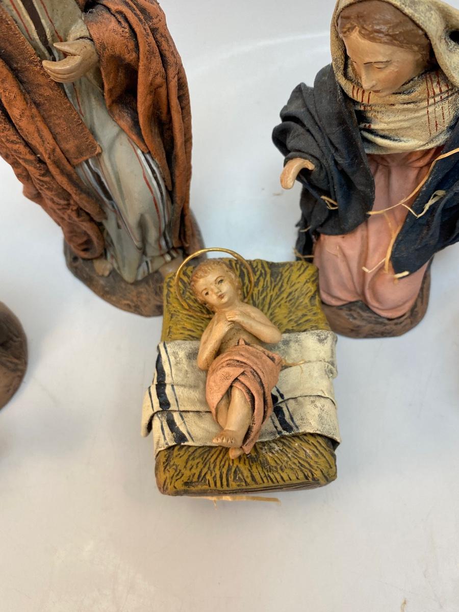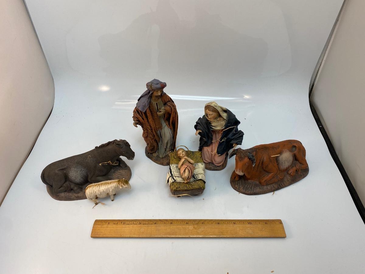 Vintage Beck Giftware Corp Nativity Scene Figurines Baby Jesus Mary Joseph Animals Made in Spain. Seem to be made of a composite like material. In good vintage condition, the horse is missing one ear but not too noticeable when displayed.