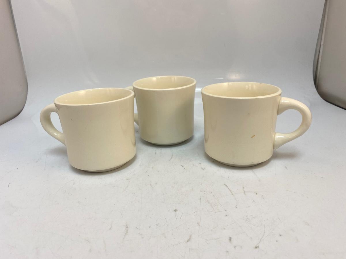 Set of 3 Vintage White USA Pottery Diner Style Coffee Cup Mug