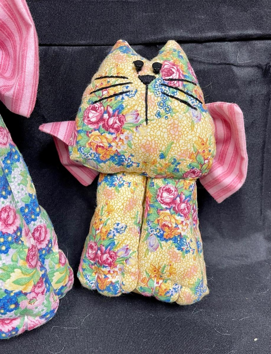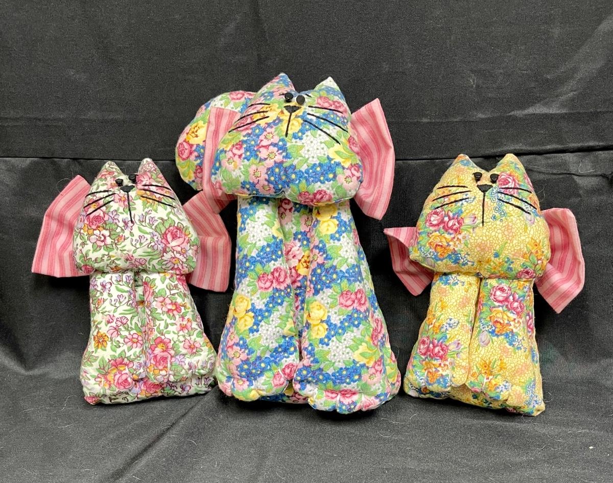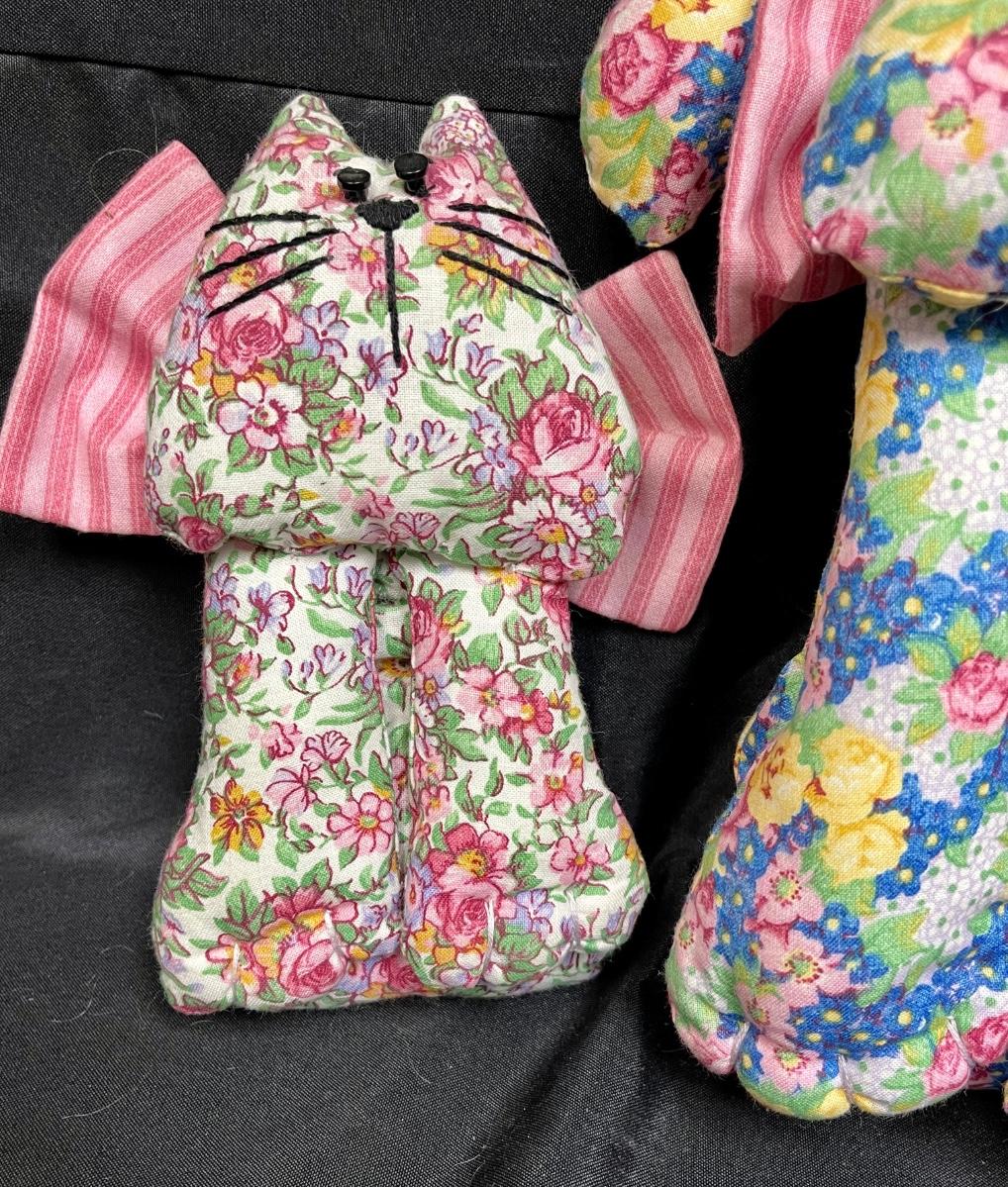 Set of Three Colorful Floral Pattern Plush Cat Kitten Shabby Chic Cottage Core Folk Art Dolls