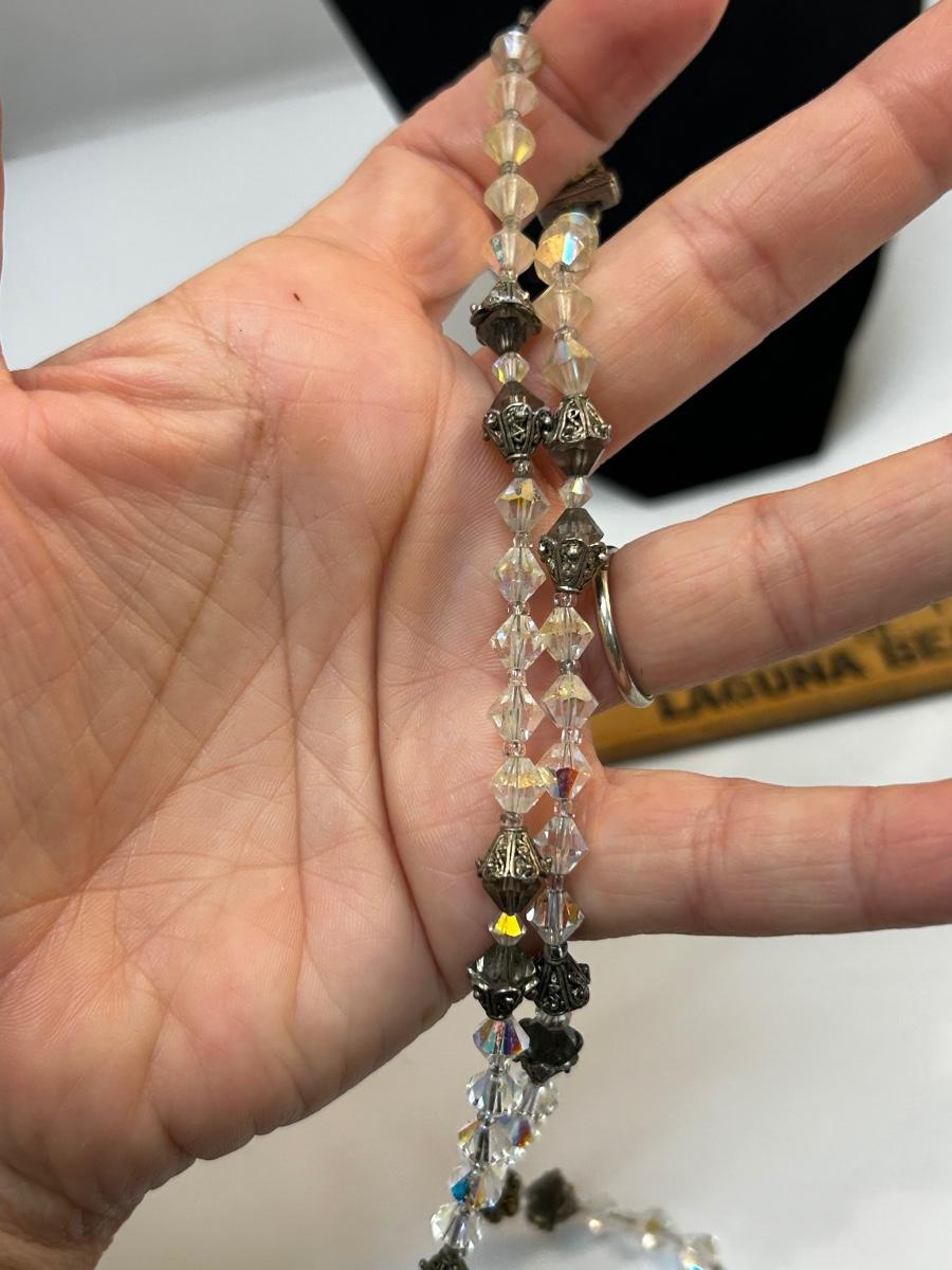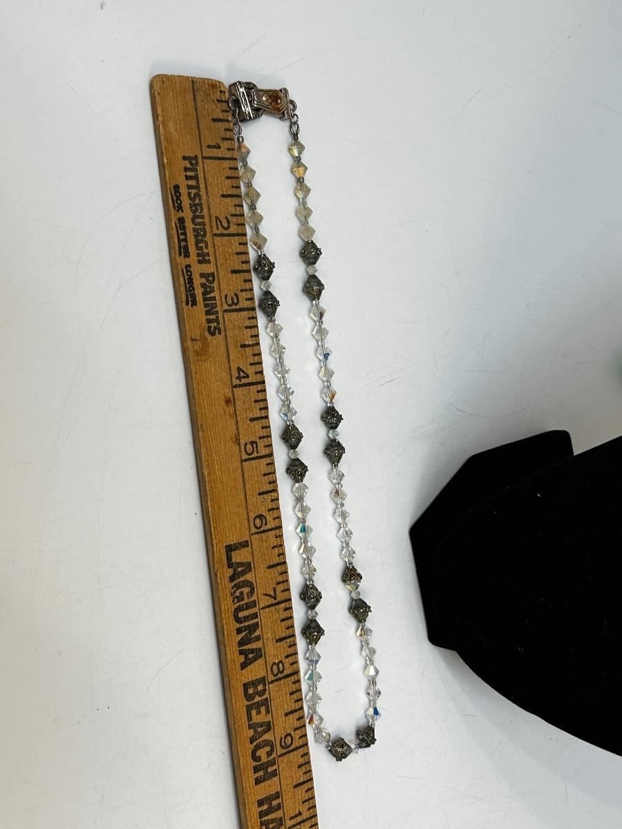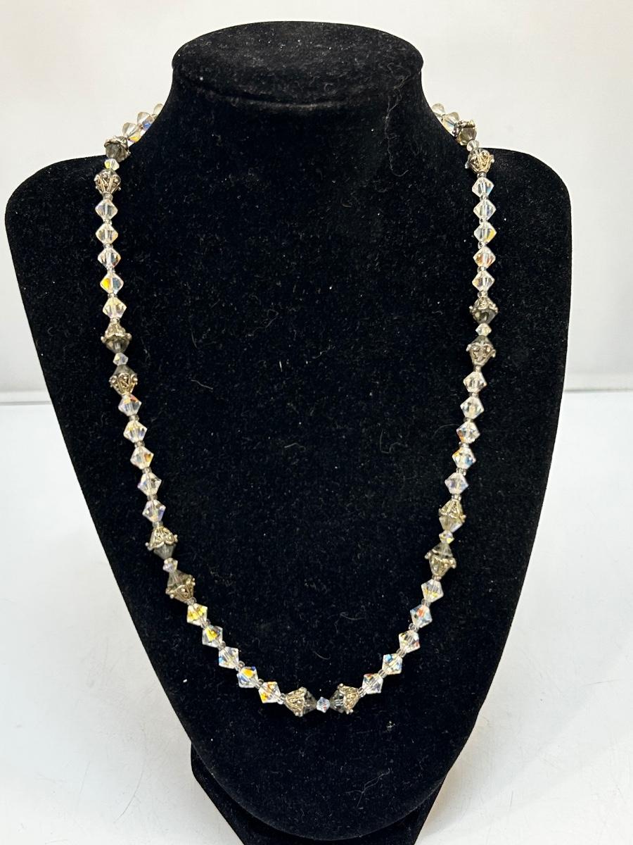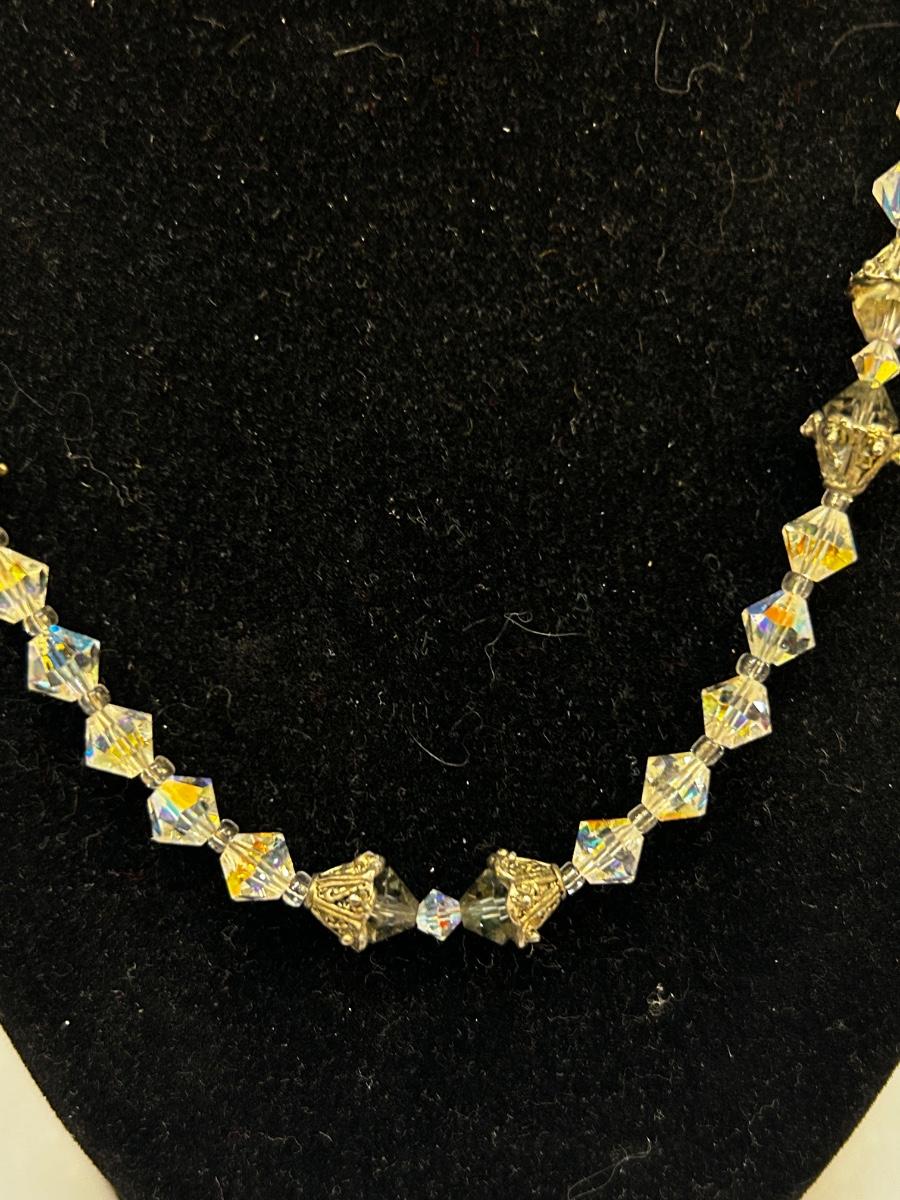 Vintage AB Iridescent Clear Crystal Beaded Fashion Necklace. Has some signs of wear and age.
