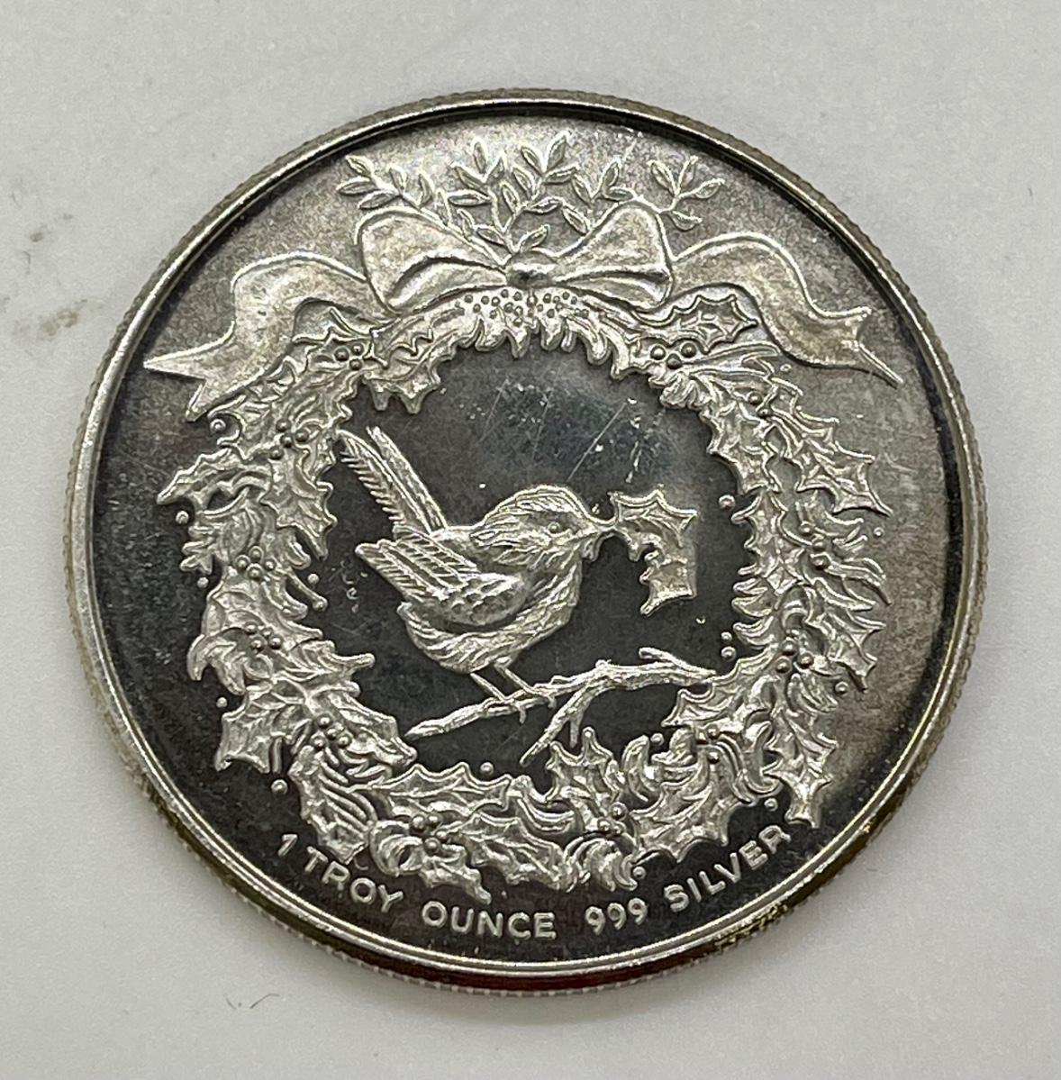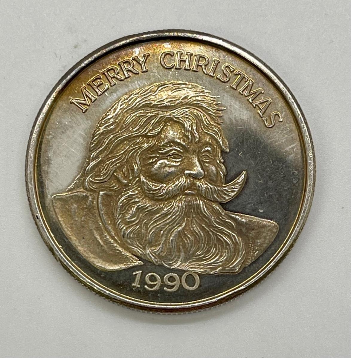 Vintage 1 Troy Oz 1990 Merry Christmas Santa Claus Collector Token Coin .999 Fine Silver