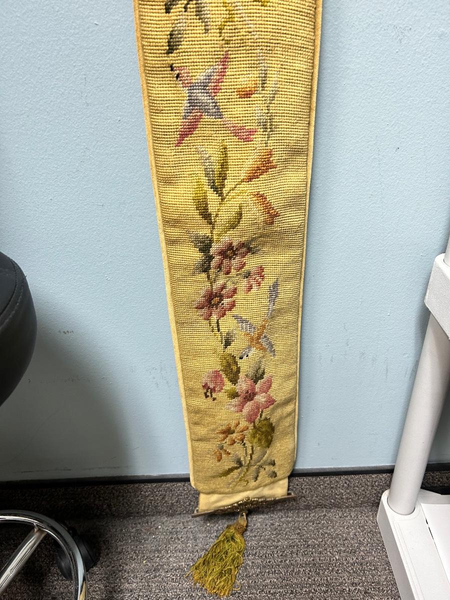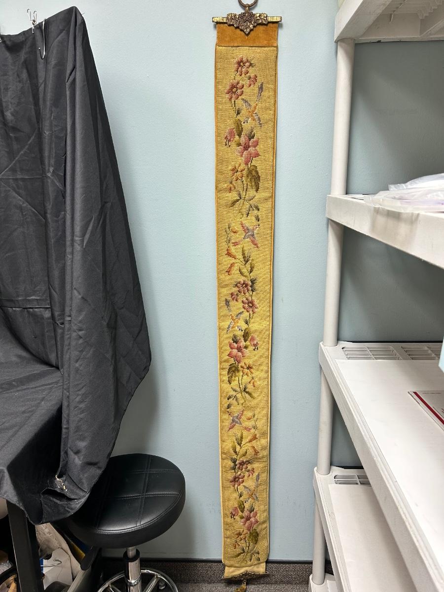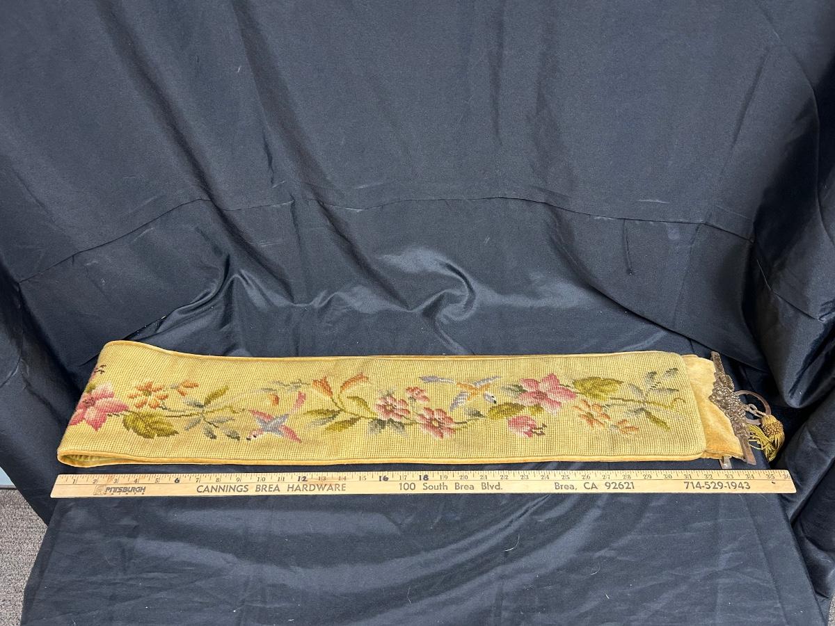 6' Long Vintage Flower and Bird Tapestry Wall Hanging Gold Velour Backing
