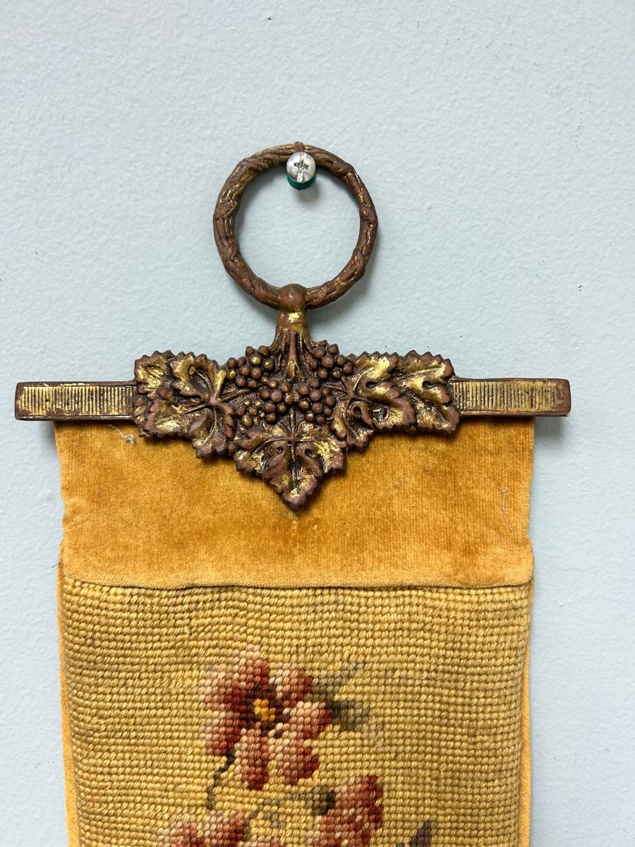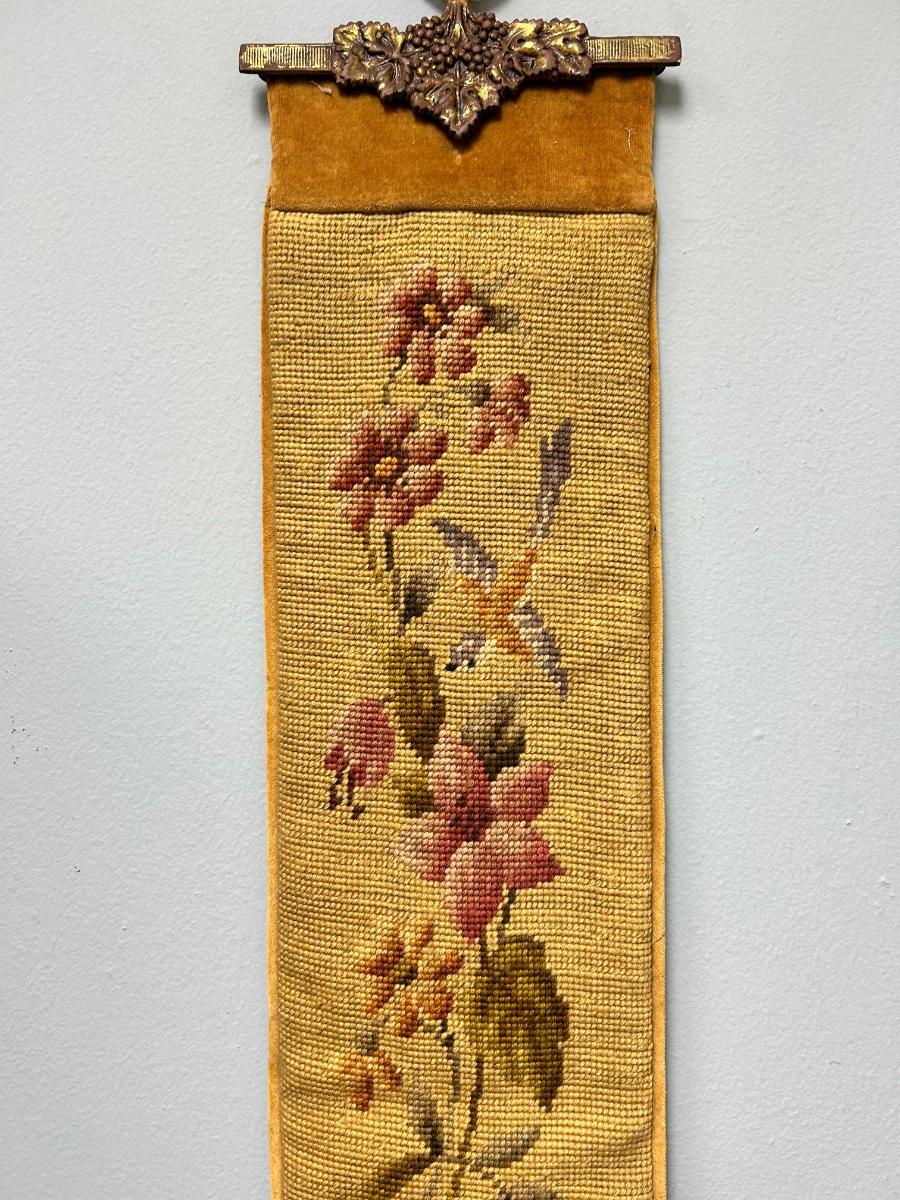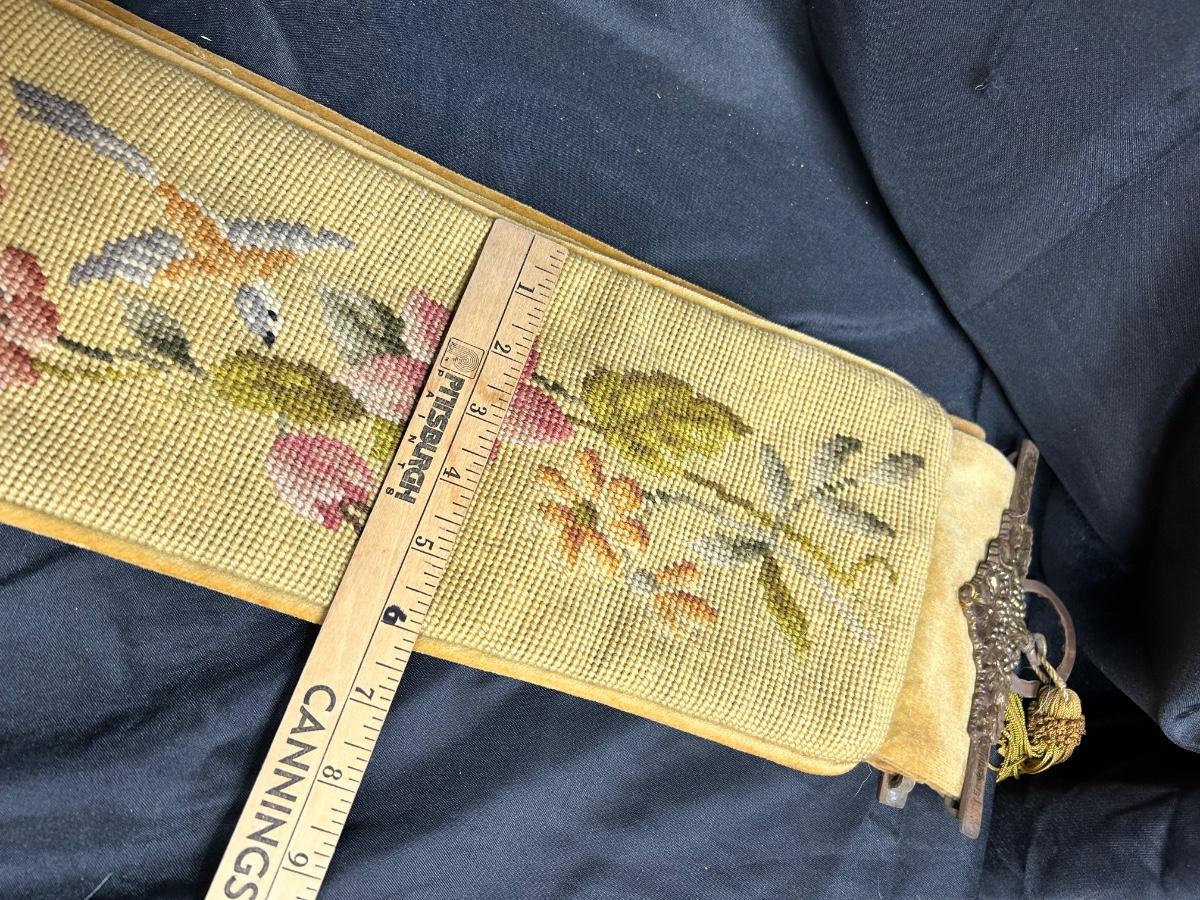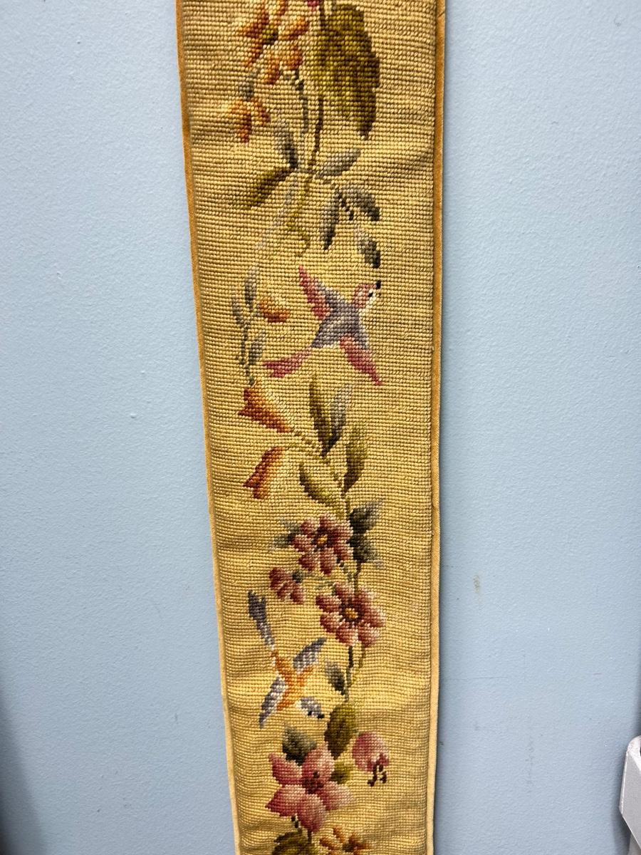6' Long Vintage Flower and Bird Tapestry Wall Hanging Gold Velour Backing