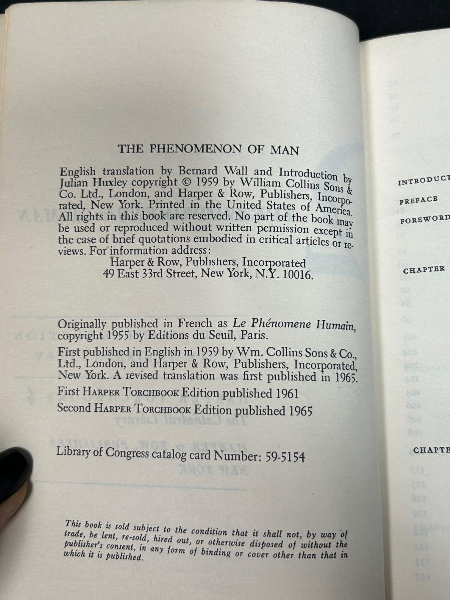 The Phenomenon of Man by Teilhard de Chardin 1965 The Cathedral Library Spiritual Book