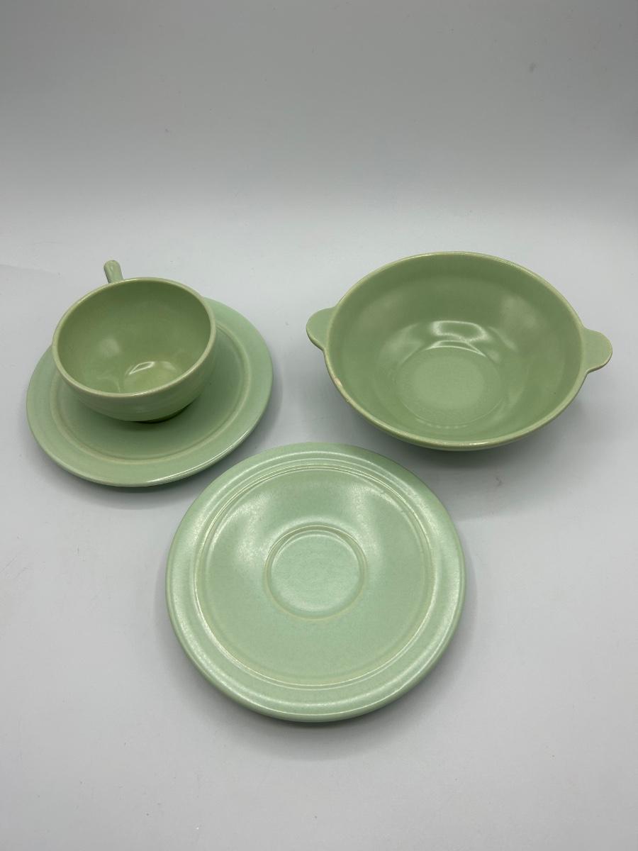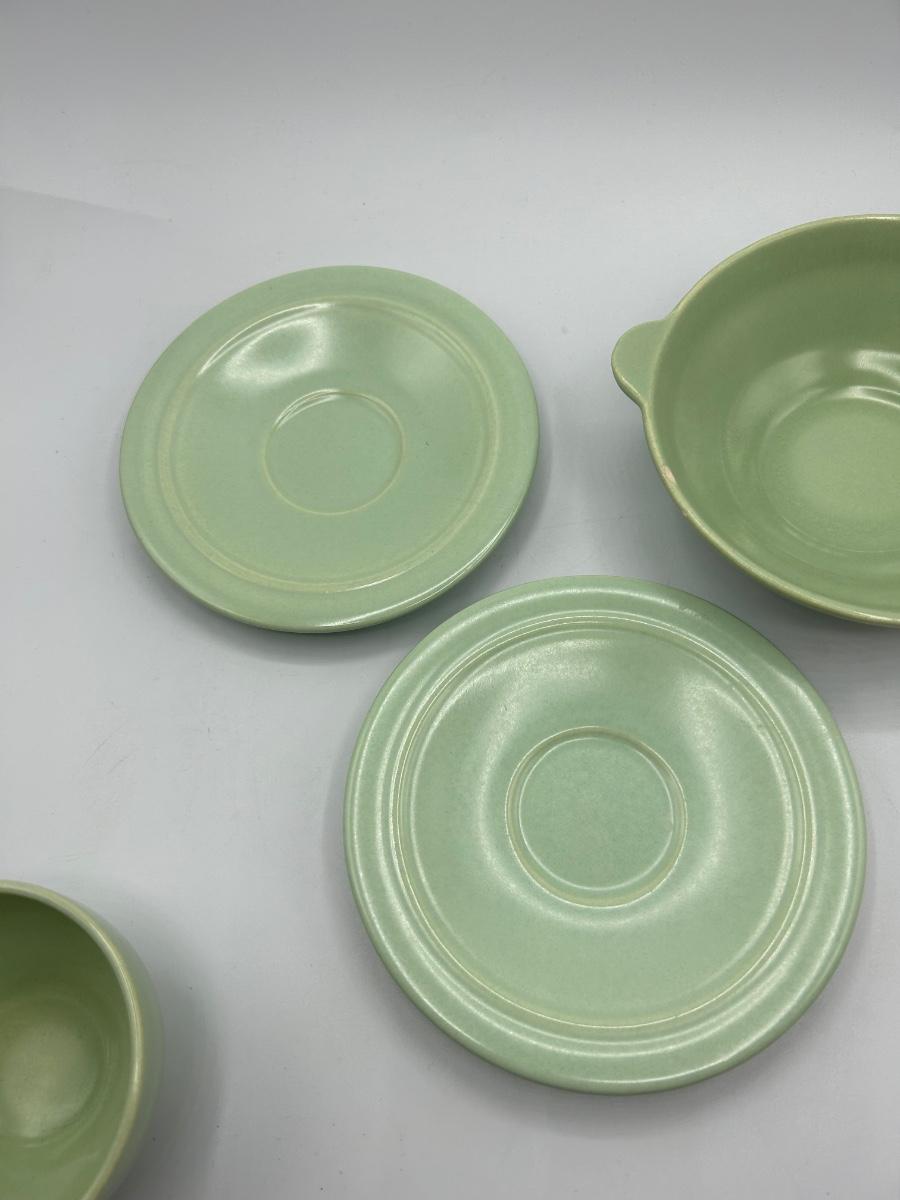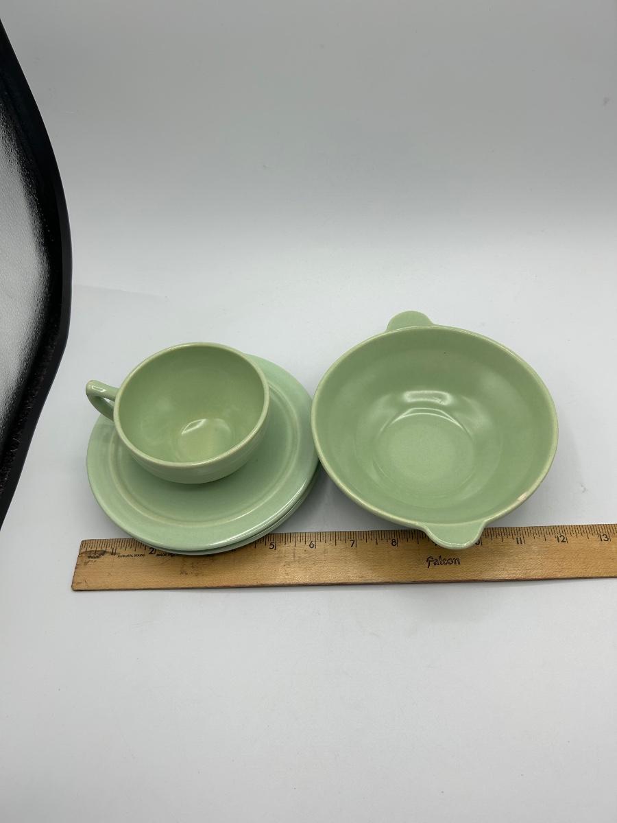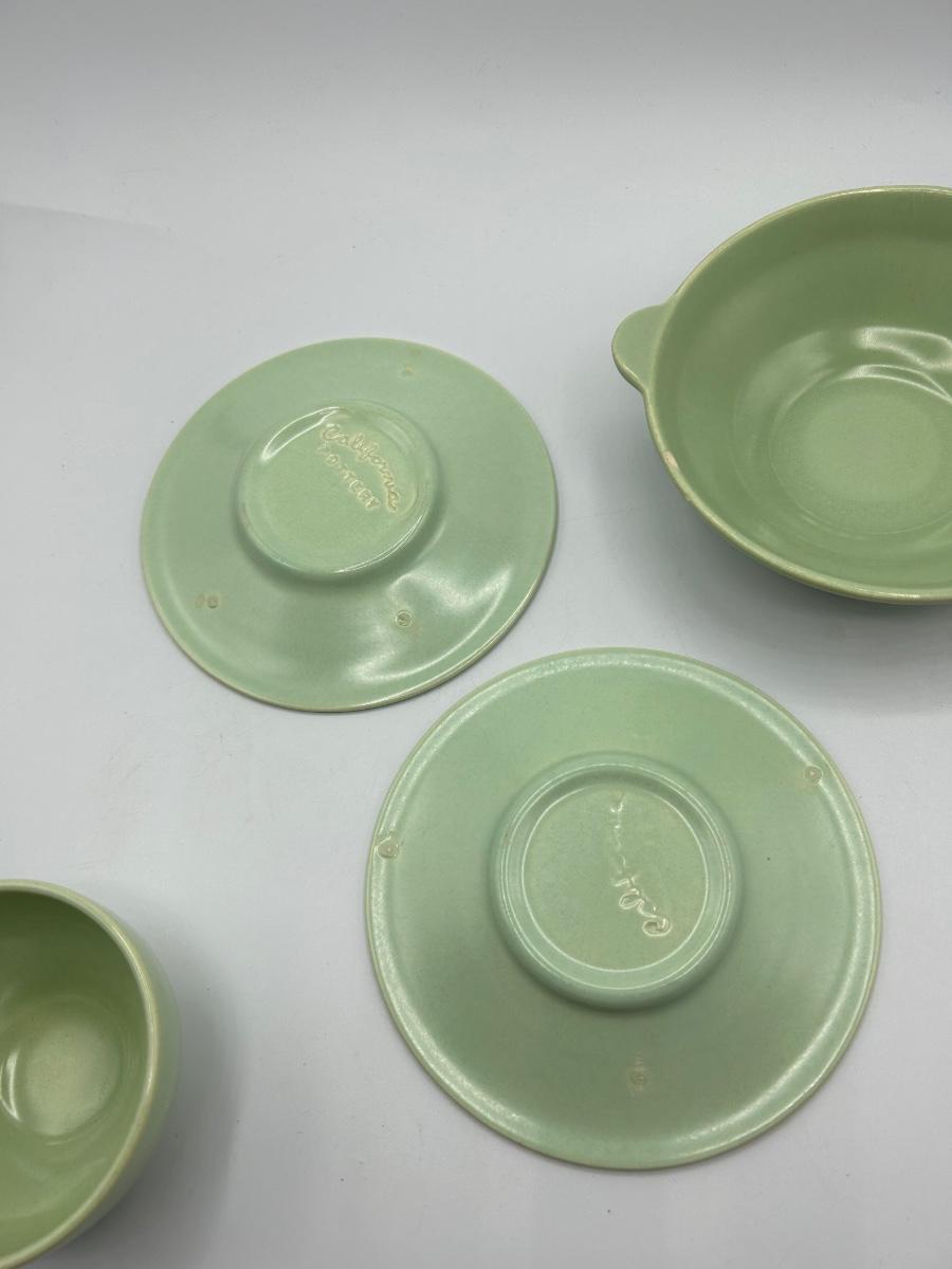 Vintage Pale Sea Foam Green California Pottery Dishes Cup with Saucer Small Bowl Plate
