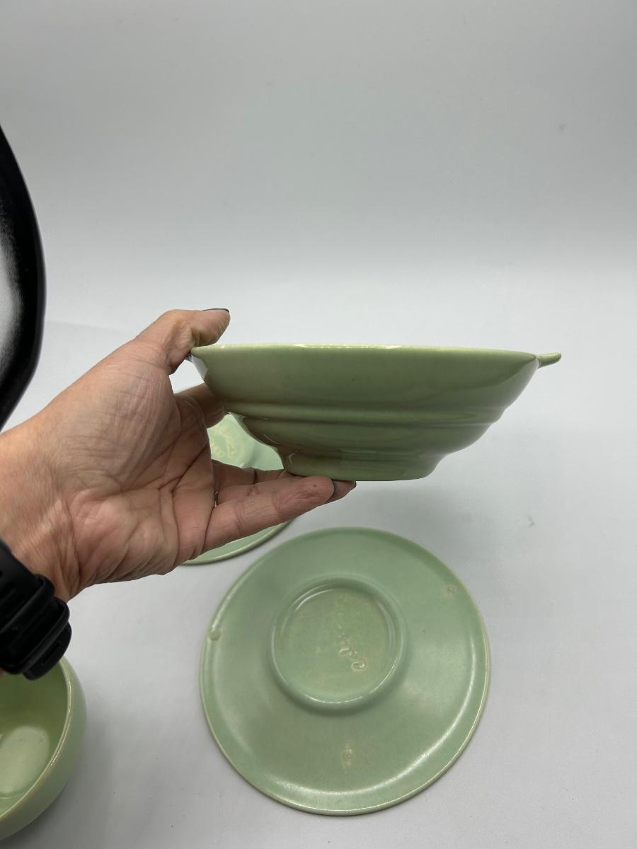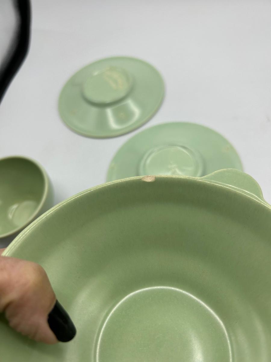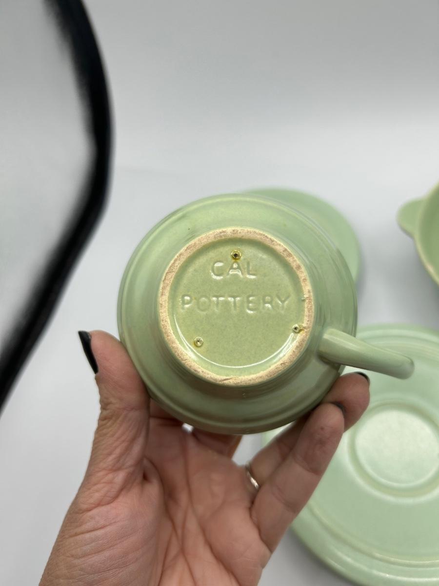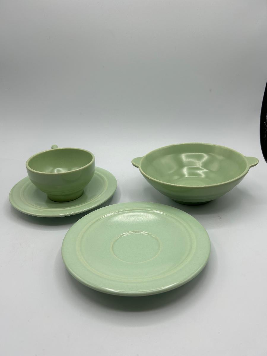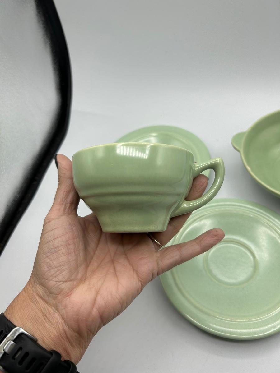 Vintage Pale Sea Foam Green California Pottery Dishes Cup with Saucer Small Bowl Plate