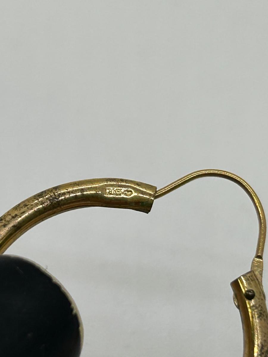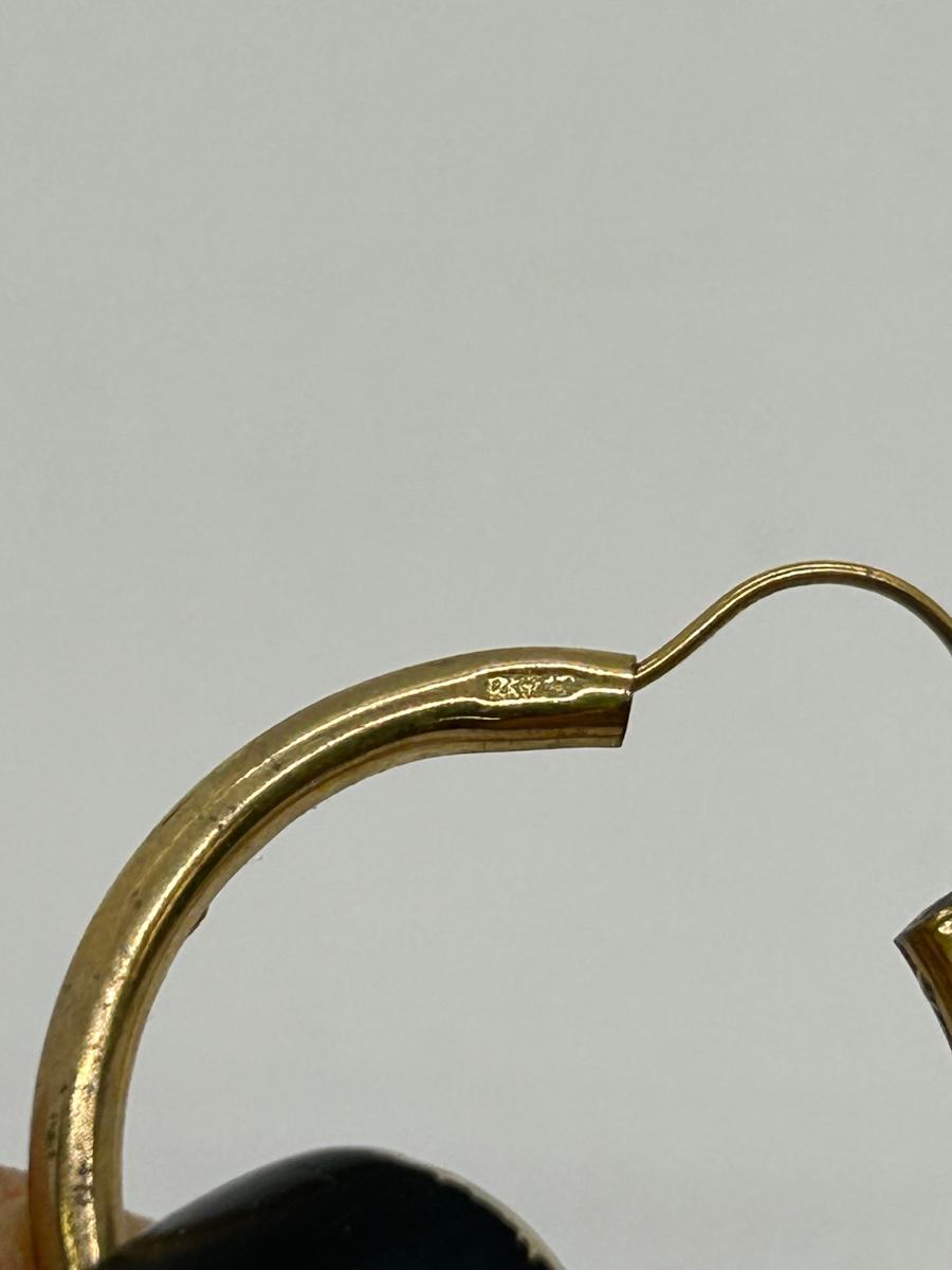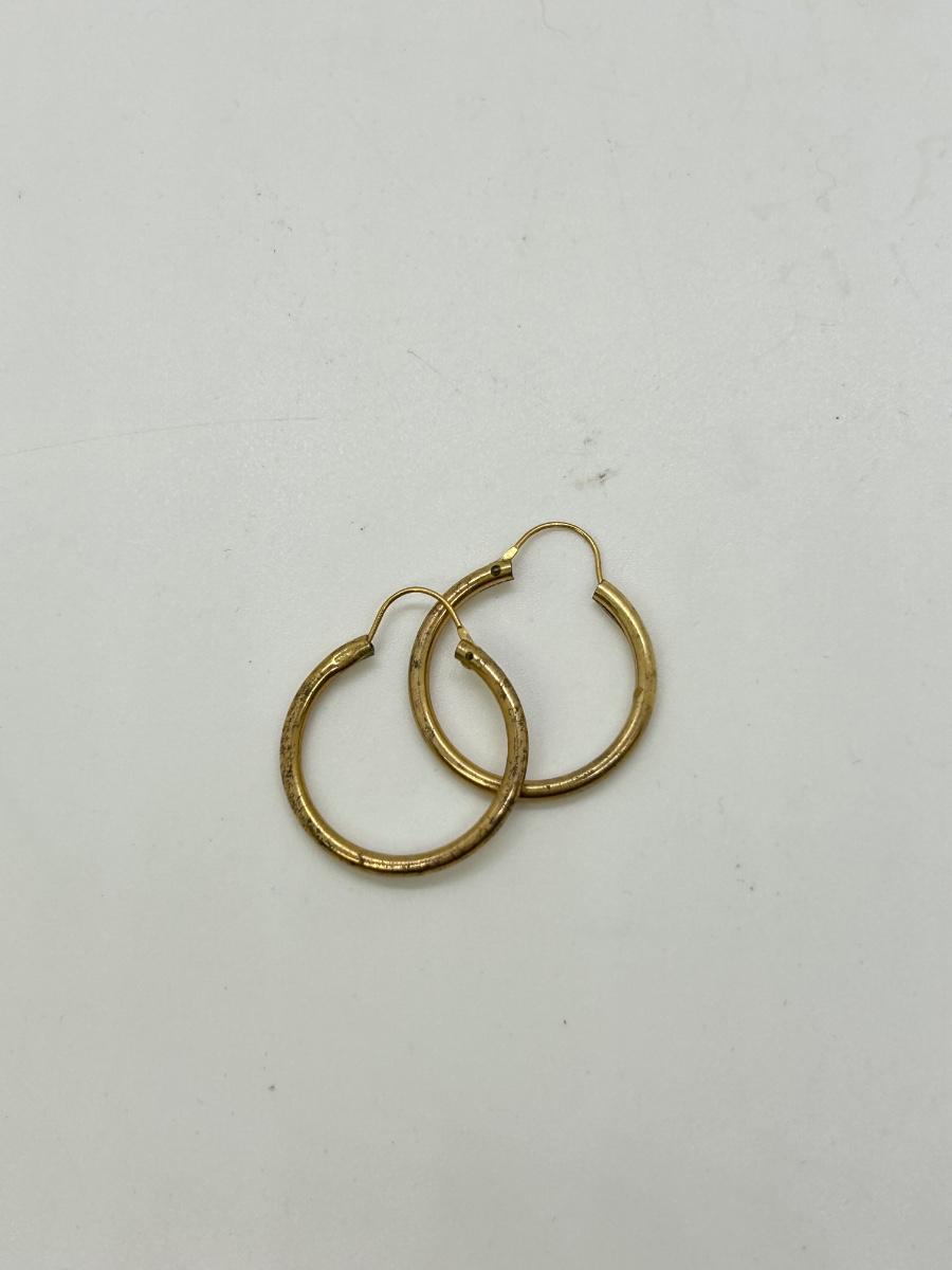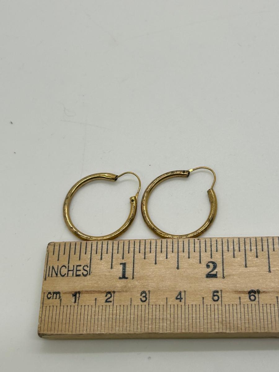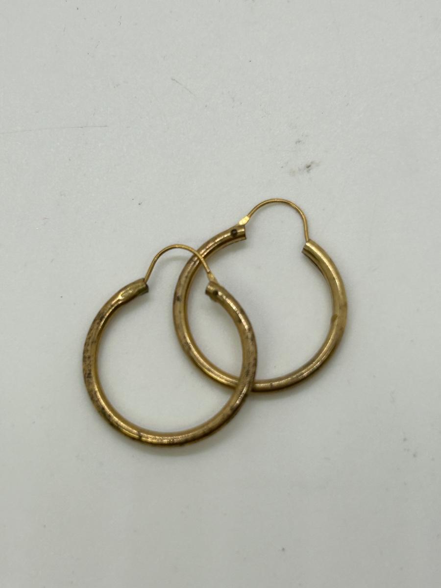Pair of Gold Tone Hoop Earrings. No real gold marks. In fair condition, signs of age to metal.