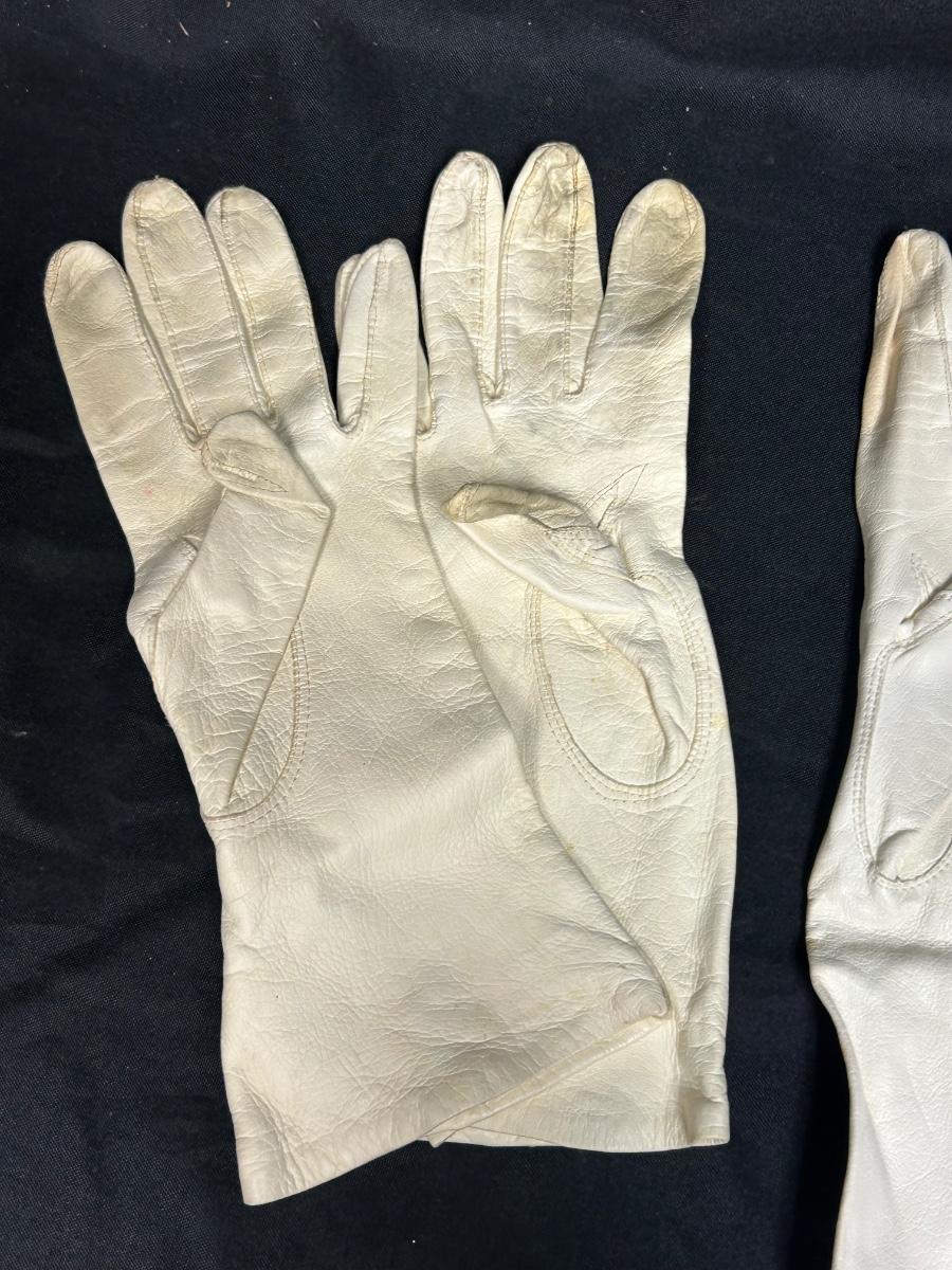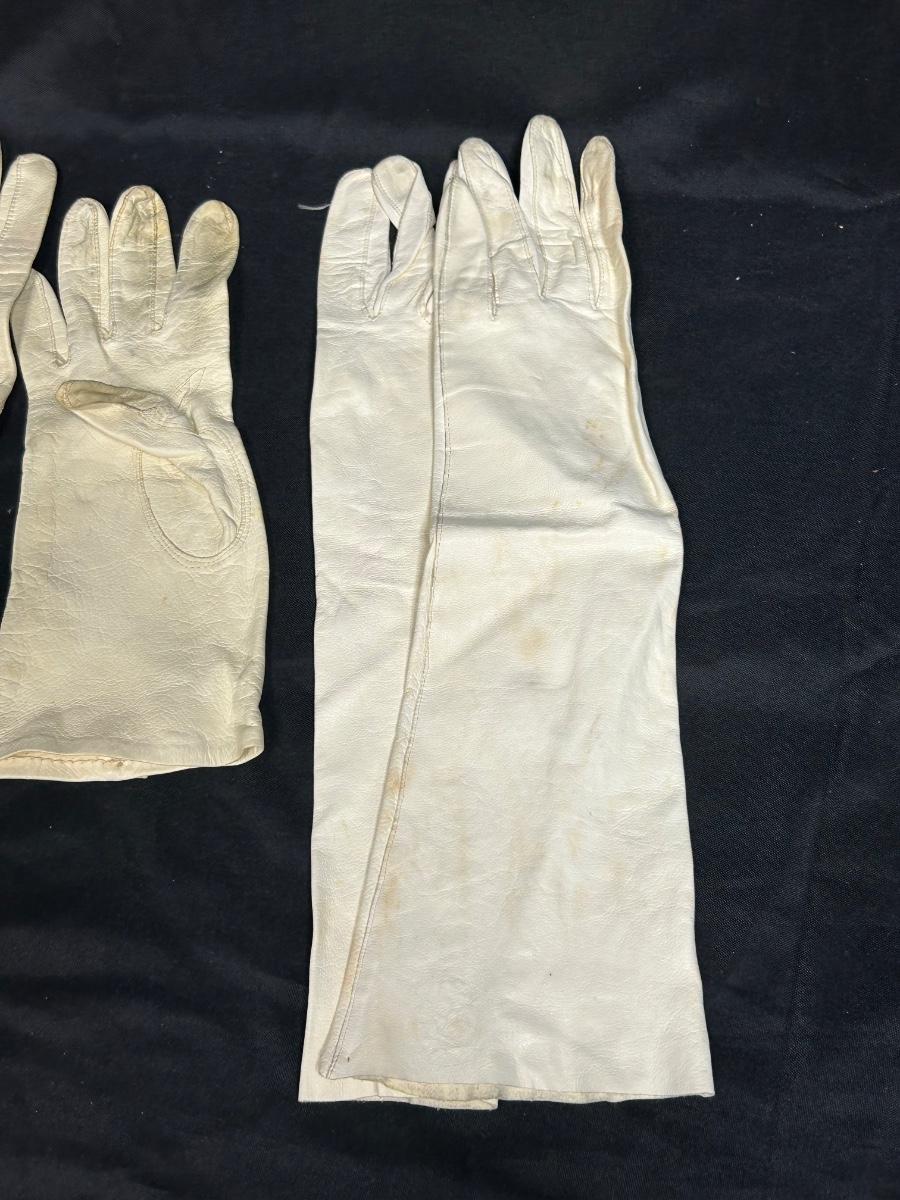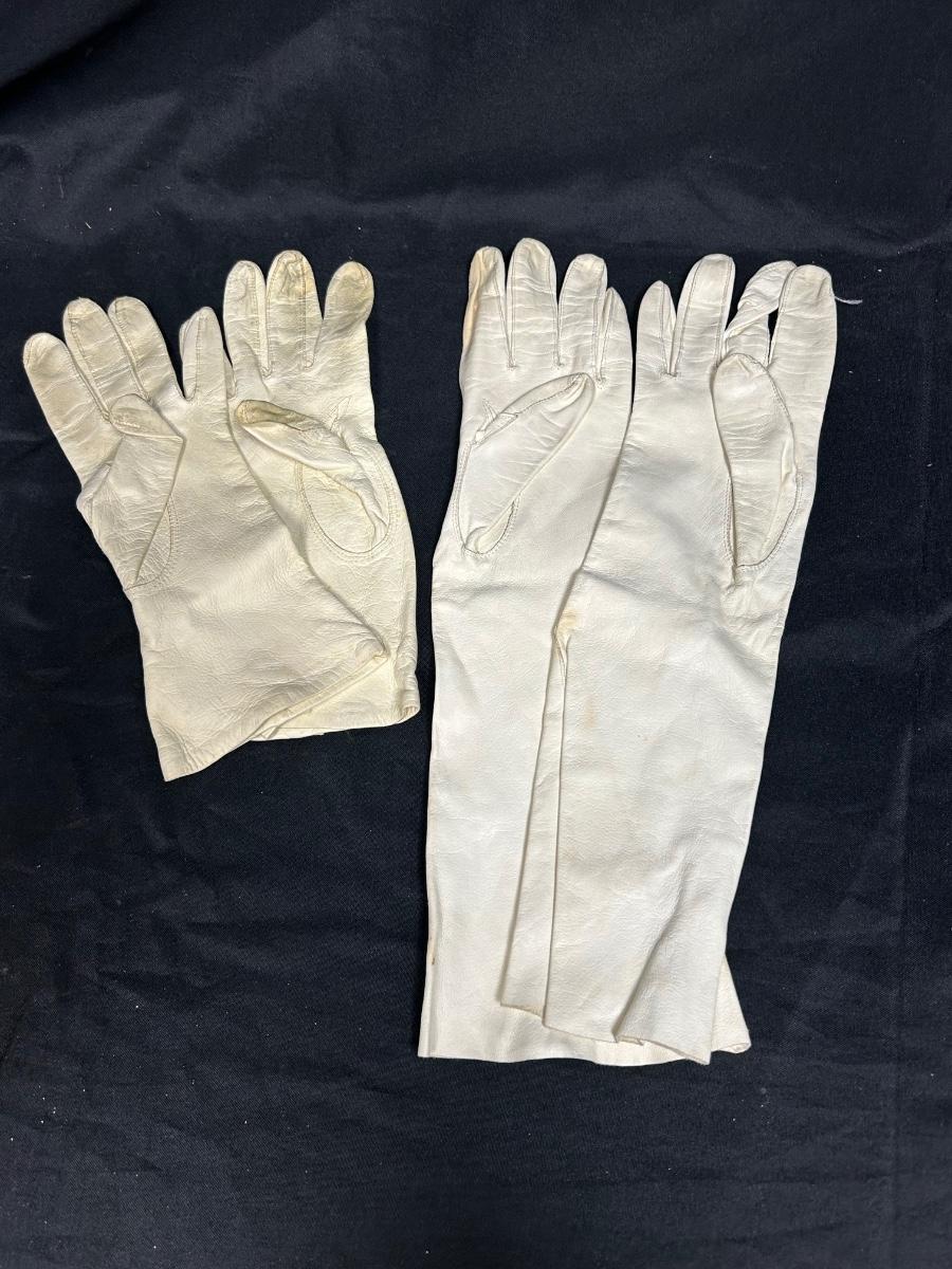 Two Pairs of Ladies Vintage Leather Gloves White Long and Short