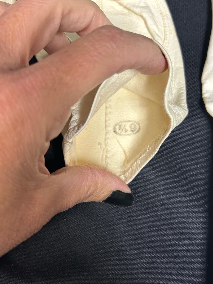 Two Pairs of Ladies Vintage Leather Gloves White Long and Short. In previously worn condition.