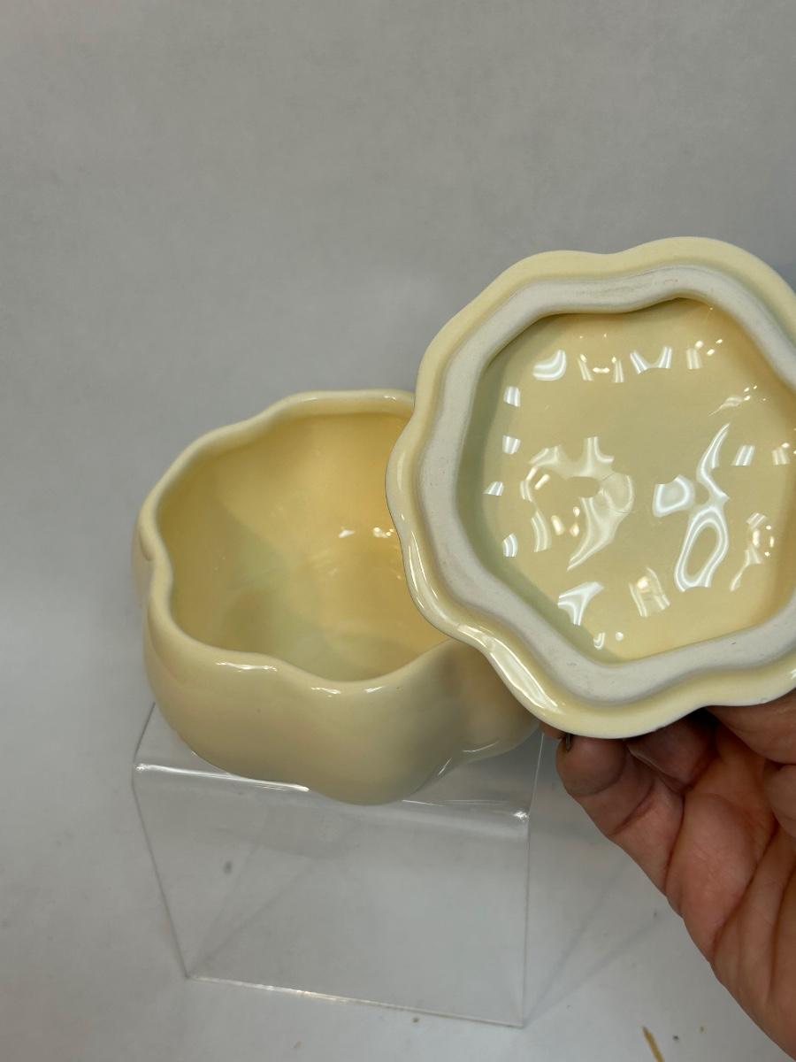 Matceramica Pale Yellow Ceramic Pumpkin Shaped Candy Dish Lidded Bowl