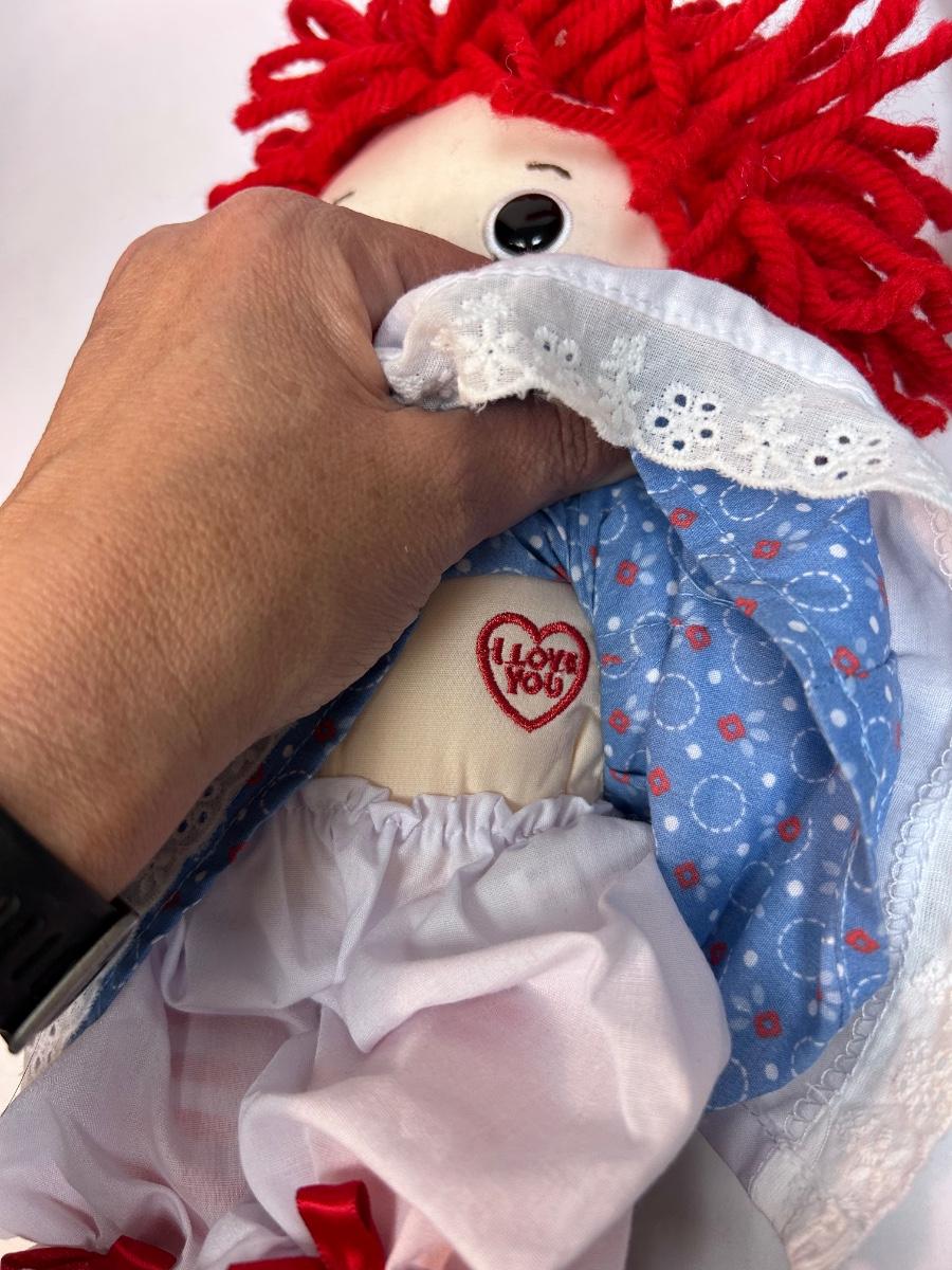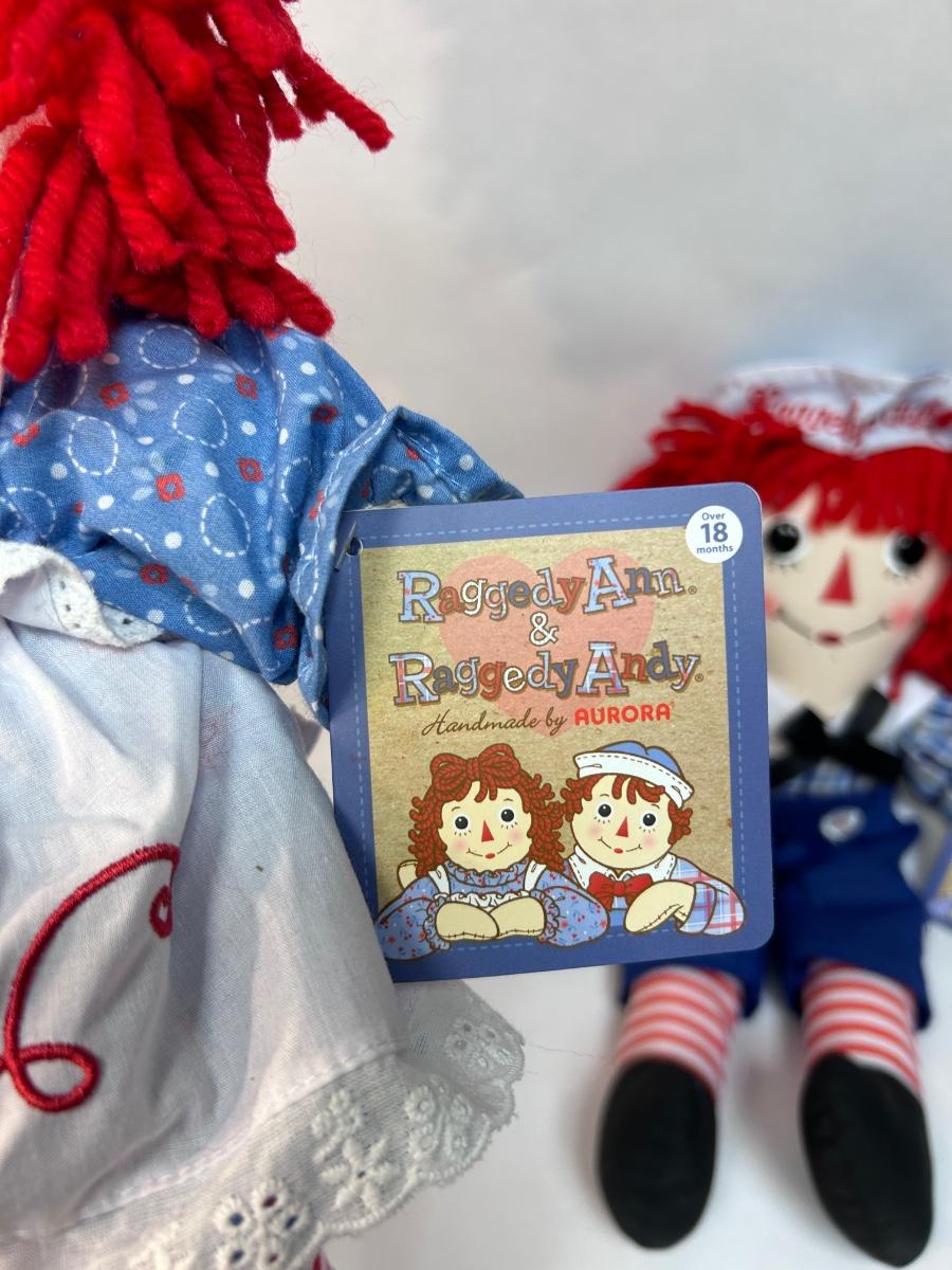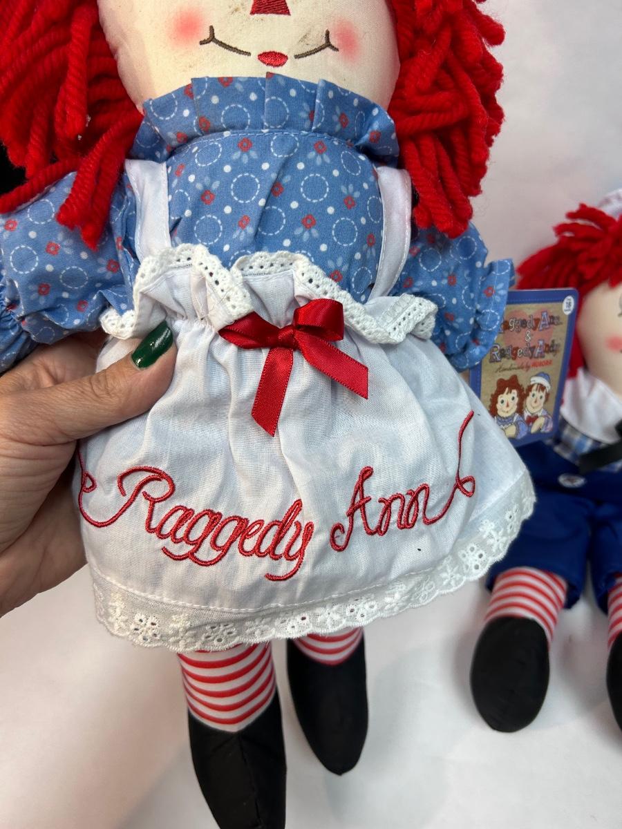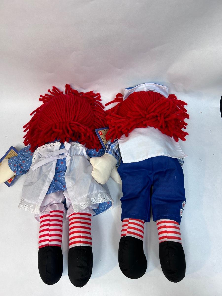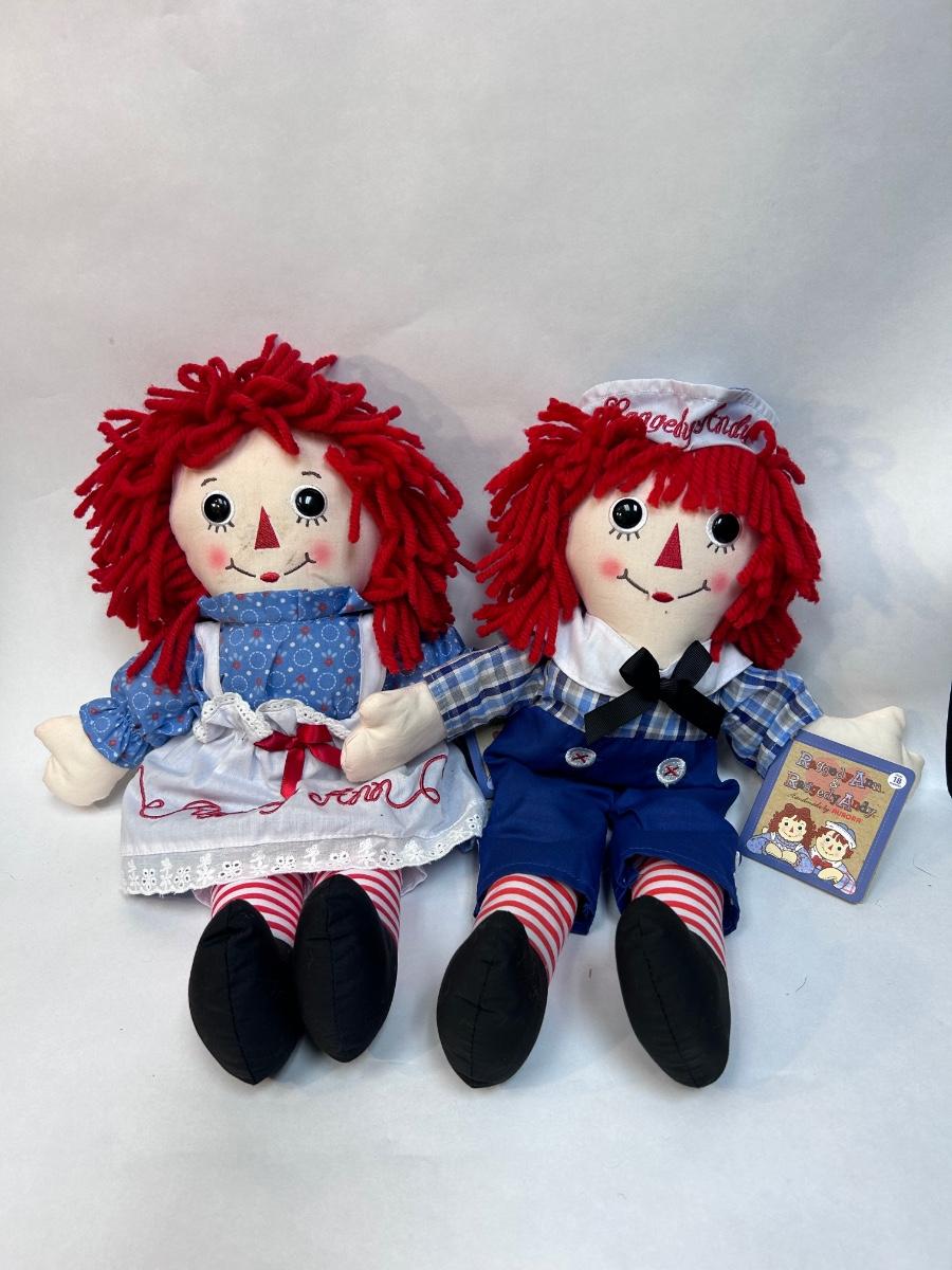 Hasbro Retro Raggedy Ann and Andy Plush Dolls with Hang Tags 2012. In good condition, not original but remade in 2012, they do have the I love u heart on chest.