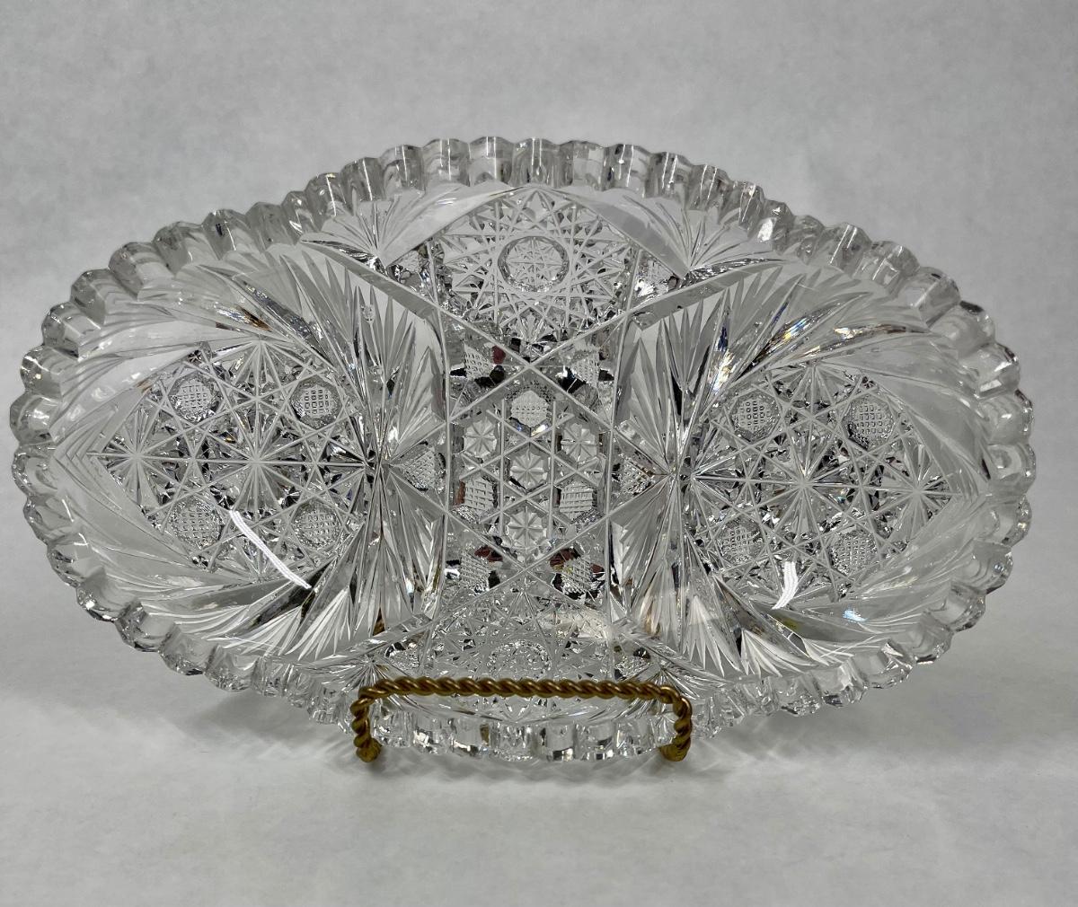 American Brilliant Cut Glass Oval Dish Nuts Candy Olives