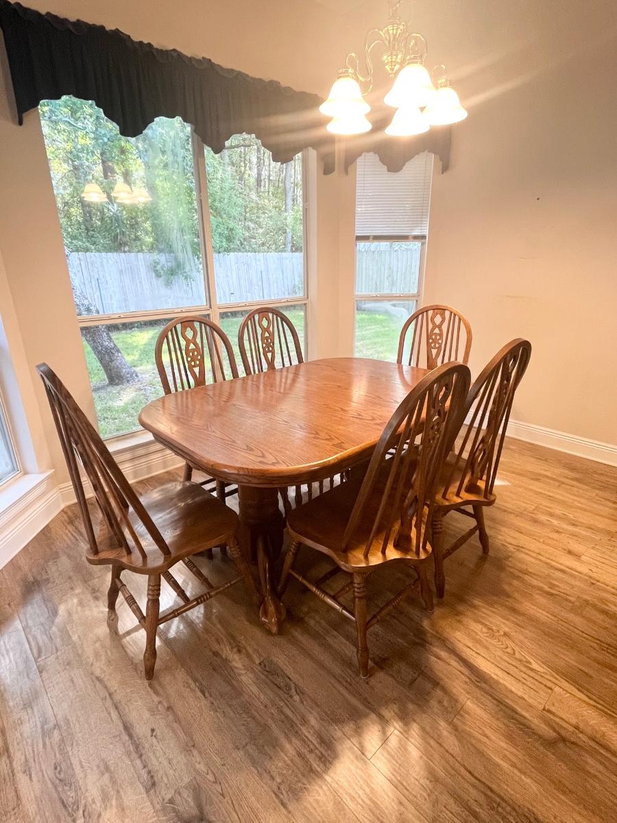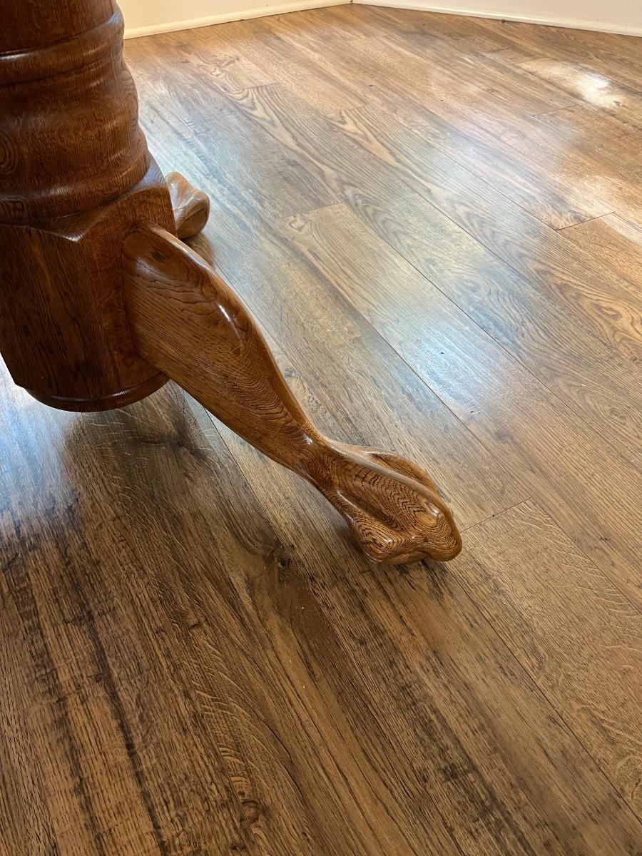 Solid Oak Claw Foot Tressel Table With Six (6) Matching Chairs