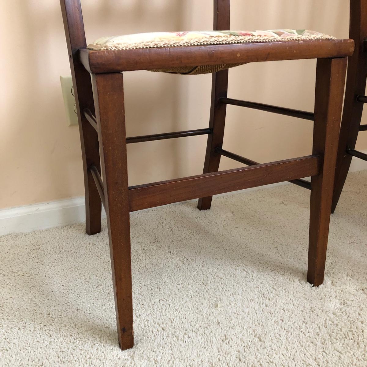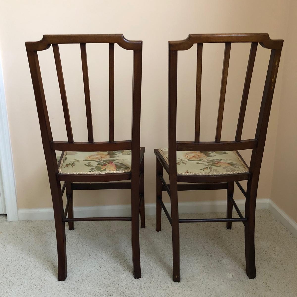 Two Matching Antique Wooden Chairs with Floral Seats (MB-JF)
